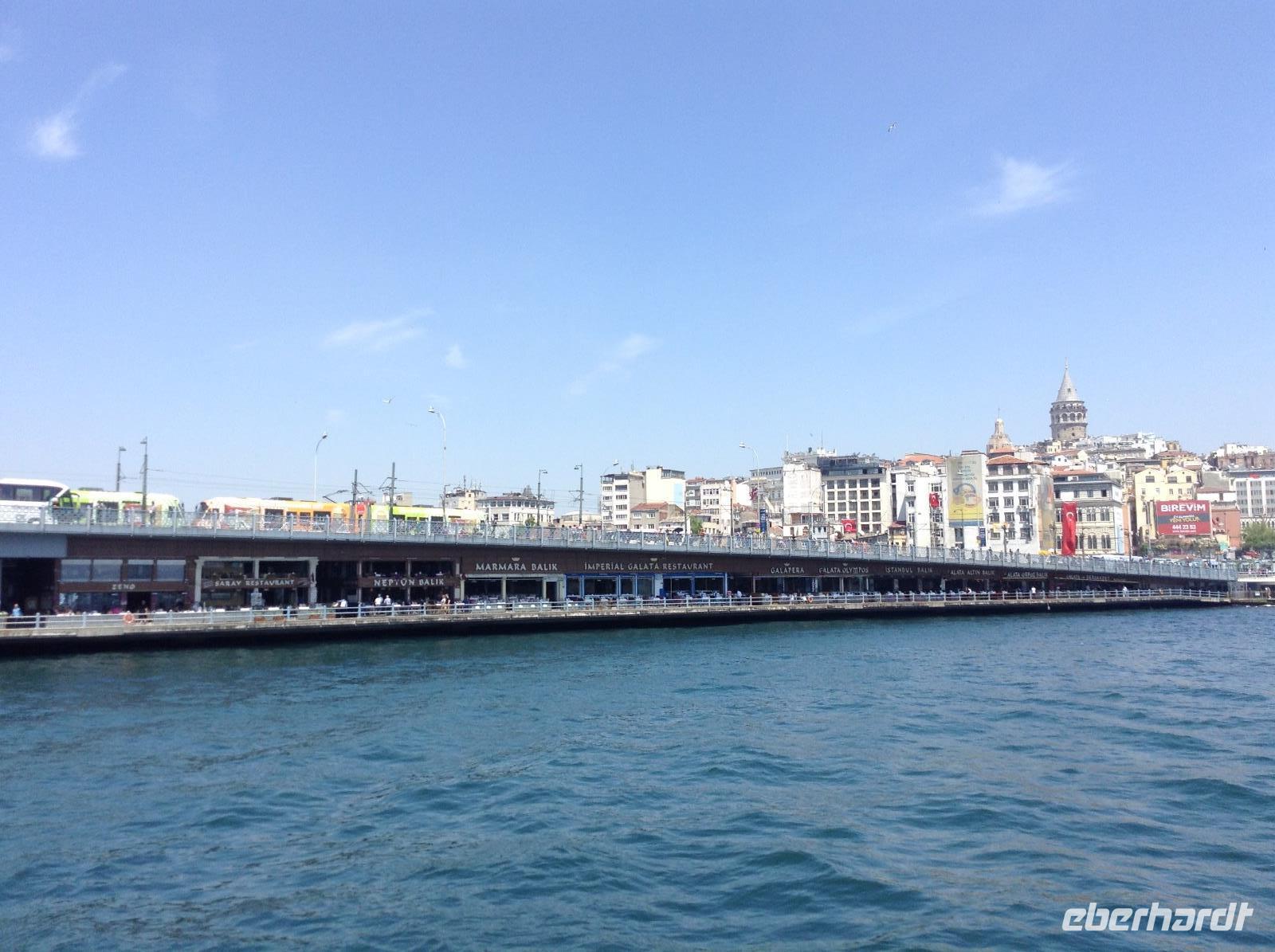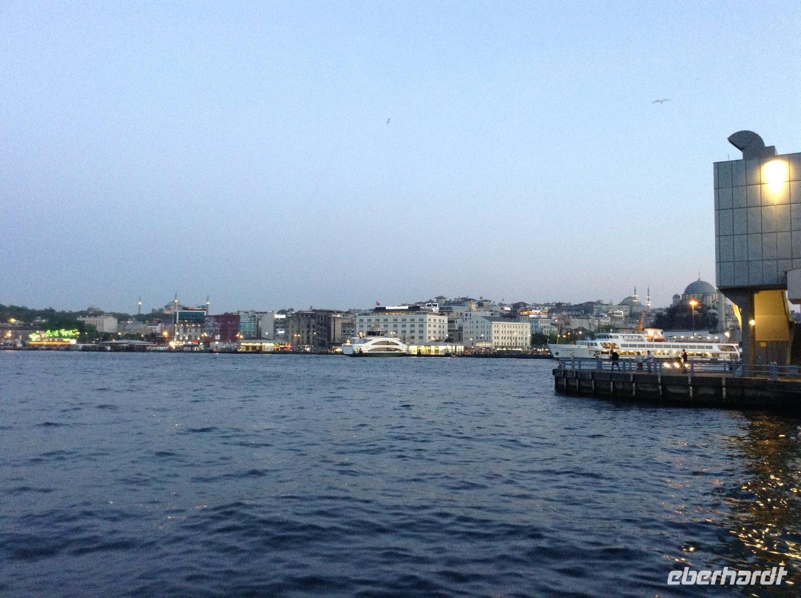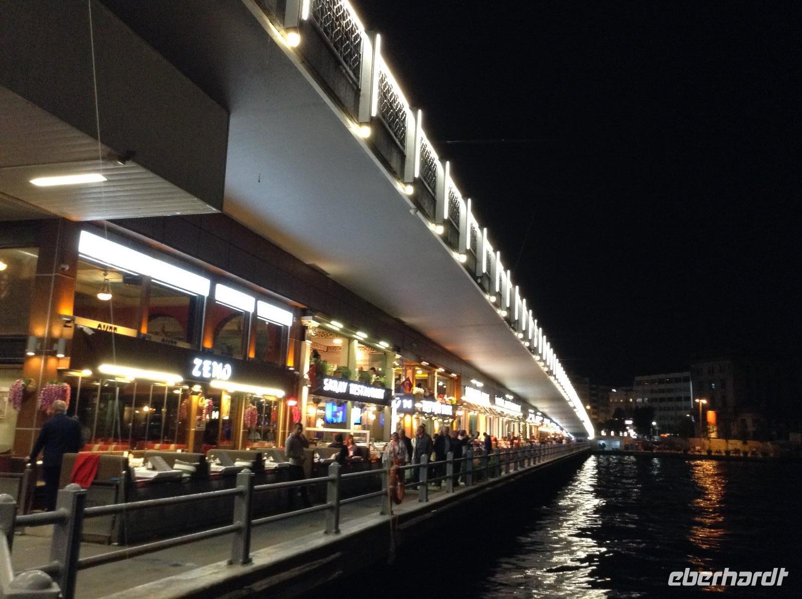 Für den ersten Abend stand noch ein gemeinsames Abendessen auf dem Programm und so fuhren wir mit dem Bus zur Galata-Brücke. Das Fisch-Restaurant befand sich direkt unter dieser Brücke. Wir verbrachten einen ersten schönen Abend direkt am Wasser des Marmara-Meeres und kosteten uns durch die tollen türkischen Spezialitäten. Am späten Abend fuhren wir zum Hotel zurück.