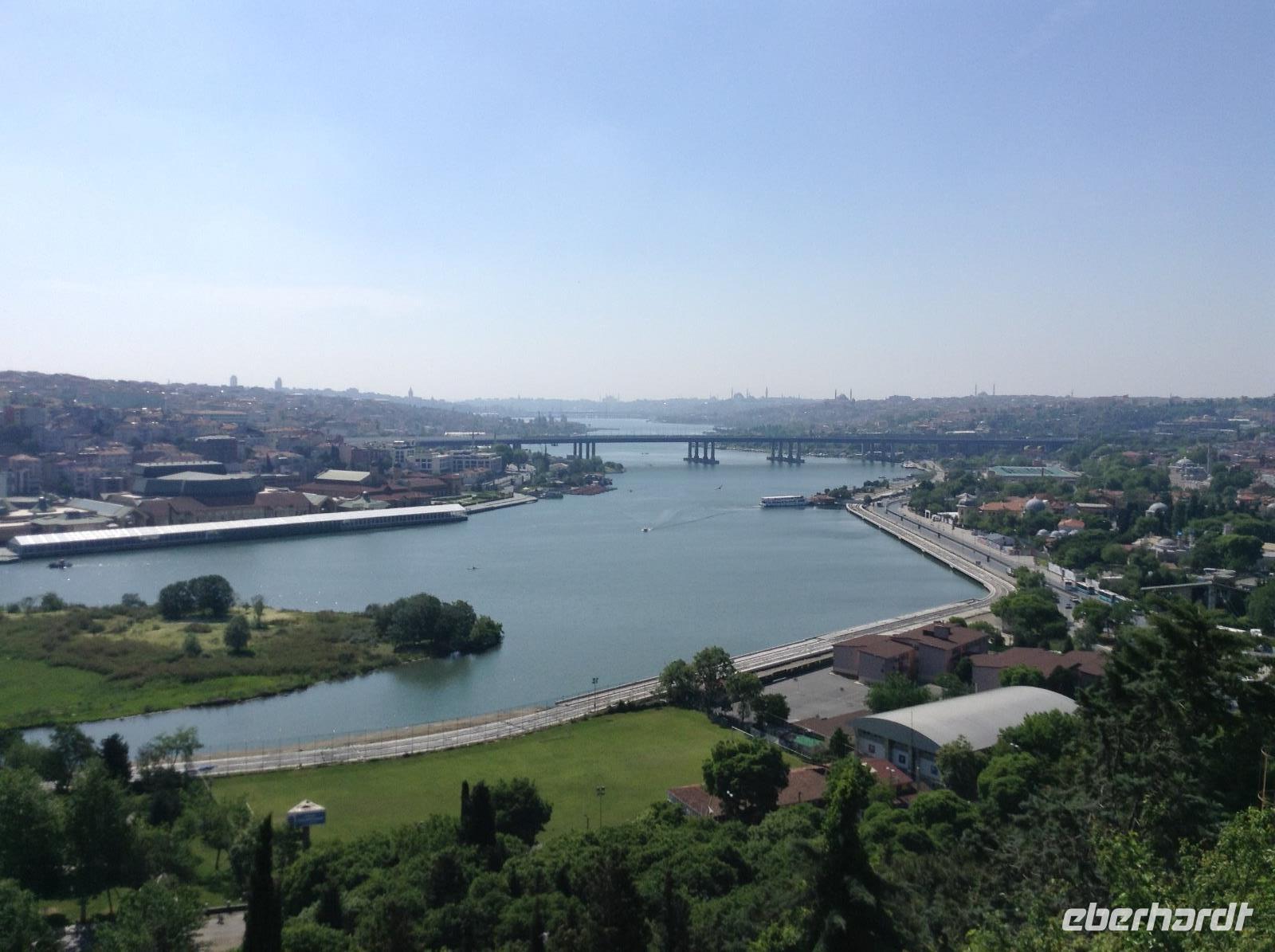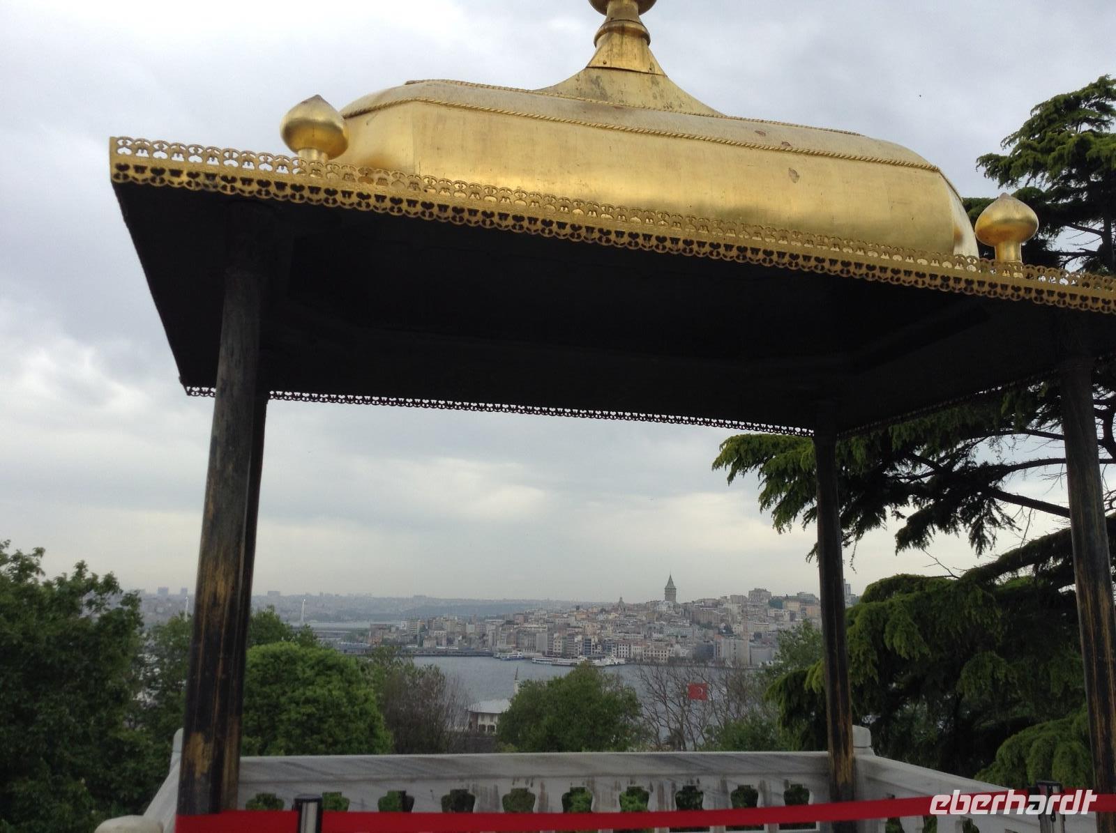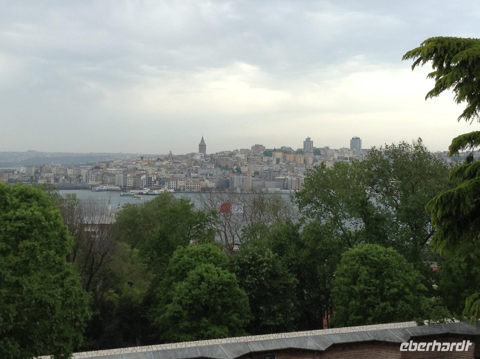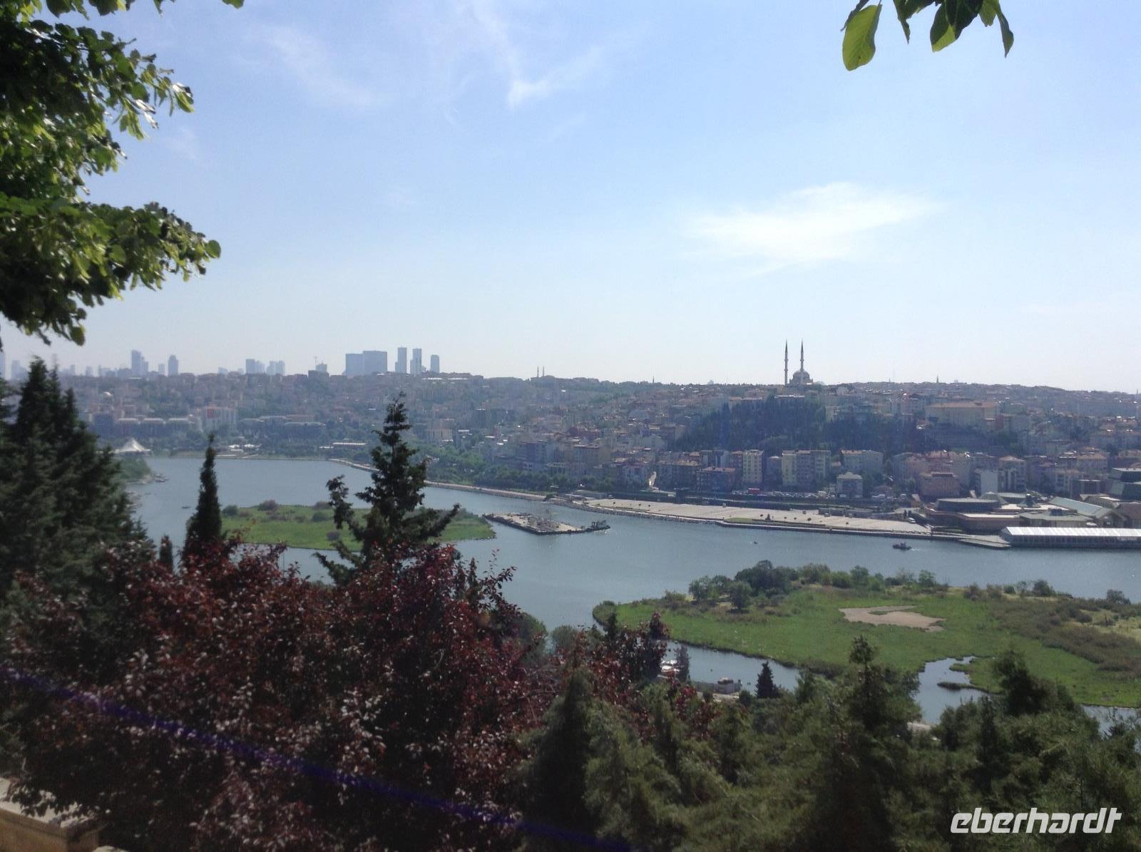 Das erste Frühstücken im Hotel hielt dann das nächste Wow für uns bereit. Das Restaurant lag in der 6. Etage und hatte eine Terasse mit einem fantastischen Ausblick. Wir konnten direkt auf die Hagia Sophia und die blaue Moschee sehen, sahen das Goldene Horn und das Wasser.