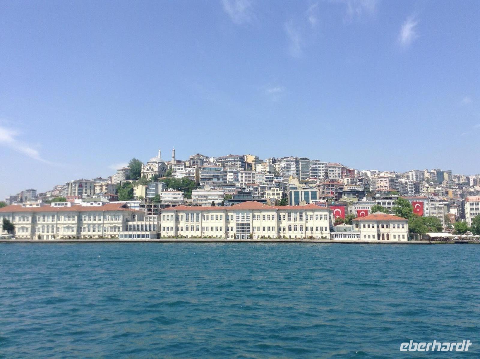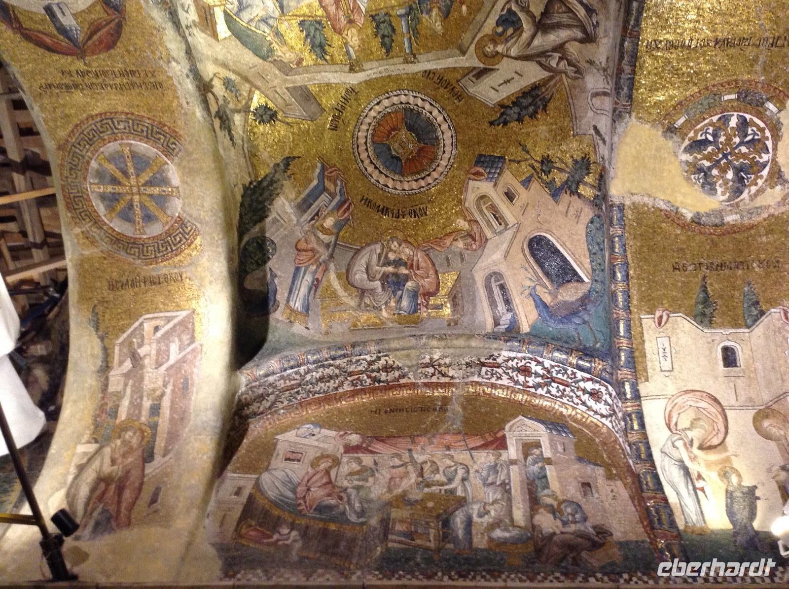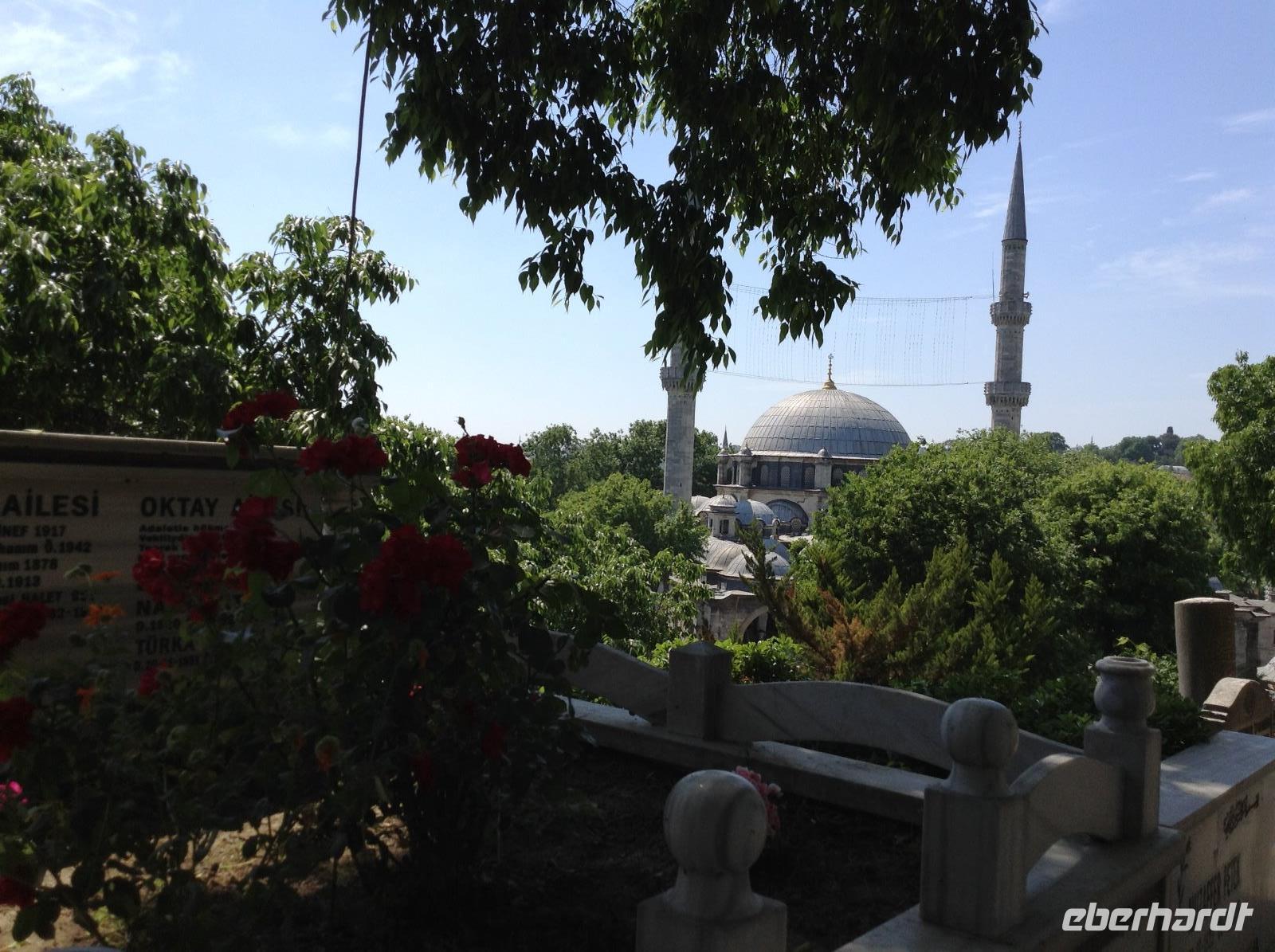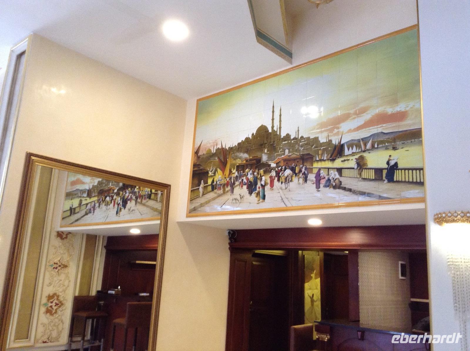 Nach dem Frühstück, heute bei strahlendem Sonnenschein, stand der Bus wieder vor dem Hotel und holte uns ab. Der erste Besichtigungspunkt war das alte Chora-Kloster, heute ein Museum. Wir besichtigten eines der ältesten Bauwerke der Stadt mit wunderschönen Mosaiken, ein Meisterwerk byzantinischer Kunst. Ganz in der Nähe standen einige Zeilen bunt angestrichener Holzhäuser aus dem 18. Jahrhundert, sehr hübsch anzuschauen. Der Bus brachte uns anschließend zu einem weiteren bekannten Aussichtspunkt, dem Pierre Loti. Wir genossen auch diese tolle Aussicht bei einem Kaffee oder Tee. Zu Fuß gingen wir über einen der ältesten Friedhöfe der Stadt hinunter zur Eyüp-Moschee und schauten den Einheimischen dort ein wenig bei ihren Ritualen zu. Diese Moschee wirkte sehr lebendig, es war gerade Zeit für die Mittagsgebete. Zurück am Bus fuhren wir die Uferstraße entlang zum Bootsanleger in der Nähe der Galata-Brücke. Unsere 2-stündige Bootsfahrt auf dem Bosporus konnte beginnen. Wir saßen in der Mittagssonne, ließen uns den Fahrtwind um die Nase wehen und genossen traumhaft schöne Aussichten auf eine faszinierende Stadt. Verwöhnt wurden wir mit diversen Getränken an Bord, alle fühlten sich sehr wohl. Zum Abschluß des Tagesprogrammes besuchten wir den modernen Teil Istanbuls und fuhren zum Taxim-Platz. Es gab etwas freie Zeit, um auf der nahen Fußgängermeile shoppen oder flanieren zu gehen. Dann ging es zurück zum Hotel, denn wir hatten noch das gemeinsame Abschlußessen im Originalrestaurant des Orient Express auf der Agenda. Dahin ging es zu Fuß und mit der Straßenbahn. Wir erlebten einen sehr schönen letzten Abend bei traditioneller türkischer Küche.