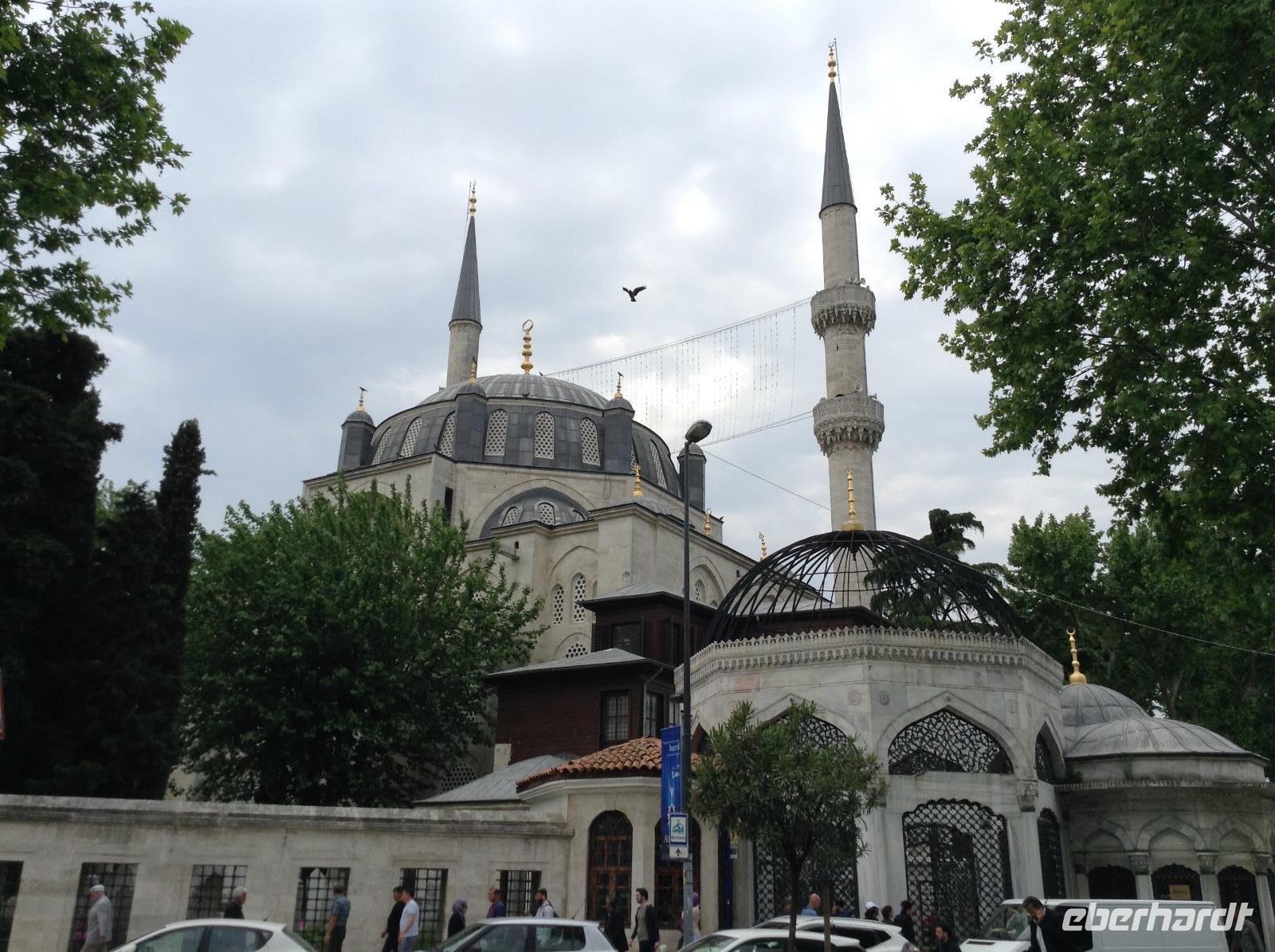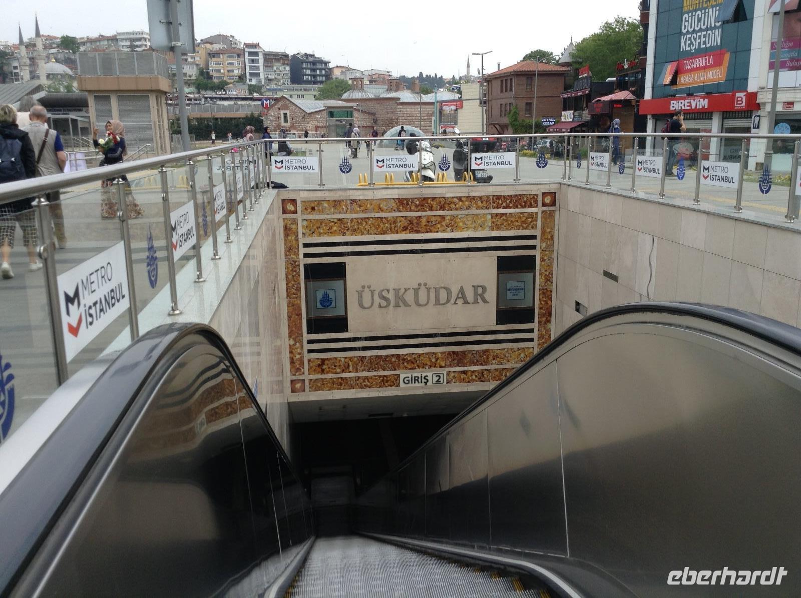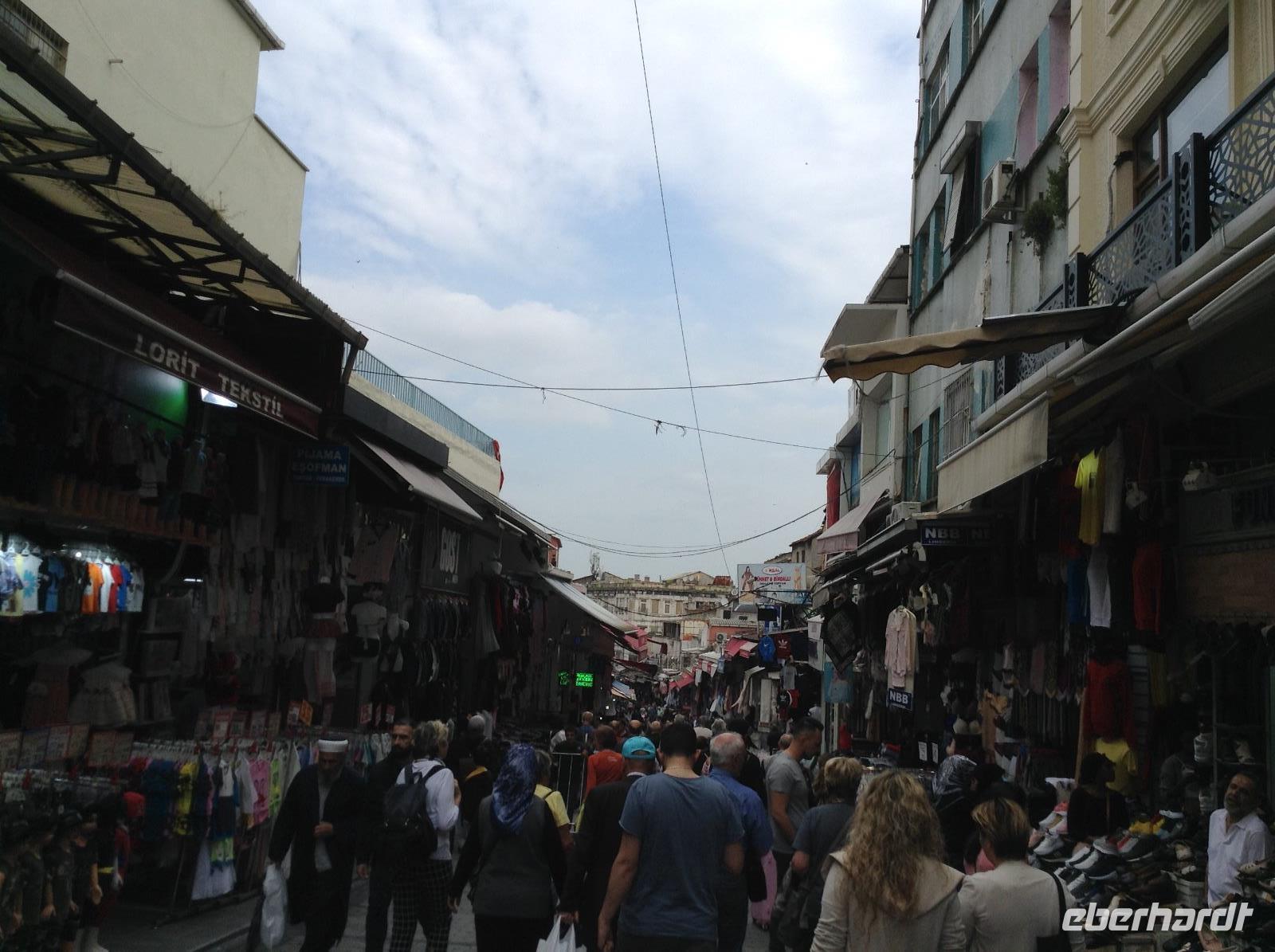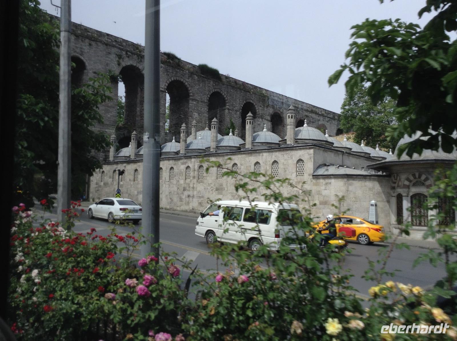 Nach dem guten Frühstück auf der Sonnenterasse holte uns der Bus ab und wir fuhren zunächst zum großen überdachten Basar der Stadt. Wir hatten etwas den Programmablauf für diesen Tag wegen angekündigtem Regen umgestellt. Aber es tröpfelte nur. Gemeinsam betraten wir das Tor zum Basar und staunten, gingen ein Stück gemeinsam hinein, bevor jeder die Gelegenheit hatte, sich individuell zwischen diesen vielen Geschäften umzusehen. Da gab es praktisch alles. Verschiedene Düfte stiegen uns in die Nasen, es roch nach Gewürzen, getrockneten Früchten und Tees, aber auch nach türkischem Honig und Süßigkeiten. Gemeinsam spazierten wir durch die engen Gassen hinaus und weiter bis zum Ägyptischen Markt, wo vor allem die Einheimischen frische Produkte kaufen gehen. Am Ausgang fanden wir dann auch unseren Bus wieder. Zunächst zeigte uns Cerdar ein langes Stück der alten Stadtmauer um Istanbul. Zum Fotostop hielten wir an und sahen, wie zwischen den 3 hintereinander gebauten alten Befestigungen heute überall Gemüsefelder sind. Da wuchsen Tomaten, Lauch, frische Kräuter usw. Dann brachte uns der Bus zur Haltestelle der Marmaray-Bahn und unter dem Bosporus ging es hinüber zur asiatischen Seite der Stadt, nach Üsküdar.