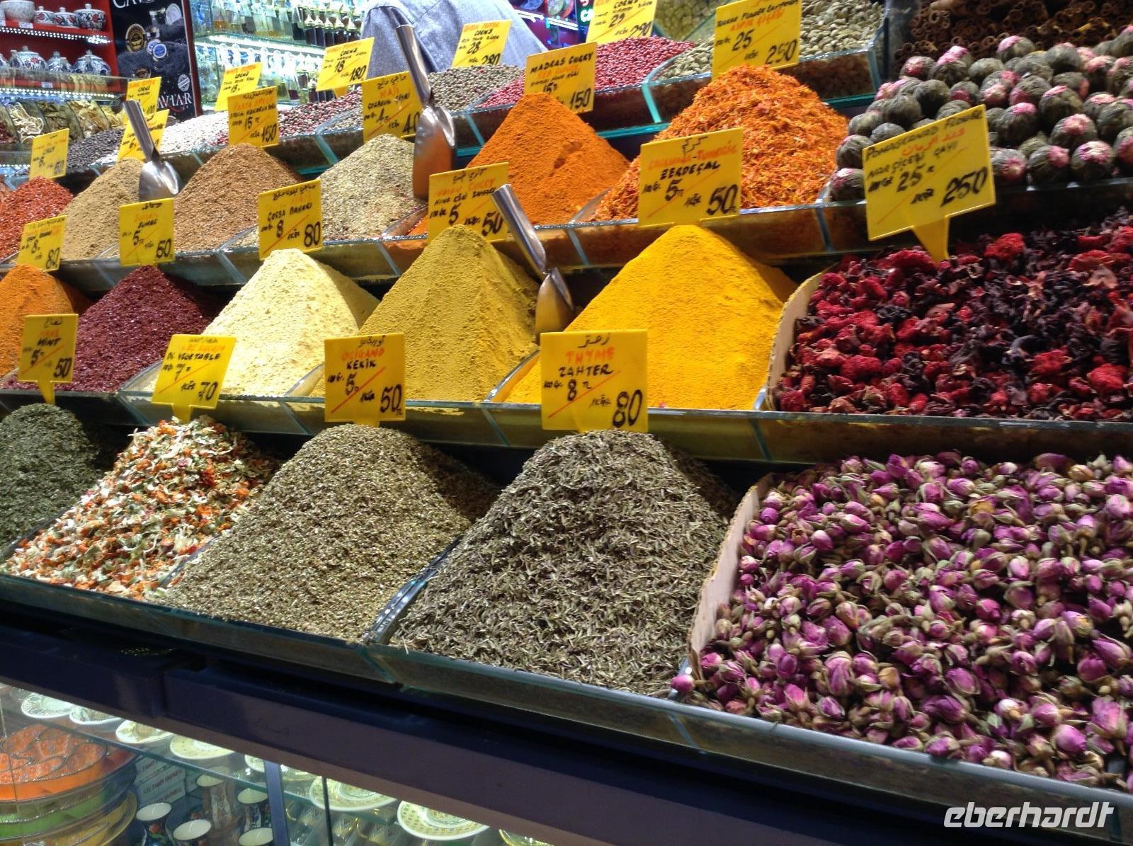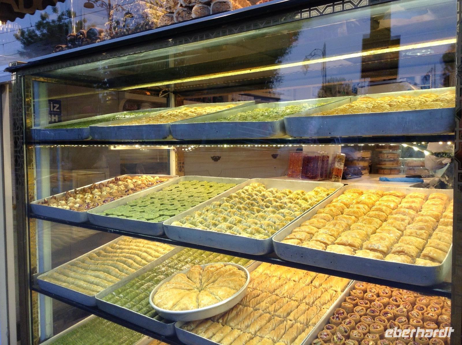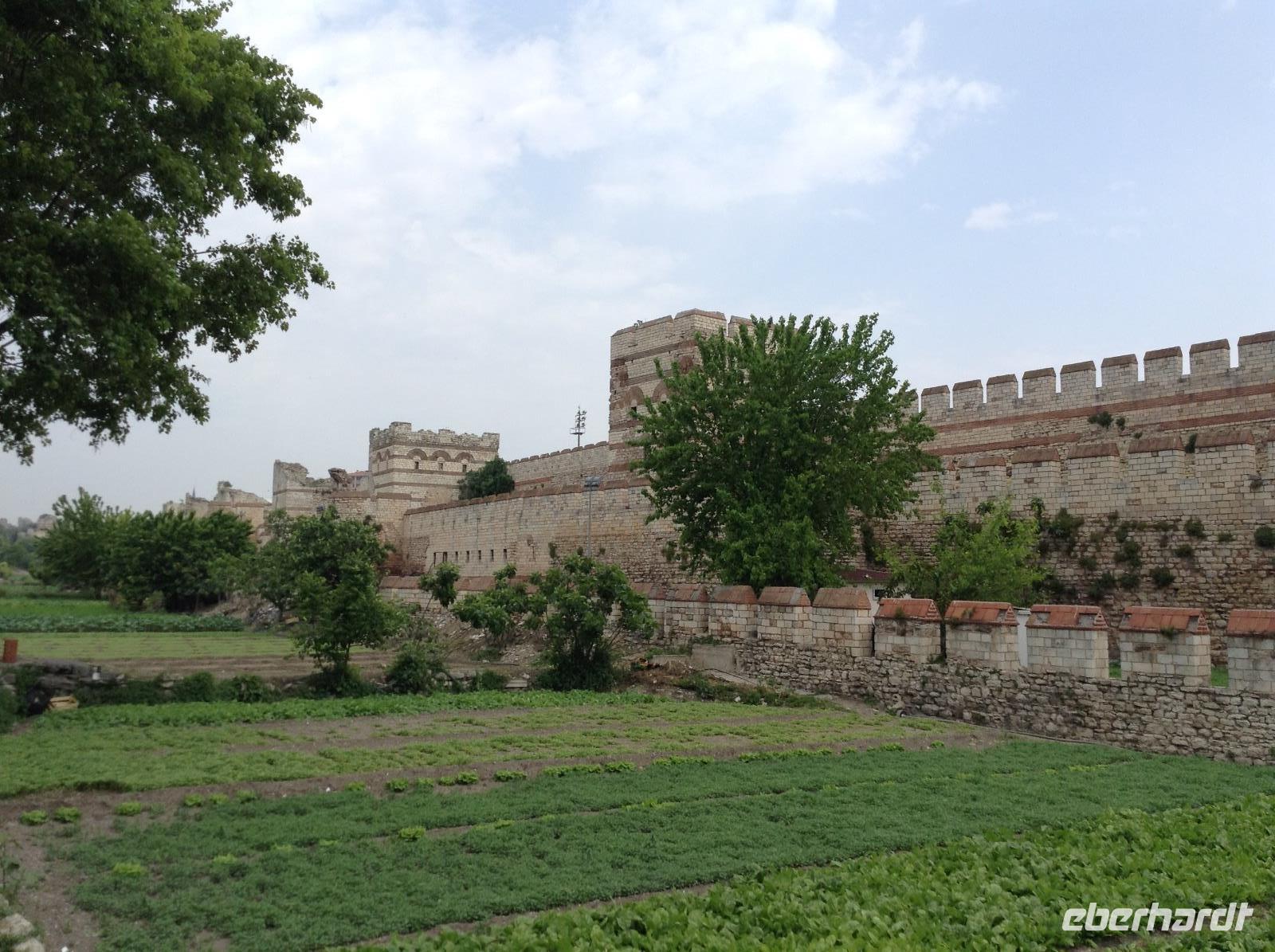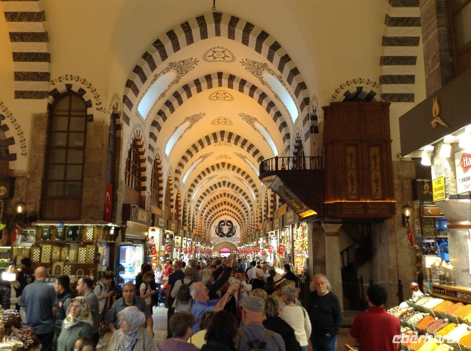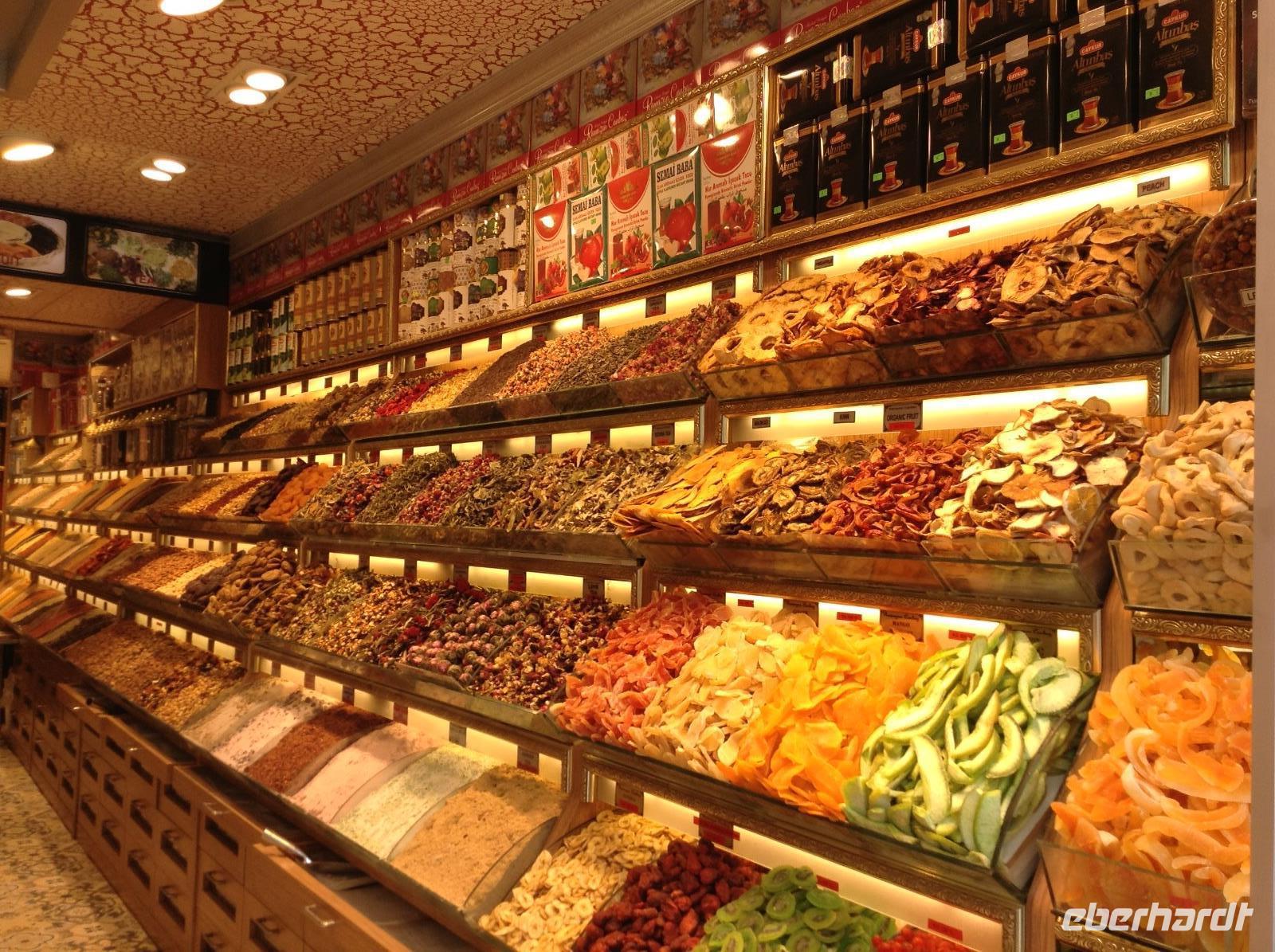 Nach dem guten Frühstück auf der Sonnenterasse holte uns der Bus ab und wir fuhren zunächst zum großen überdachten Basar der Stadt. Wir hatten etwas den Programmablauf für diesen Tag wegen angekündigtem Regen umgestellt. Aber es tröpfelte nur. Gemeinsam betraten wir das Tor zum Basar und staunten, gingen ein Stück gemeinsam hinein, bevor jeder die Gelegenheit hatte, sich individuell zwischen diesen vielen Geschäften umzusehen. Da gab es praktisch alles. Verschiedene Düfte stiegen uns in die Nasen, es roch nach Gewürzen, getrockneten Früchten und Tees, aber auch nach türkischem Honig und Süßigkeiten. Gemeinsam spazierten wir durch die engen Gassen hinaus und weiter bis zum Ägyptischen Markt, wo vor allem die Einheimischen frische Produkte kaufen gehen. Am Ausgang fanden wir dann auch unseren Bus wieder. Zunächst zeigte uns Cerdar ein langes Stück der alten Stadtmauer um Istanbul. Zum Fotostop hielten wir an und sahen, wie zwischen den 3 hintereinander gebauten alten Befestigungen heute überall Gemüsefelder sind. Da wuchsen Tomaten, Lauch, frische Kräuter usw. Dann brachte uns der Bus zur Haltestelle der Marmaray-Bahn und unter dem Bosporus ging es hinüber zur asiatischen Seite der Stadt, nach Üsküdar.