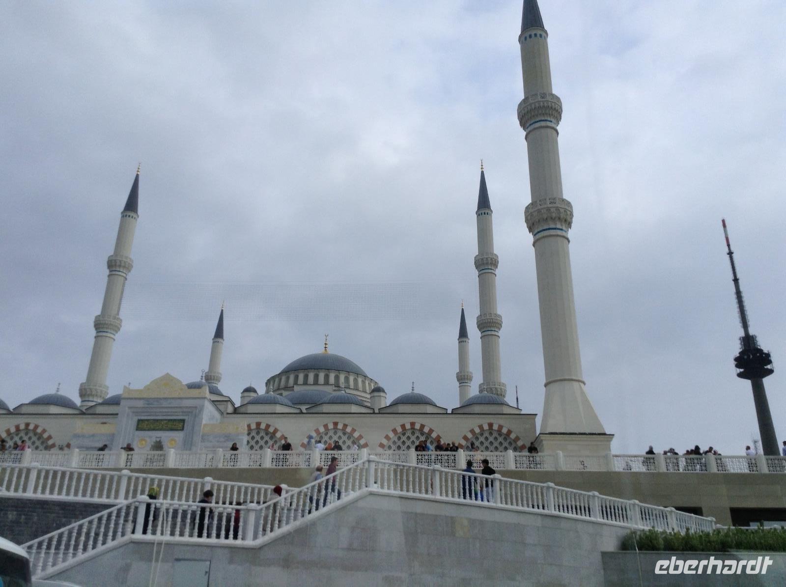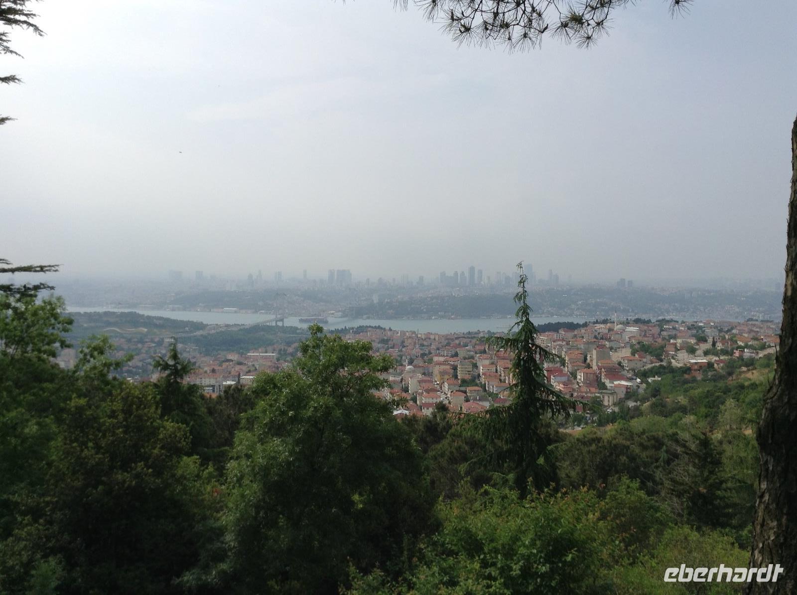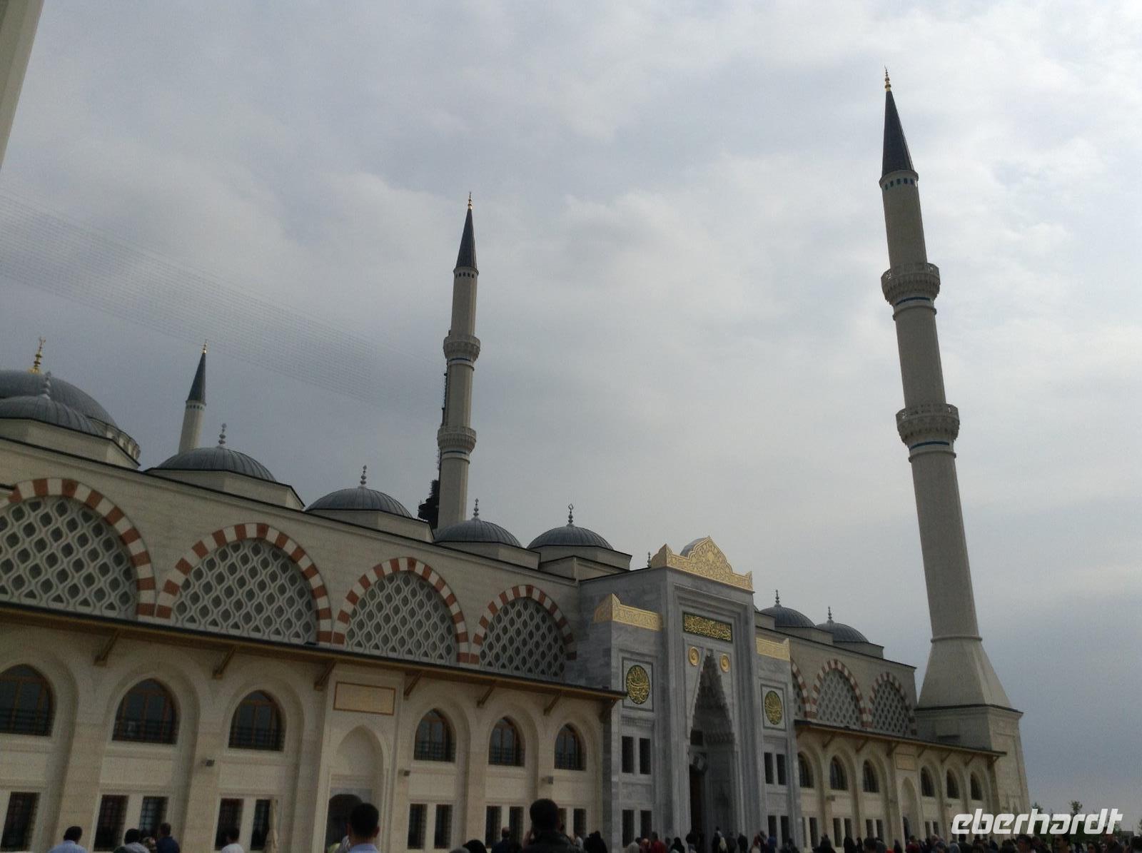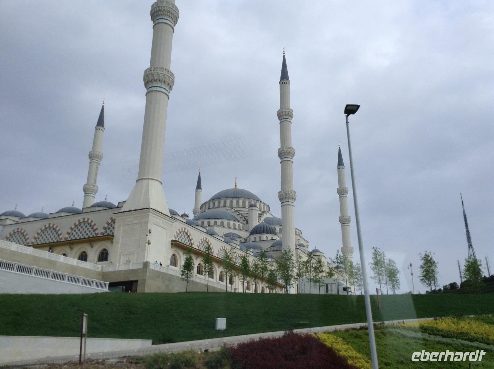 Unser kurzer Bummel führte uns von der U-Bahn-Station an einer hübschen Moschee vorbei zum Basar. Es war Mittagszeit und wir hatten die Möglichkeit auch eine Kleinigkeit zum Essen dort zu bekommen. Inzwischen war der Bus auch auf der asiatischen Seite angekommen und holte uns vor dem Basar ab. Es ging zum Mädchenturm, der schon von Weitem gut im Wasser sichtbar war. Ein kleines Boot brachte uns zur Insel mit dem Turm hinüber. Wir genossen die Sonne und die schöne Aussicht. Vom Turm aus gab es einen tollen Rundumblick. Ein weiterer Höhepunkt an diesem Tag war dann die Fahrt vorbei an ganz modernen neuen Gebäuden und Hochhäusern hinauf zur höchsten Erhebung von Istanbul, dem Camlica, oder auch Tannen-hügel genannt. Cerdar lud die Gruppe auf einen türkischen Tee und einen Sesamkringel ein und war nahmen direkt vor dem Restaurant auf dem Hügel Platz, genossen den Tee und eine fantastische Aussicht. Der ganze Bosporus war zu sehen, die uns inzwischen bekannten Plätze und Moscheen der Stadt und auch der gerade neu im Bau befindliche Turm, der bald die vielen Antennenmasten auf dem Hügel ablösen soll. In der Ferne sahen wir auch die Minarette und die Kuppel der ganz neu gebauten Moschee ganz in der Nähe und unser aller Wunsch war es, sich noch dieses Bauwerk kurz anzusehen. Cerdar und der Busfahrer ermöglichten uns einen kurzen Besuch des gewaltigen Bauwerkes, wir standen da und staunten. Der Heimweg zum Hotel führte uns dann über die Bosporusbrücke zurück. Voller neuer Eindrücke kamen wir abends zurück. Zum Abendessen ging es in ein bekanntes Fischrestaurant, wer wollte. Auch dieser Abend in einer kleinen Bucht war wunderschön, wir genossen das tolle Essen und die Gastfreundschaft.