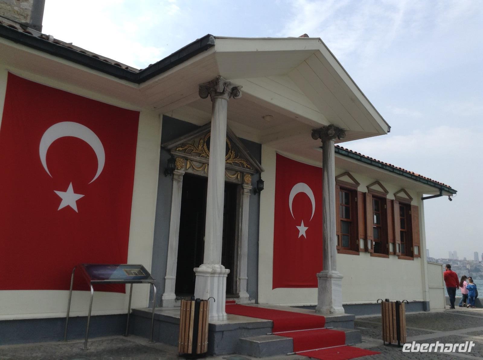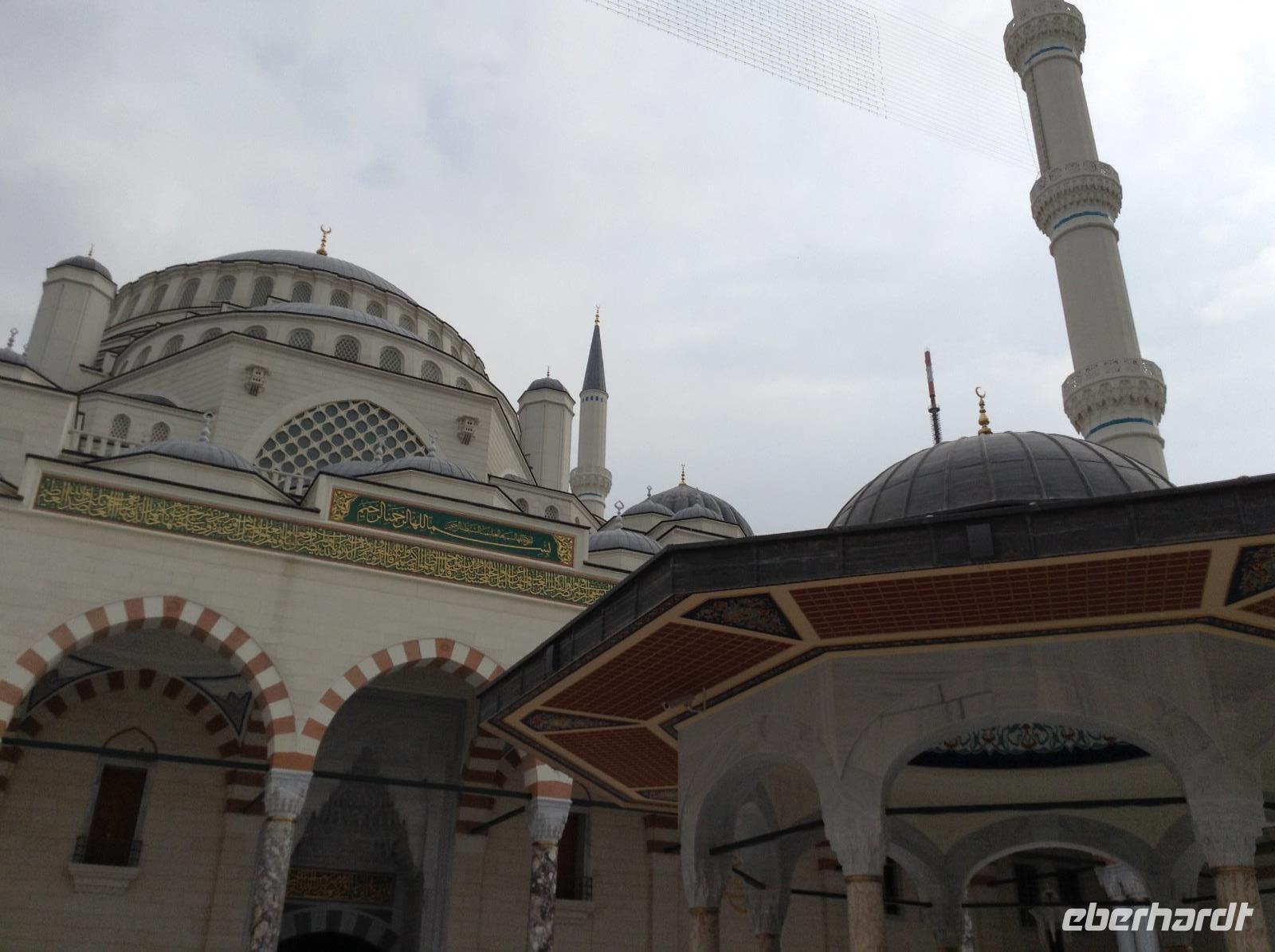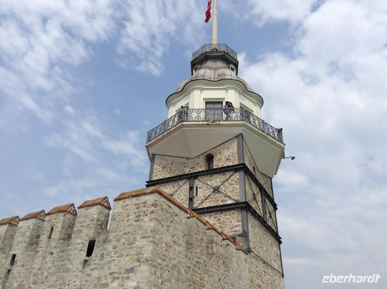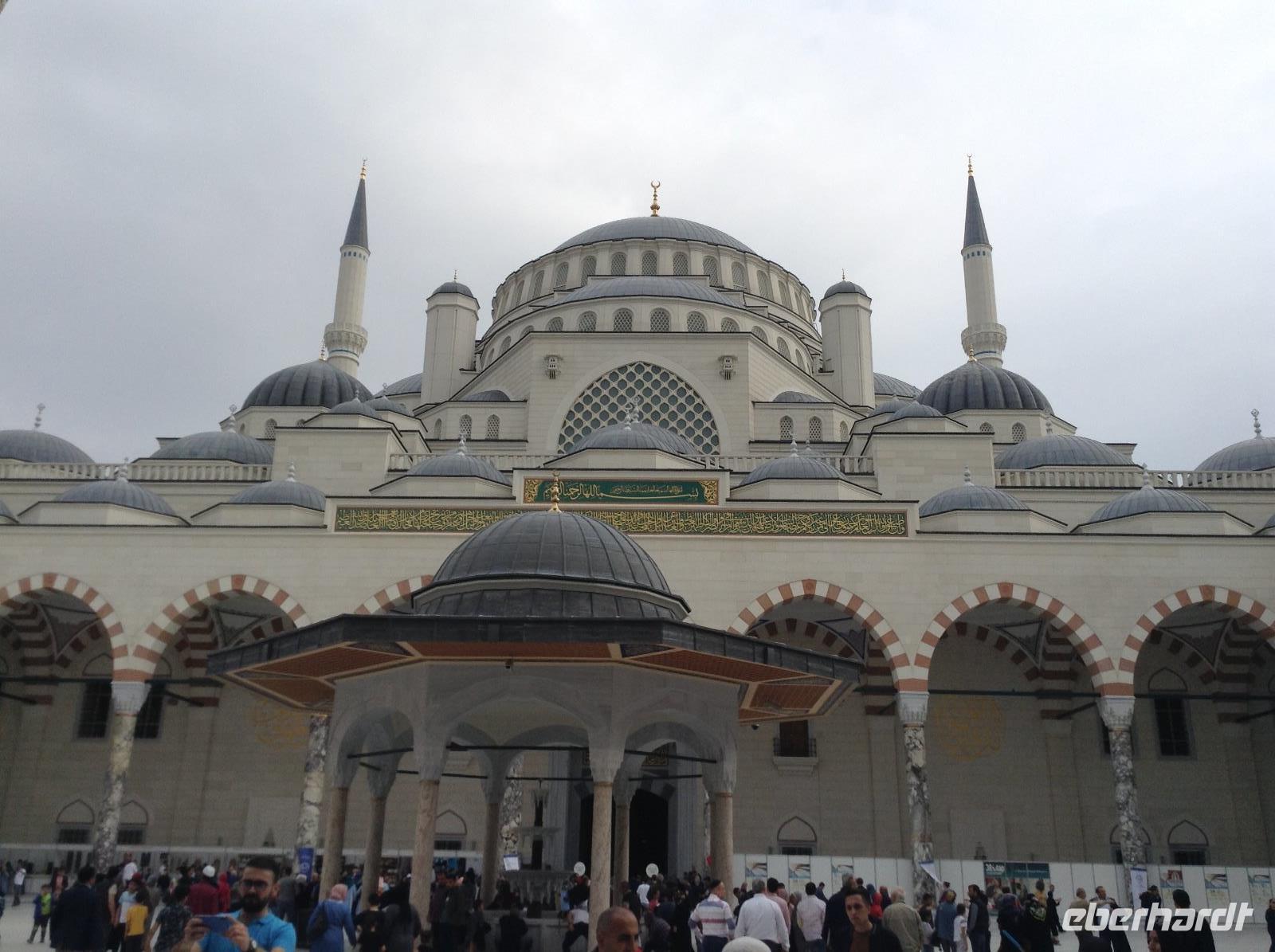 Unser kurzer Bummel führte uns von der U-Bahn-Station an einer hübschen Moschee vorbei zum Basar. Es war Mittagszeit und wir hatten die Möglichkeit auch eine Kleinigkeit zum Essen dort zu bekommen. Inzwischen war der Bus auch auf der asiatischen Seite angekommen und holte uns vor dem Basar ab. Es ging zum Mädchenturm, der schon von Weitem gut im Wasser sichtbar war. Ein kleines Boot brachte uns zur Insel mit dem Turm hinüber. Wir genossen die Sonne und die schöne Aussicht. Vom Turm aus gab es einen tollen Rundumblick. Ein weiterer Höhepunkt an diesem Tag war dann die Fahrt vorbei an ganz modernen neuen Gebäuden und Hochhäusern hinauf zur höchsten Erhebung von Istanbul, dem Camlica, oder auch Tannen-hügel genannt. Cerdar lud die Gruppe auf einen türkischen Tee und einen Sesamkringel ein und war nahmen direkt vor dem Restaurant auf dem Hügel Platz, genossen den Tee und eine fantastische Aussicht. Der ganze Bosporus war zu sehen, die uns inzwischen bekannten Plätze und Moscheen der Stadt und auch der gerade neu im Bau befindliche Turm, der bald die vielen Antennenmasten auf dem Hügel ablösen soll. In der Ferne sahen wir auch die Minarette und die Kuppel der ganz neu gebauten Moschee ganz in der Nähe und unser aller Wunsch war es, sich noch dieses Bauwerk kurz anzusehen. Cerdar und der Busfahrer ermöglichten uns einen kurzen Besuch des gewaltigen Bauwerkes, wir standen da und staunten. Der Heimweg zum Hotel führte uns dann über die Bosporusbrücke zurück. Voller neuer Eindrücke kamen wir abends zurück. Zum Abendessen ging es in ein bekanntes Fischrestaurant, wer wollte. Auch dieser Abend in einer kleinen Bucht war wunderschön, wir genossen das tolle Essen und die Gastfreundschaft.