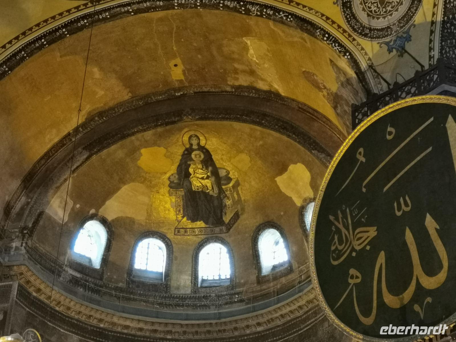 Mit der Eroberung Konstantinopels im Jahre 1453 wurde die Aya Sofia innerhalb weniger Monate in eine Moschee umgewandelt, man baute eine Gebetsnische ein, verdeckte die goldenen Mosaiken mit arabischen Kalligraphien und erst Kemal Atatürk, der erste Präsident der Türkischen Republik, wandelte sie im Jahre 1934 in ein Museum um. Danach wurden die übertünchten Mosaiken bei Restaurationen wieder hervorgeholt und bis heute hat diese Kirche von ihrem Reiz nichts eingebüßt und läßt Besucher aus aller Welt staunen.