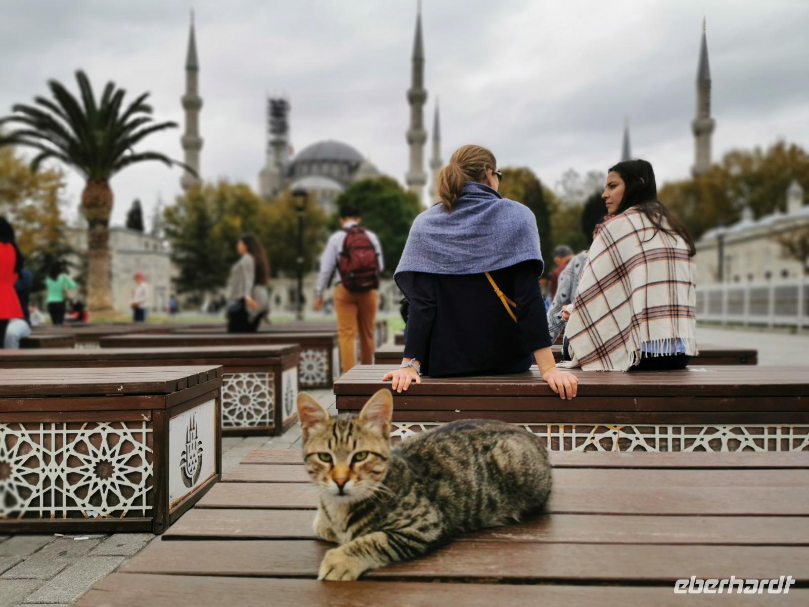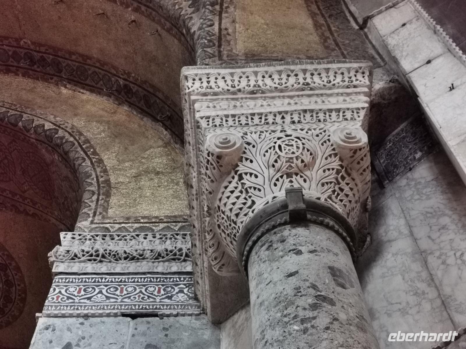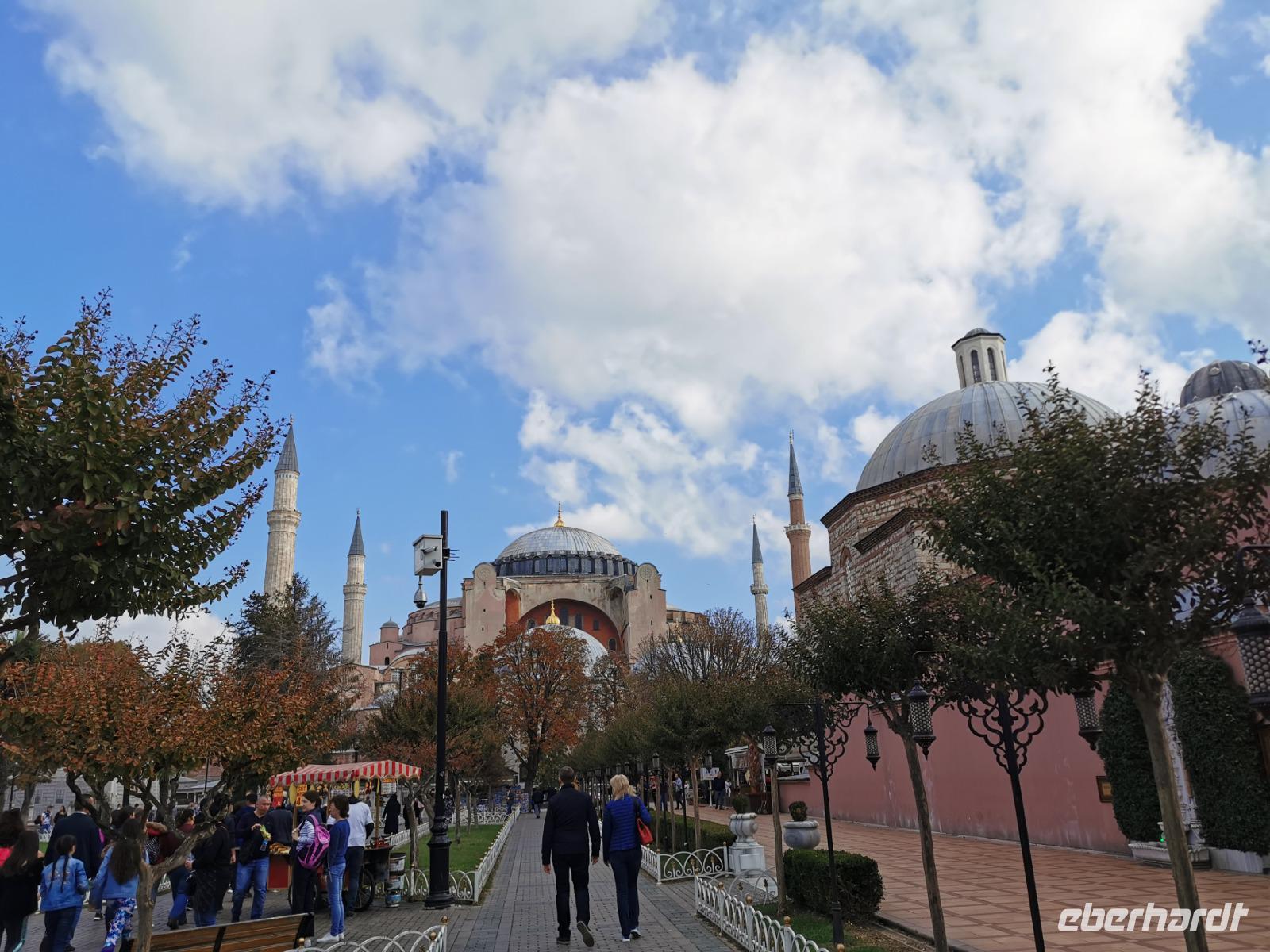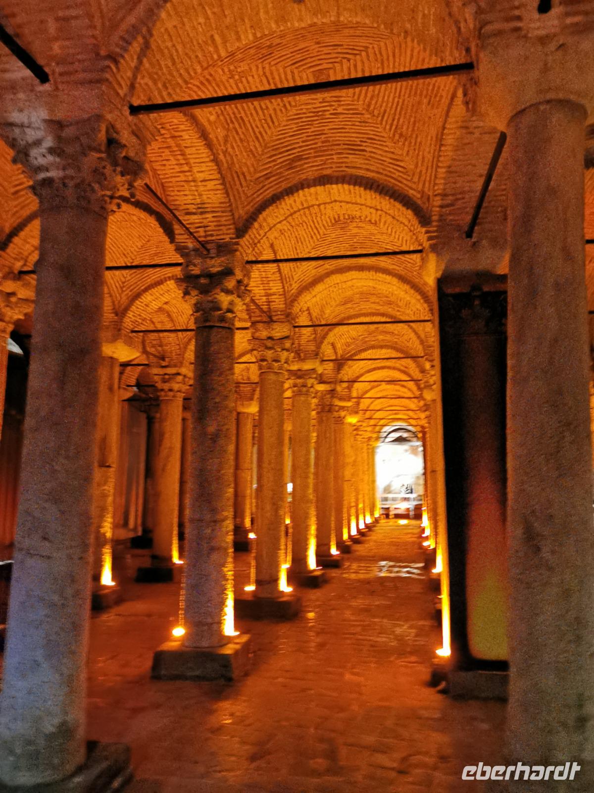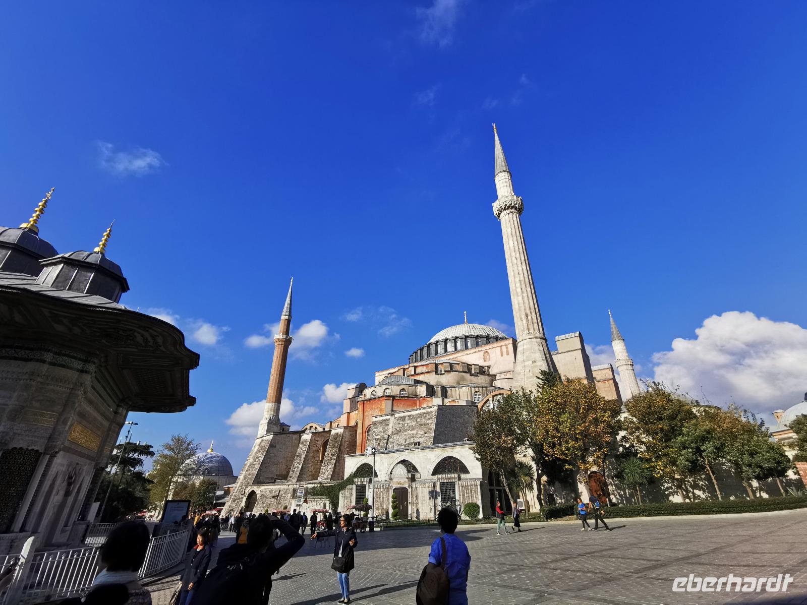 Danach liefen wir zur gegenüber liegenden Aya Sofia (Hagia Sophia). Dort funktionierten leider die online gelösten Eintrittskarten nicht und kurzerhand beschlossen wir, erstmal in die Yerebatan Sarayi (die alte Zisterne) zu gehen, die eigentlich gar nicht auf dem Programm stand.