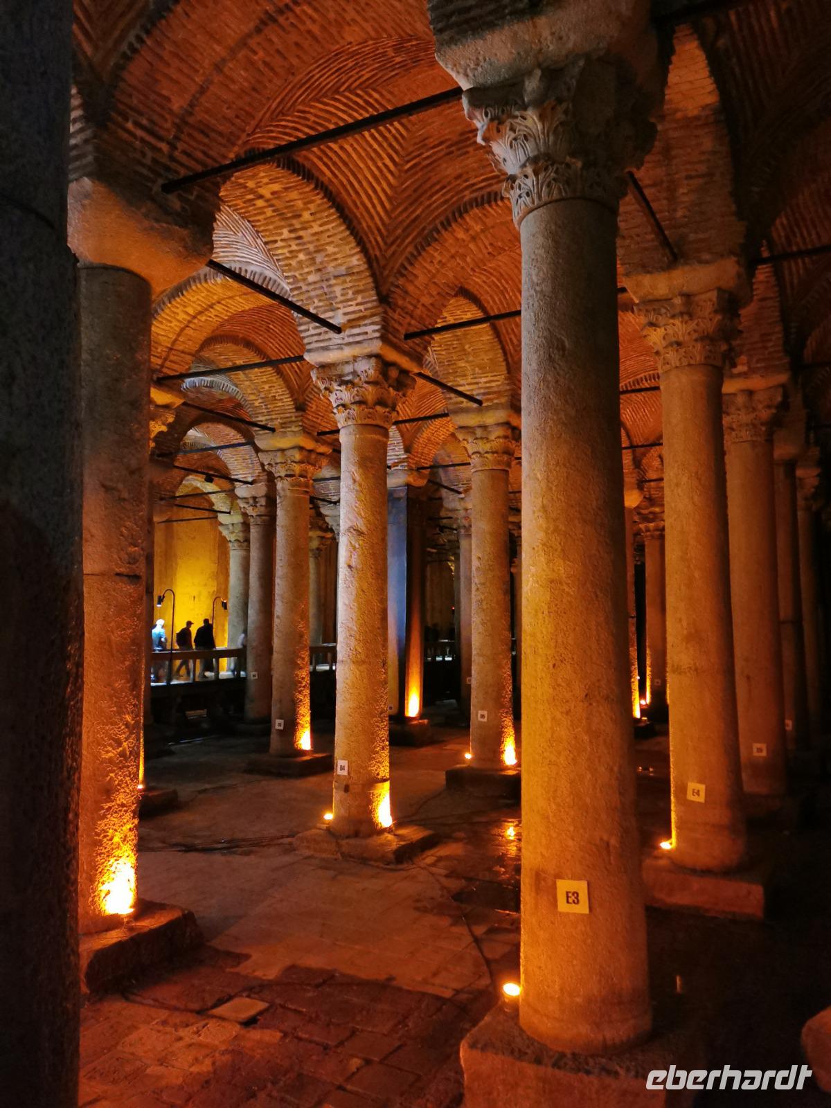 Diese 140 Meter lange und 65 Meter breite unterirdische Zisterne ist eine Hinterlassenschaft von Kaiser Justinian aus dem 6. Jahrhundert. Er hatte sie bereits 542 als unterirdischen Wasserspeicher für seinen großen kaiserlichen Palast anlegen lassen. Ihr Fassungsvermögen betrug 80.000 Kubikmeter. Das Wasser wurde in bester Quellqualität aus dem nördlich gelegenen Wald hier hineingeleitet.