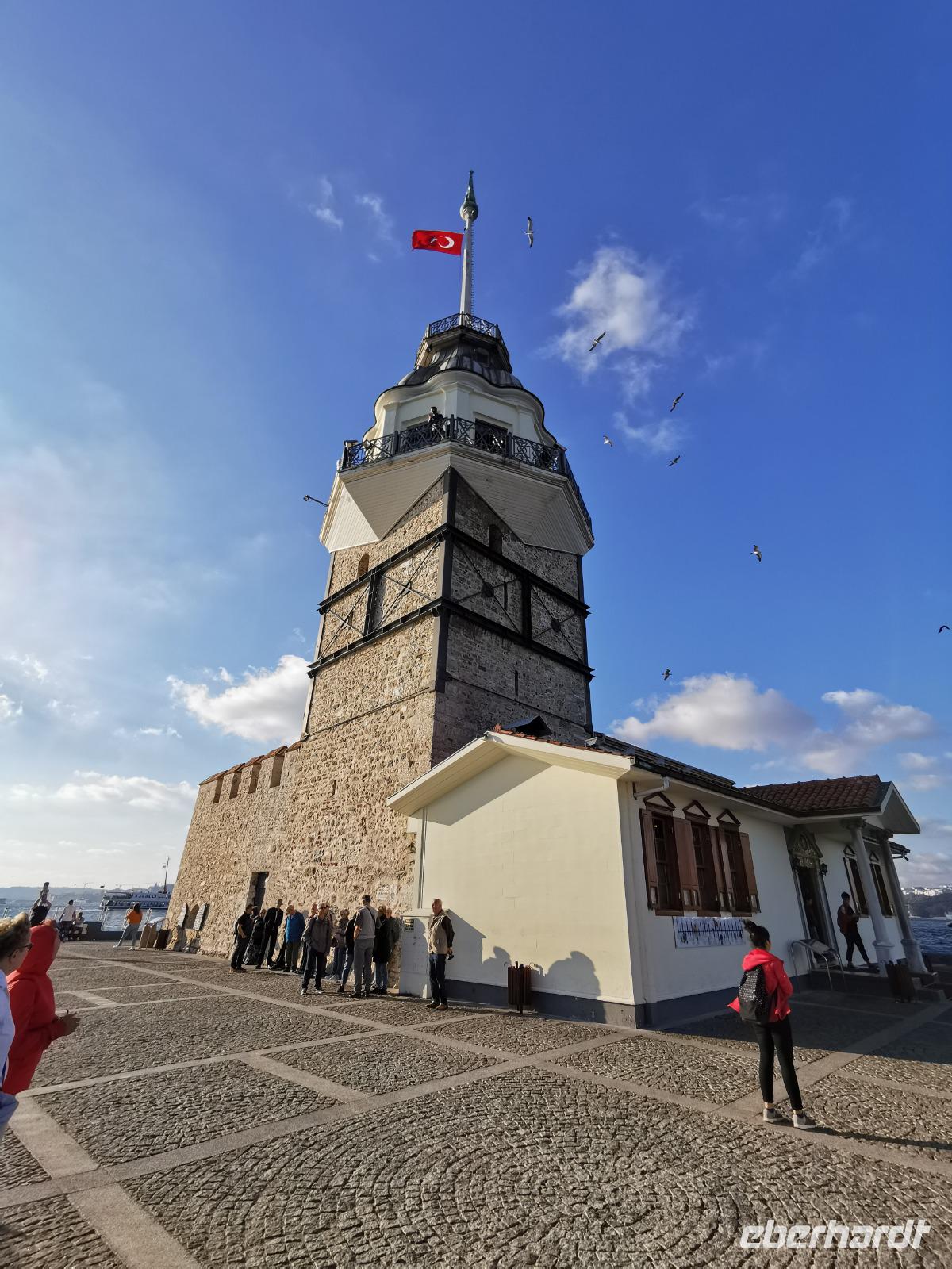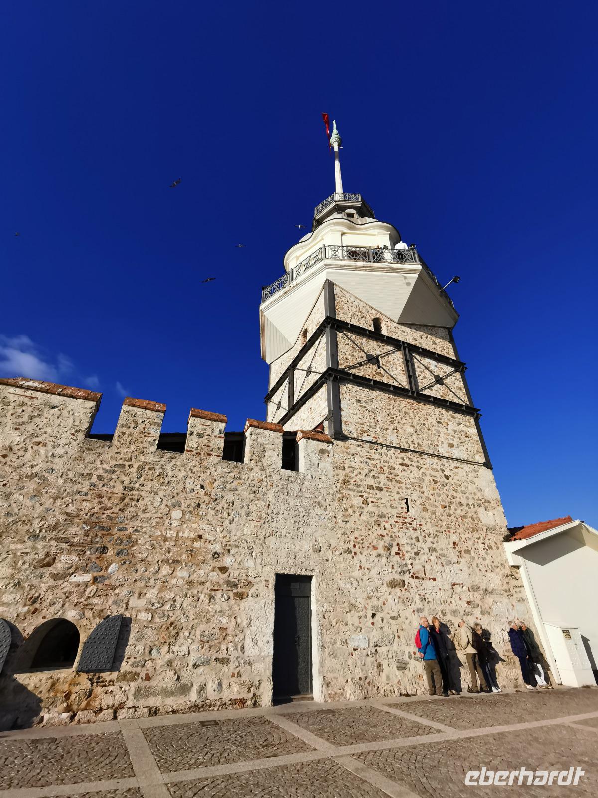 Eine schöne Prinzessin soll in der Stadt gelebt haben, eine Wahrsagerin hatte ihr den Tod durch einen Schlangenbiß vorausgesagt. Daraufhin habe ihr Vater, der Sultan, sofort diesen Turm in die Mitte des Bosporus bauen lassen, um seine Tochter vor diesem Tod zu bewahren, so die Legende. Aber wie es das Schicksal so wollte, eines Tages kam Obst für die Prinzessin auf die Insel und in einem der Körbe war eine Schlange, die die Prophezeihung wahr werden ließ: Kismet, sagt der Türke dazu.
