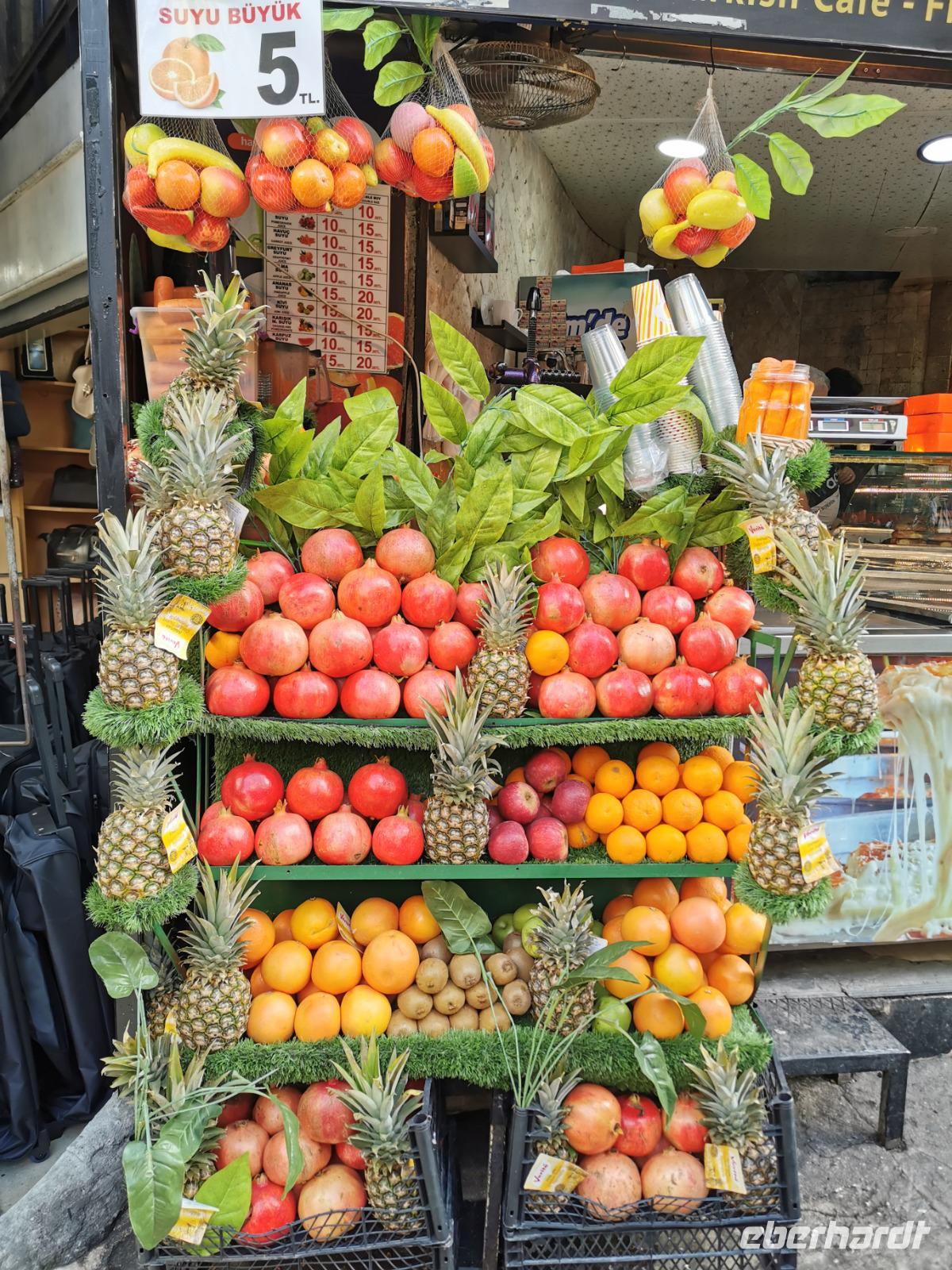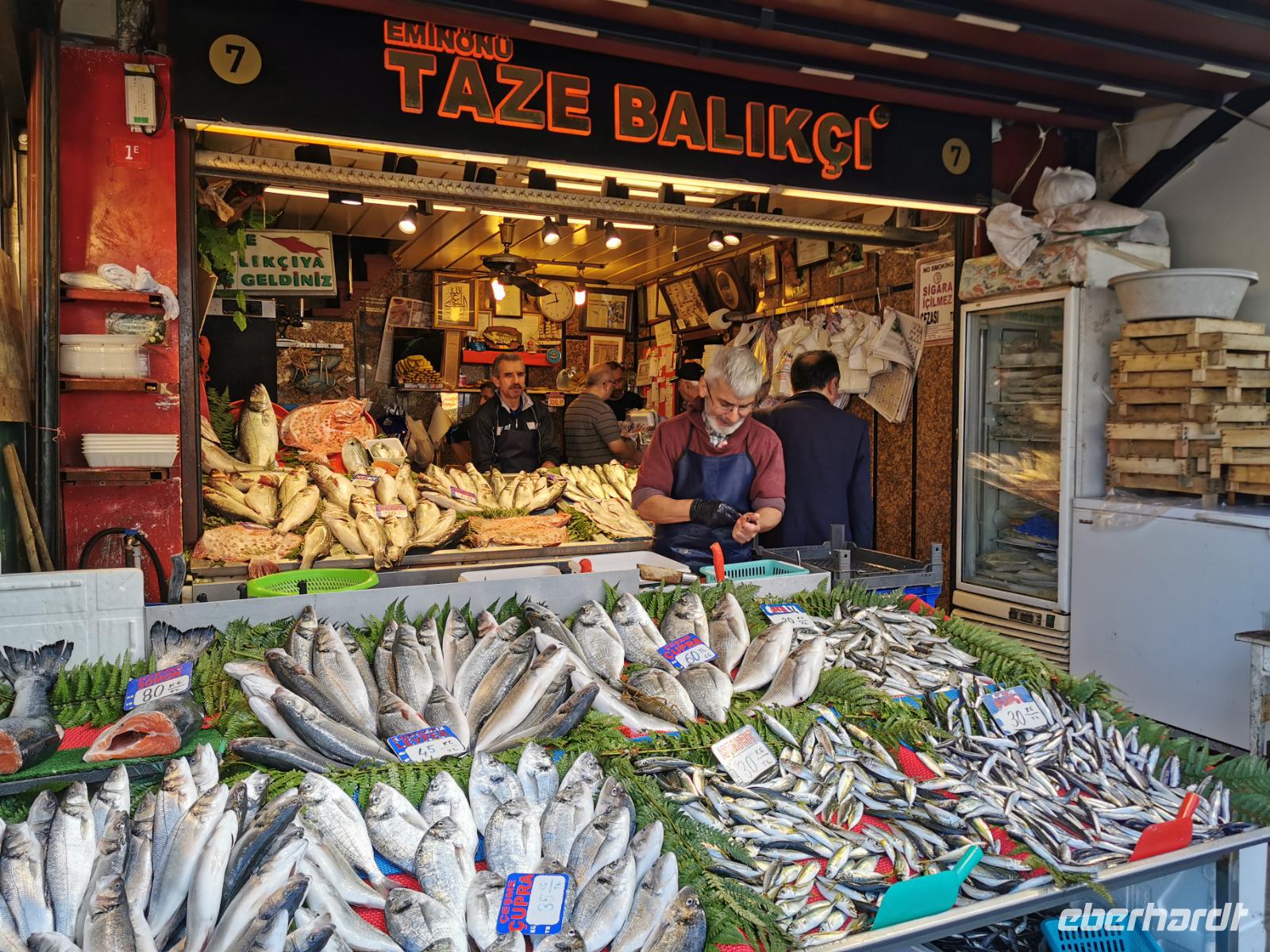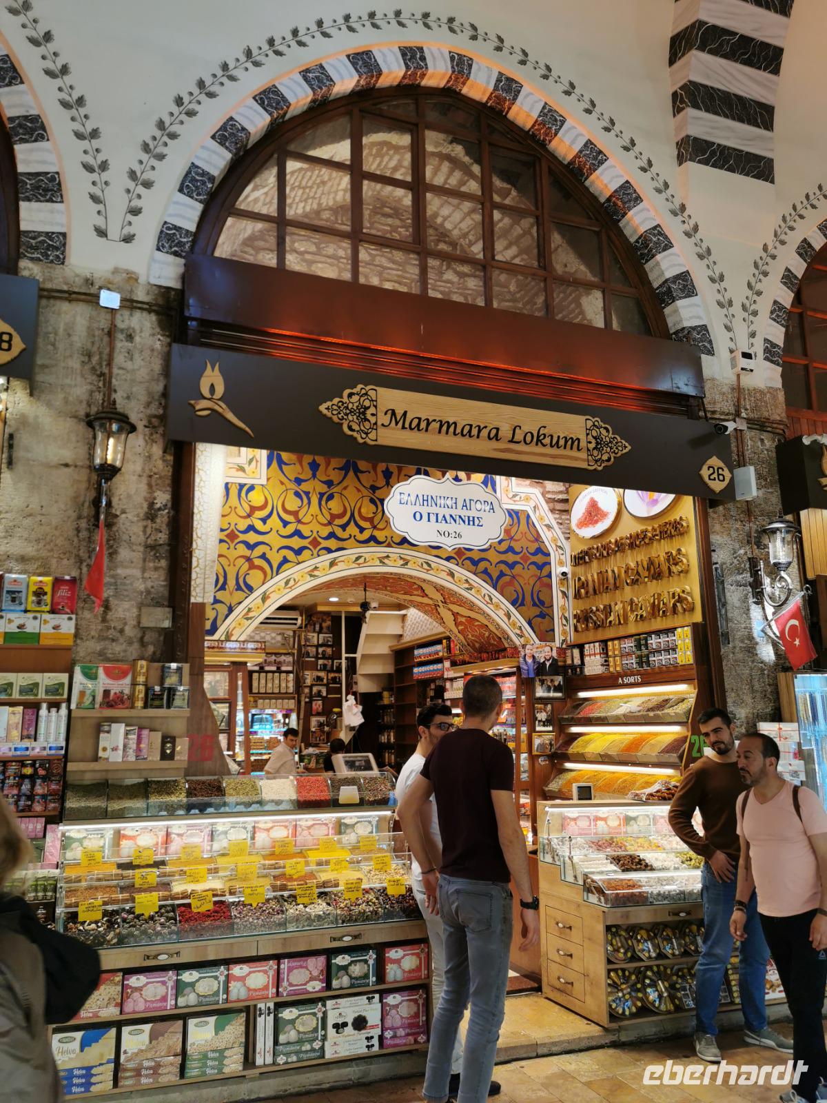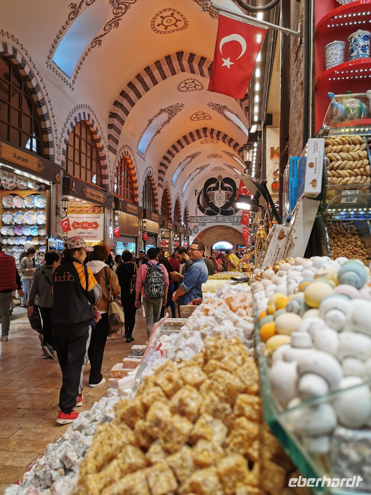 Wir wählten den zum Goldenen Horn hin gelegenen Ausgang und spazierten weiter an unzähligen Ständen mit Handtüchern und Bettwäsche vorbei zum kleineren Misir Carsi (dem ägyptischen Basar). Hier findet man alles an Gewürzen, Tee, Trockenfrüchten, Nüssen und altem Handwerk, was man sich nur vorstellen kann und man könnte hier Tage verbringen, um all die Schätze zu entdecken, die Gerüche wahrzunehmen und die überall dekorativ aufgetürmten Gewürze zu bestaunen.