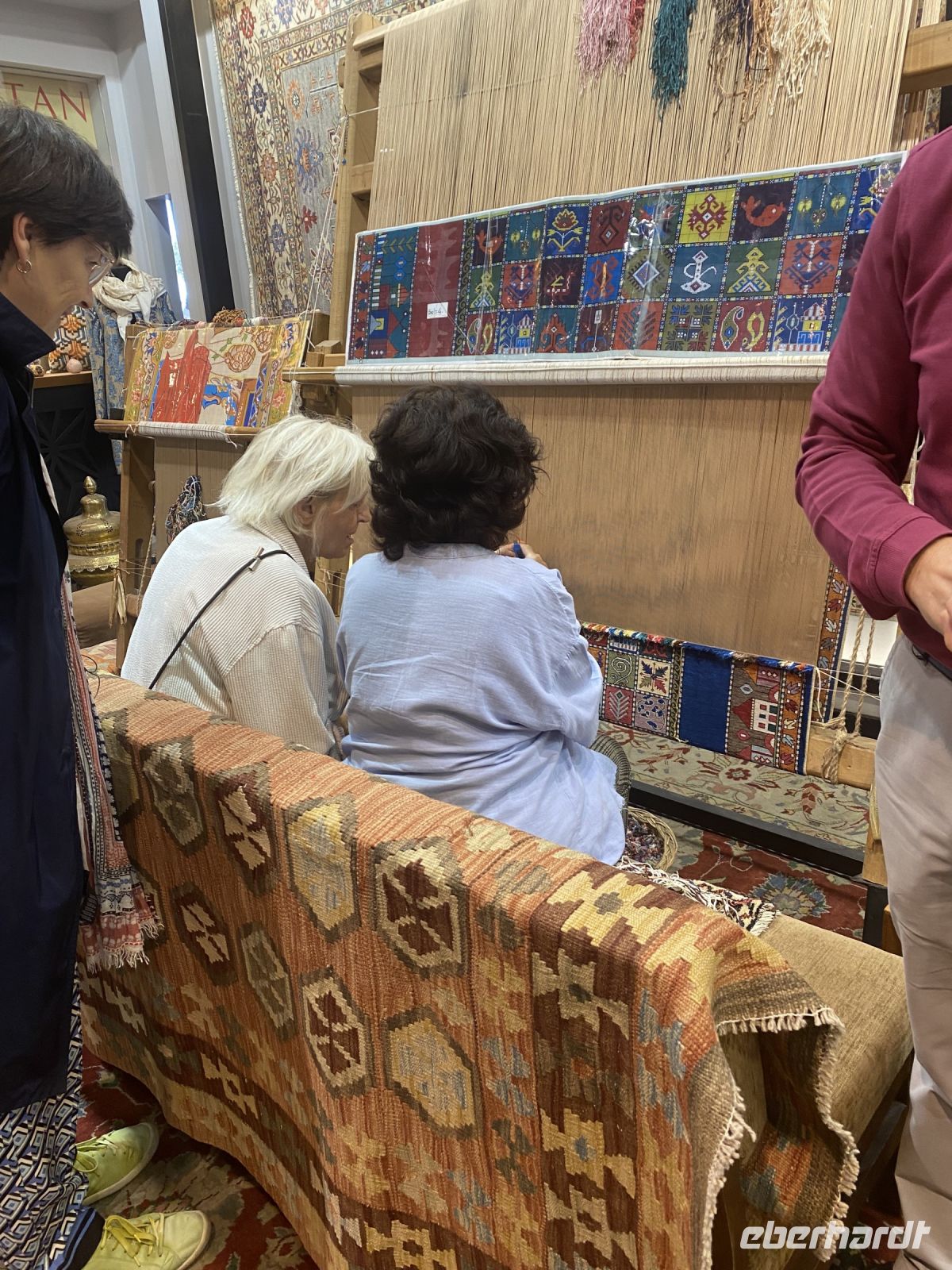 Heute bringt uns unser Bus zu einer Knüpferfamilie. Wir werden in die alte Handwerkstradition der Teppichherstellung eingeführt, dürfen selbst die Technik des Knüpfens ausprobieren und erfahren viel über Material, Wert, Knotentechnik, Farben, Muster, Reinigung und Preise der türkischen Teppiche. Anschließend erfolgt eine Präsentation zahlreicher Teppiche bei Tee, Wein und Raki. Im Gebäude gibt es auch ein Kunstgewerbegeschäft und einen Schmuckladen, deren Auslagen betrachtet und ebenso wie die Teppiche gekauft werden können. Viele der angebotenen Stücke sind eine Augenweide, aber zum Kauf entschließt sich niemand. Im Keller des Hauses befindet sich eine alte Zisterne, die zur Ausstellung über das Hippodrom erweitert wurde. Die frische Luft auf dem Weg zum Topkapi Palast tut uns gut und wir warten einen Moment auf Ahmed, der vor dem Eingang des Palastes Simit mit Frischkäse für uns kauft, bevor wir in die Welt der Sultane des osmanischen Reiches eintauchen. Die Anhöhe, auf der der Palast steht, bietet einen traumhaften Panoramablick auf das Goldene Horn, das Marmara Meer, den Bosporus und die Stadt. Der Palast fungiert als Museum und gibt tiefe Einblicke in die Vergangenheit. Wir bestaunen riesiges Kochgeschirr, immerhin mussten täglich rund 4.000 Personen verpflegt werden und so verwundert es nicht, dass die Anlage über 70 Hektar groß ist. Sie besteht aus vier Innenhöfen, von denen jeder durch ein eigenes Tor erreichbar ist. Neben dem Tor zum ersten und größten Hof befanden sich die Wohnungen der Wächter, auf dem Platz fanden Paraden statt. Wir sehen den Brunnen des Henkers, an dem sich der Henker nach einer Enthauptung die Hände gewaschen haben soll und gelangen durch das Mittlere Tor (Orta Kapi) in den Palast und den Zweiten Hof. Hier erkunden wir die Küchen mit ihren zwanzig Schornsteinen, eine Silber- und eine Porzellansammlung sowie den Harem. Der Besuch des Harems ist ein besonderes Erlebnis und Ahmet hat uns auch hier sehr gut informiert. In der daran anschließenden Freizeit verteilten wir uns in Grüppchen auf dem Palastgelände und in den zahlreichen Ausstellungsräumen, um individuelle Eindrücke zu sammeln. Es ist nicht möglich alles im Laufe einer Besichtigung angemessen zu würdigen. Von der Pracht des Palastes beseelt, machen wir uns mit dem Bus auf, um die Chora Kirche zu besichtigen, die bis in frühe 16. Jahrhundert als orthodoxe Kirche und seitdem als Moschee und Museum genutzt wird. Sie liegt in einem typisch osmanischen Gebiet mit bunten Holzhäusern und engen Straßen, unser Bus findet nur mit Mühe einen Platz, an dem wir aussteigen können. Wir bestaunen Mosaike und Fresken, die zu den bedeutendsten und aufwendigsten Sakralzyklen weltweit zählen. Viele der Mosaike beschreiben das Leben Jesu Christi und der Jungfrau Maria mit Zitaten aus dem Alten und Neuen Testament. Im Seitengang sind Fresken wie die Auferstehung oder das letzte Gericht.Die Mosaike im Gebetsraums sind mit Tüchern bedeckt. Weiter geht es im Bus zum Taksimplatz, um von dort aus ein Stück die Istaklal Caddesi entlang zu schlendern und unsere leiblichen Bedürfnisse nach Speis und Trank zu befriedigen. Hier wird uns die Gegensätzlichkeit zwischen Alt und Neu wieder einmal sehr deutlich. Die Fußgängerzone, in der nur die historische Straßenbahn fährt, ist sehr belebt, obwohl am Sonntag einige Geschäfte geschlossen haben. Das Straßenbild ist überwiegend europäisch geprägt, es reihen sich Bars, Cafes und Clubs aneinander. Auf dem Weg zum Hotel bietet uns Ahmed an, noch einen Stopp bei der Marmaray U-Bahn zu machen, um mit dieser den Bosporus zu unterqueren. Alle lehnen ab, heute waren es der Eindrücke zu viele. So fahren wir zum Hotel und machen uns frisch für das Abschiedsabendessen, das in einem Lokal in einem Kneipenviertel fußläufig vom Hotel eingenommen wird.