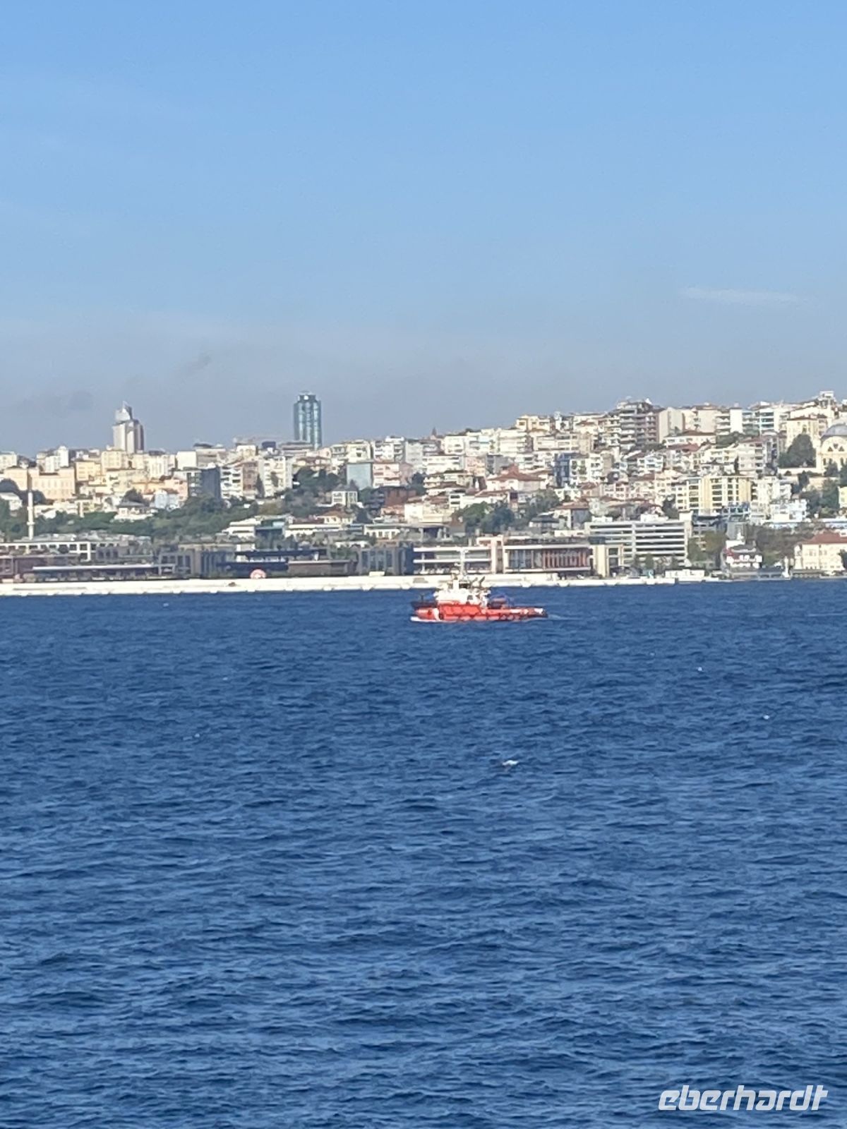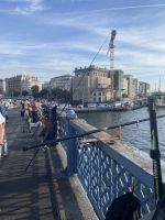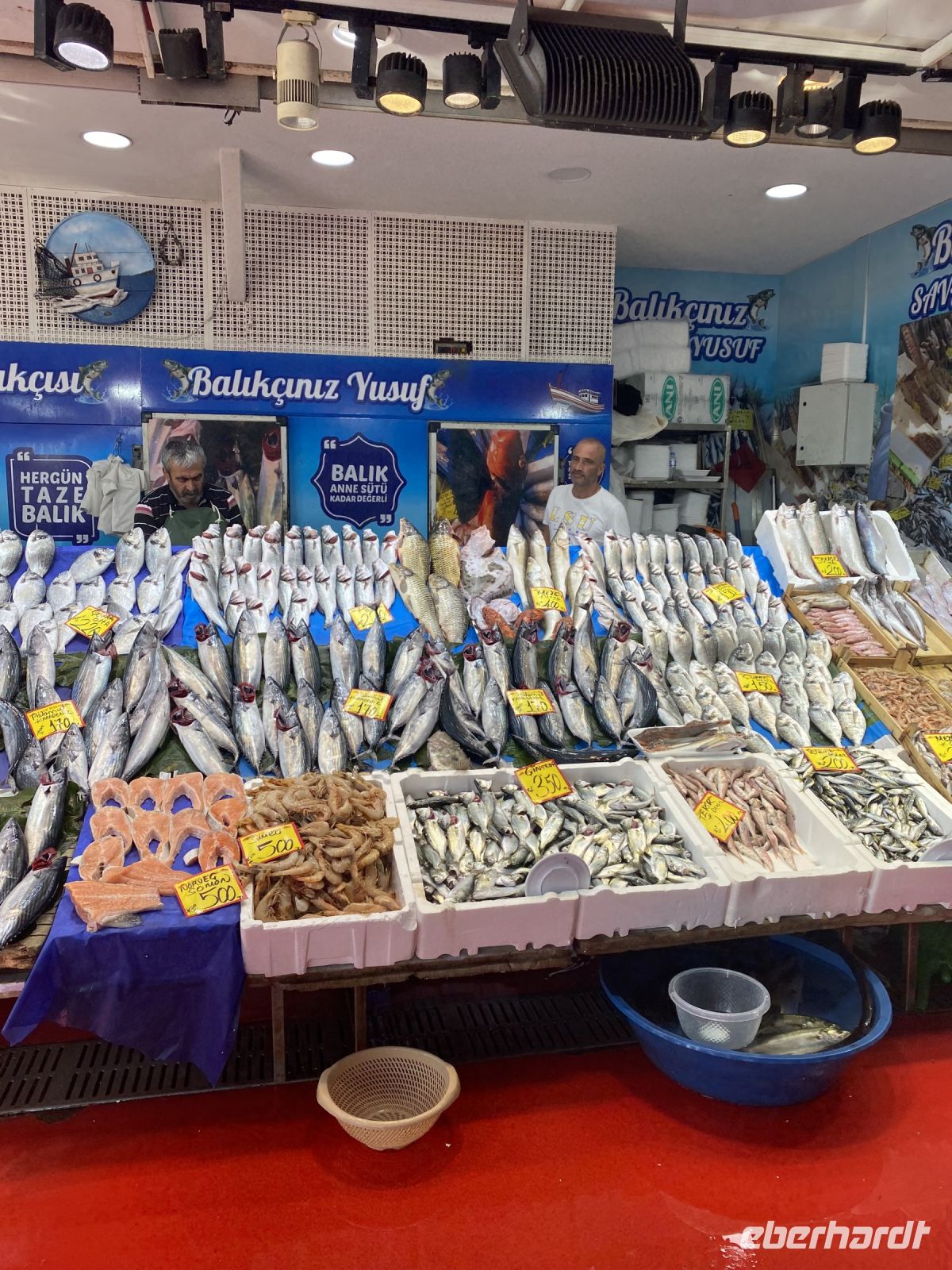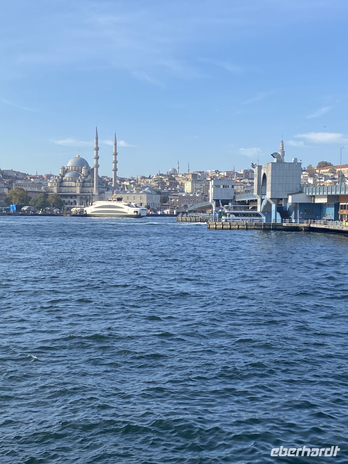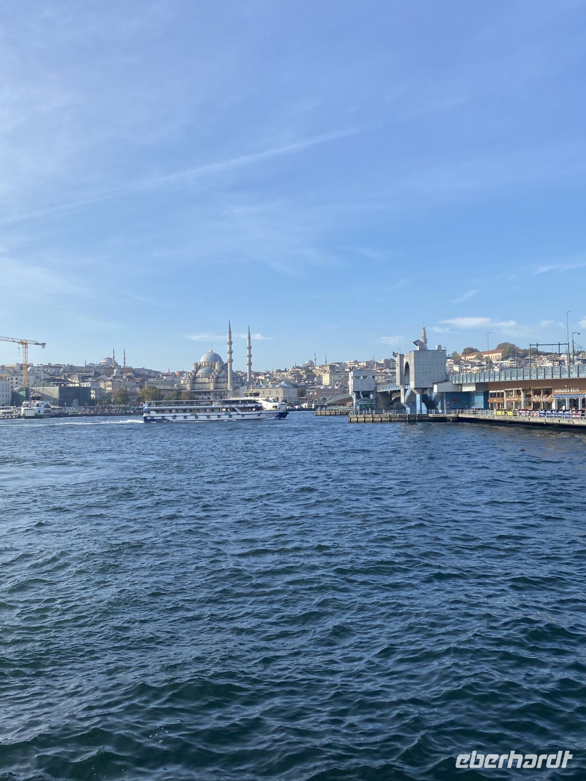 Nachdem uns die Fähre zurück zum Festland gebracht hat, machen wir einen Spaziergang über den gut bestückten Fischmarkt, der sich in der Nähe der Galatabrücke befindet, zum Anleger des Schiffs, das exklusiv für uns zur Bosporus Fahrt startet.