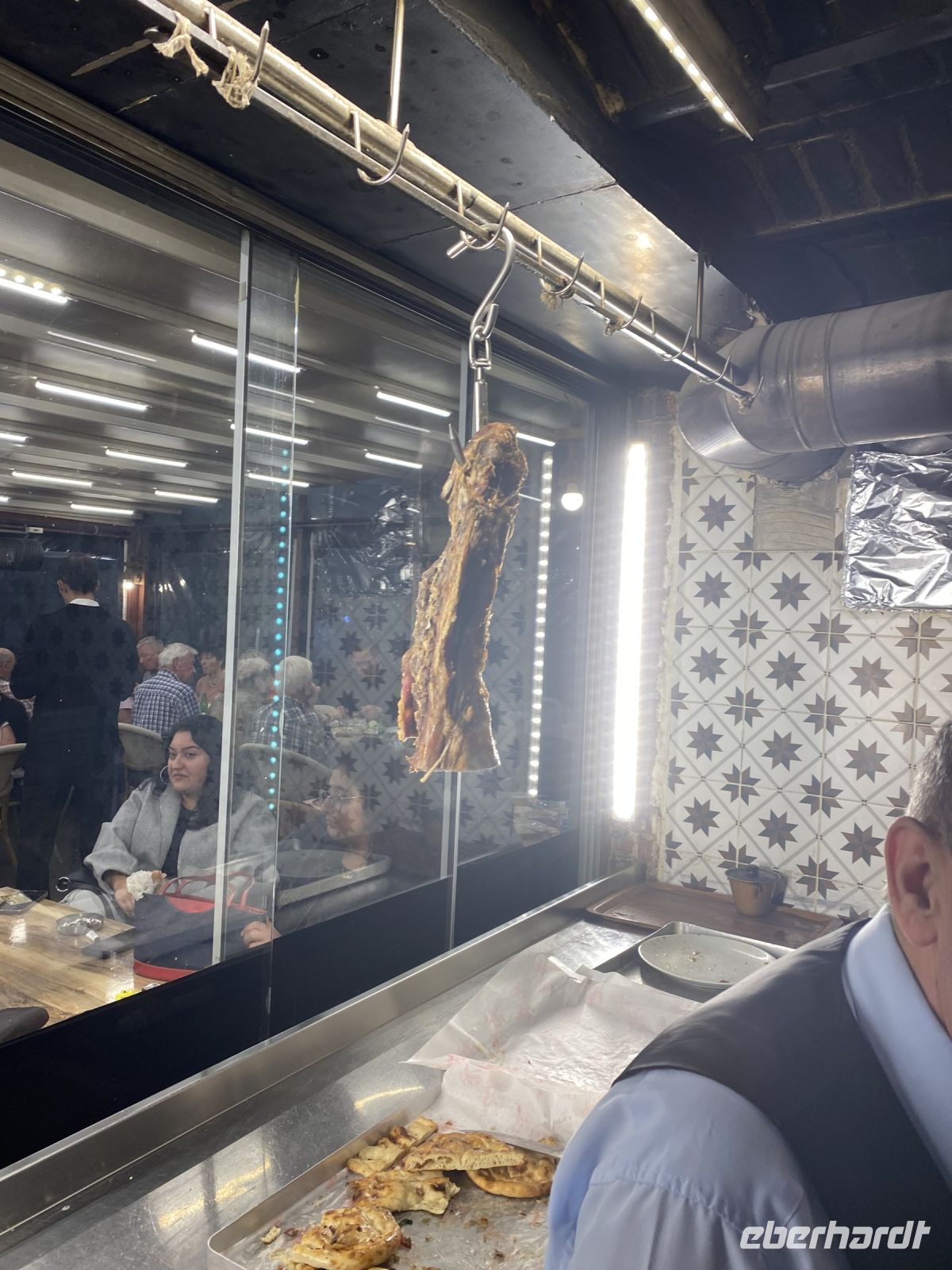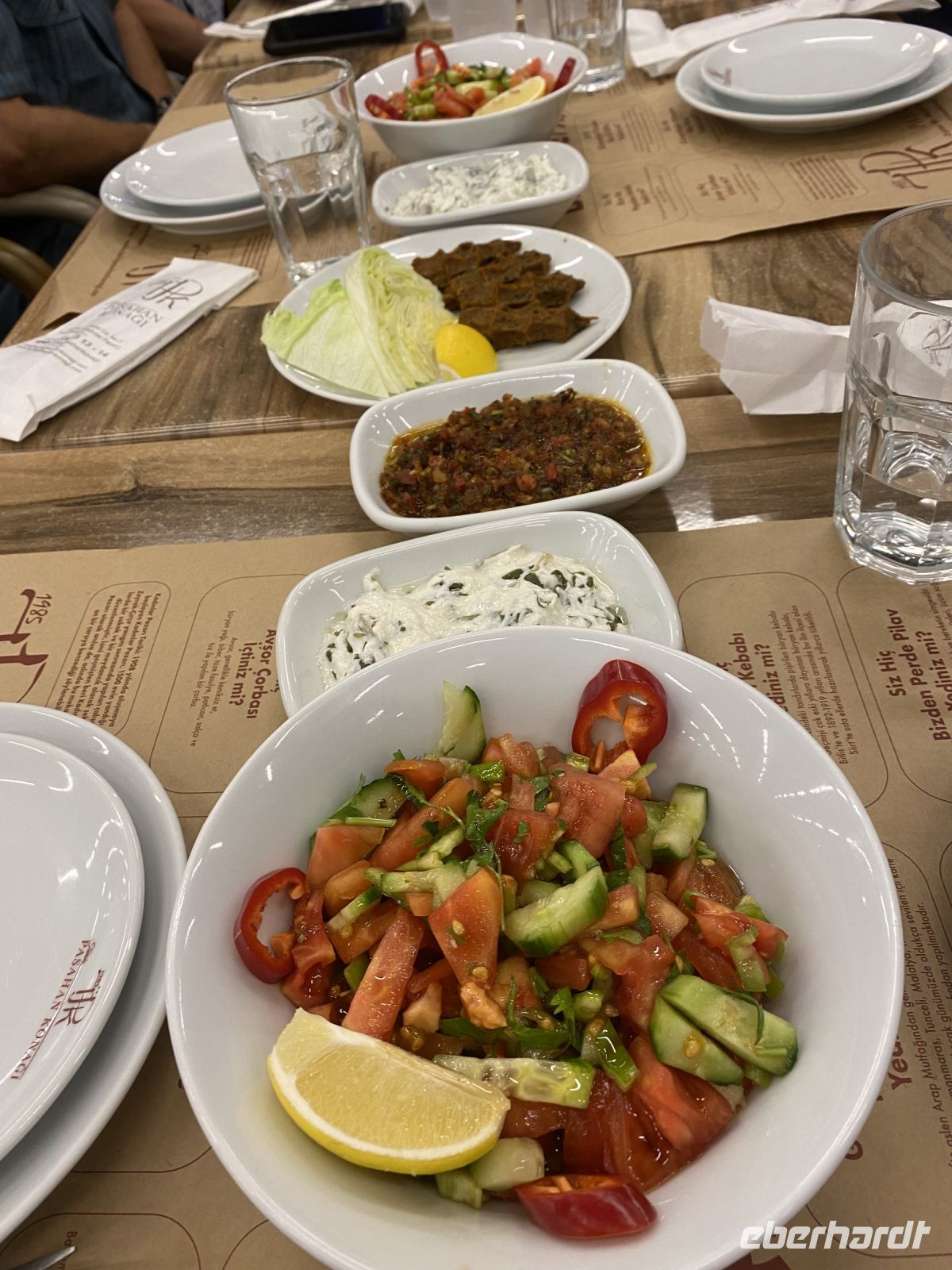 Die Sonne lacht und wir fahren vorbei am Rathaus, einem Viadukt, der Prinzenmoschee und unzähligen anderen Moscheen durch verwinkelte Straßen zum Antik Hotel in der Altstadt. Nachdem wir uns in unseren Zimmern eingerichtet haben, treffen wir uns in der Lobby und gehen mit Murat, unserem örtlichen Reiseleiter, zum Willkommensabendessen ins Restaurant. Bereits auf dem Weg dorthin kommen wir miteinander ins Gespräch und sowohl Alleinreisende als auch Paare finden gemeinsame Interessen und erste Reisefreundschaften bahnen sich an. Das Restaurant Pasahan Konagi, unmittelbar am alten Aquädukt gelegen, bietet uns einen Einblick in die türkische Küche, verschiedene Vorspeisen stehen bereits auf den Tischen, nachdem wir mit Getränken versorgt sind wird eine Linsensuppe serviert und darauf folgen Perde Pilavi – Reis im Teigmantel gebacken und Lahmacun. Als Hauptgericht dürfen wir zwischen Lamm, Hühnchen, Köfte oder Pide mit Käse wählen. Zum Abschluss noch etwas Süßes und wir gehen zurück durch den Park, belebte Straßen und Gassen zum Hotel, wo einige noch den Blick von der Dachterrasse auf die Häuser und beleuchteten Moscheen der Stadt genießen.