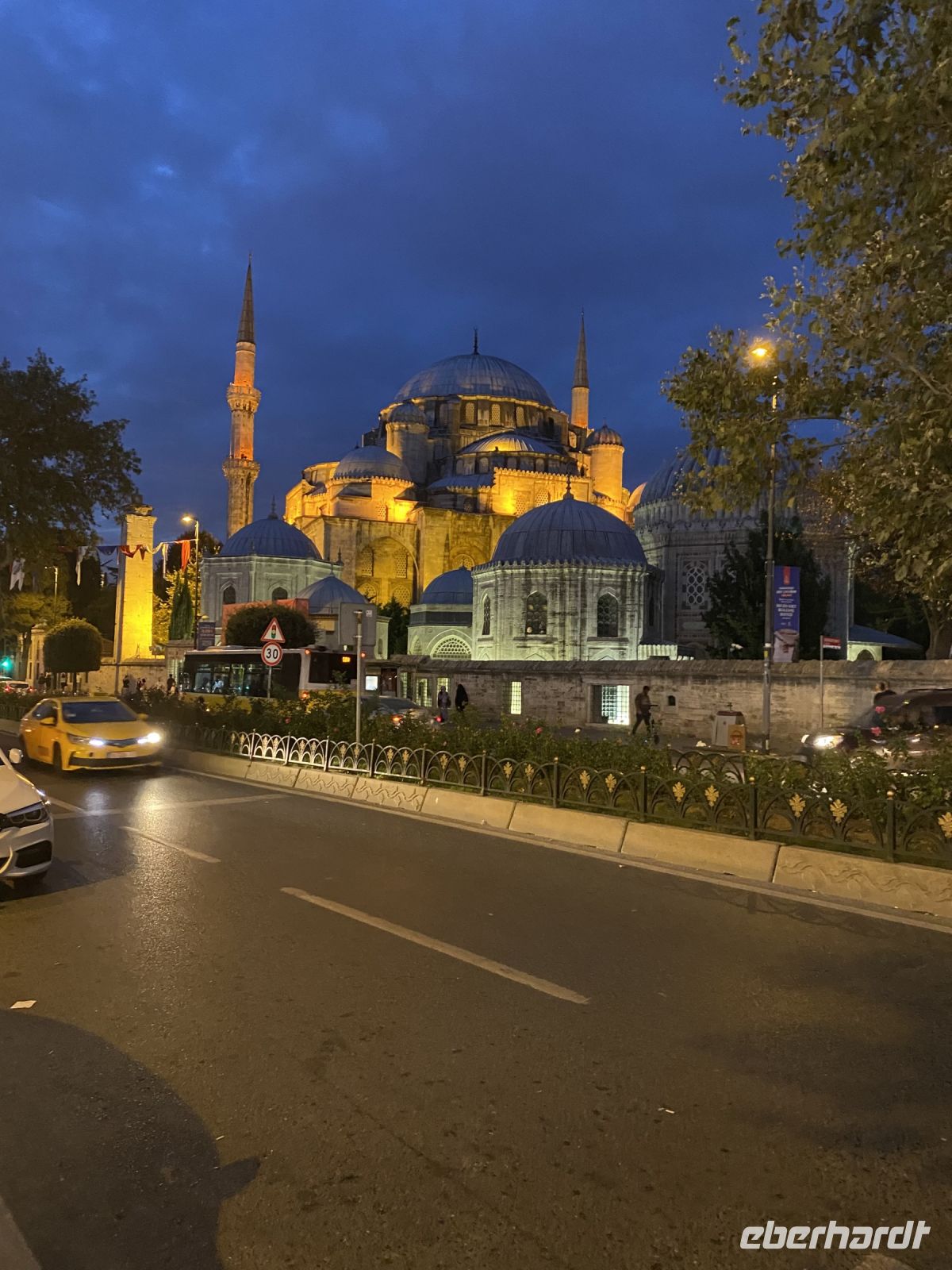 Schon vom Flugzeugfenster erhaschen wir einen Blick auf den Bosporus, das Goldene Horn, das Istanbuler Häusermeer sowie unzählige Kuppeln und Minarette. Wir landen auf dem orientalisch gestalteten Istanbul Airport. Unsere Flugzeuge kommen aus verschiedenen deutschen Städten am Nachmittag an und wir werden mit Transferbussen zum Antik Hotel in der Altstadt gebracht. Schon diese Fahrt ist sehr beindruckend. Der Verkehr fließt anders als bei uns, hier ist mehr Intuition als Regelwerk im Spiel und zur Hauptverkehrszeit am späten Nachmittag geht häufig gar nichts mehr.