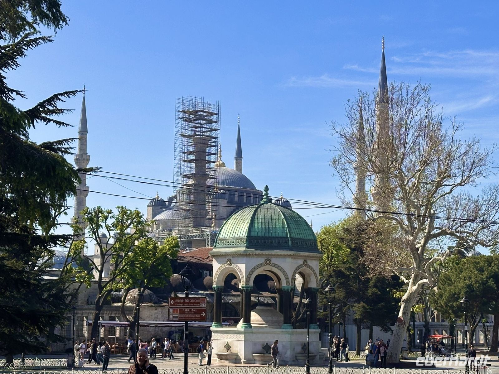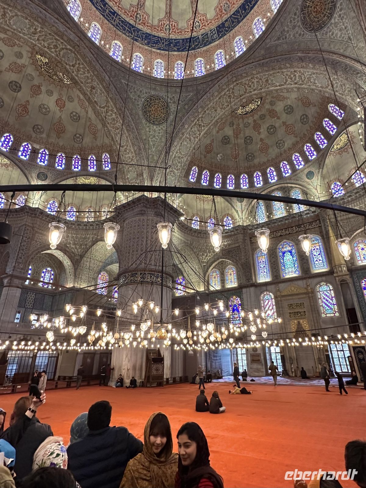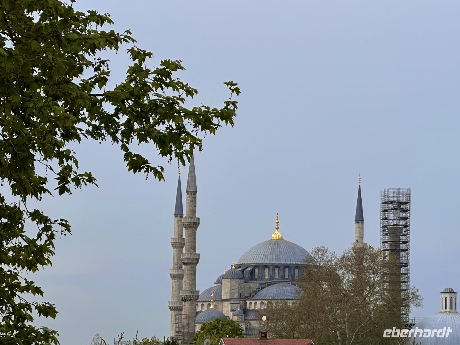 Heute erkunden wir die große Stadt. Frisch gestärkt vom reichhaltigen Frühstücksbuffet beginnt unser Spaziergang in Richtung Hagia Sophia. Unser Reiseleiter erzählt und erklärt uns auf dem Weg dahin viele interessante Dinge über die Stadt und ihre Bewohner und da wir zeitig dran sind, müssen wir auch nicht lang an dieser beliebten Touristenattraktion anstehen. In der Hagia Sophia haben wir genügend Zeit uns alles anzusehen und den interessanten Erläuterungen zu lauschen bevor wir nur ein Gebäude weiter gehen, um uns den riesigen Palastkomplex in Ruhe anzuschauen. Hier verbringen wir gleich unsere Freizeit und strömen in kleinen Grüppchen in alle Richtungen aus. Es gibt so viel zu entdecken, dass es schwer fällt sich zu entscheiden was man als erstes sehen will. Nach dem Mittag schauen wir uns gemeinsam das Hippodrom vor der Blauen Moschee an. Mit dem Deutschen Pavillon und den Resten der früheren Pferderennarena. In der Blauen Moschee erhalten wir später einen Eindruck von der imposanten Bauweise und den Abläufen in einer Moschee. Auf unseren Spaziergang zurück in Richtung unseres Hotels besuchen wir noch den Großen Basar mit seinen unzähligen Gängen und Geschäften. Ganz individuell kann dort jeder schauen und shoppen und so den Nachmittag genießen bevor wir das Abendessen über den Dächern von Istanbul genießen und unseren zweiten Reisetag gesellig ausklingen lassen.