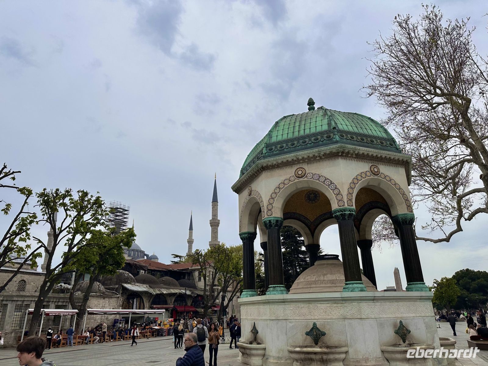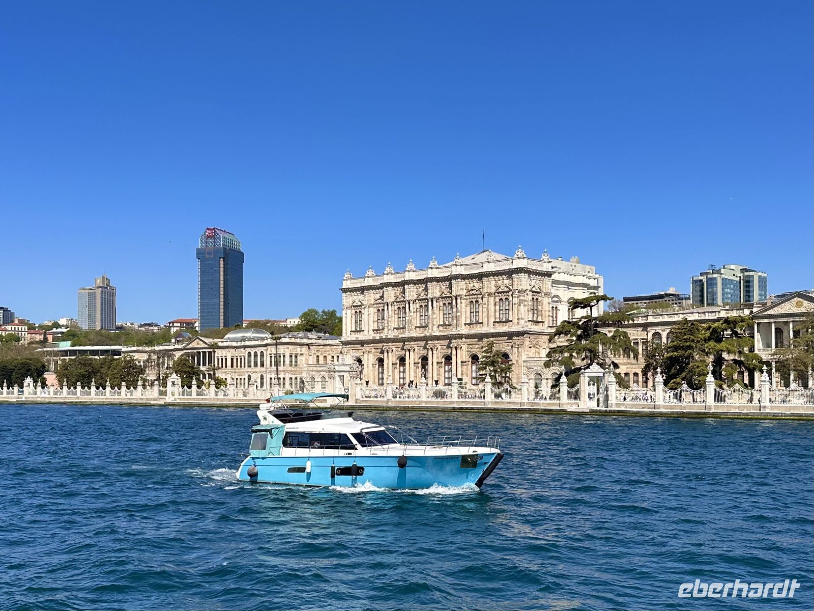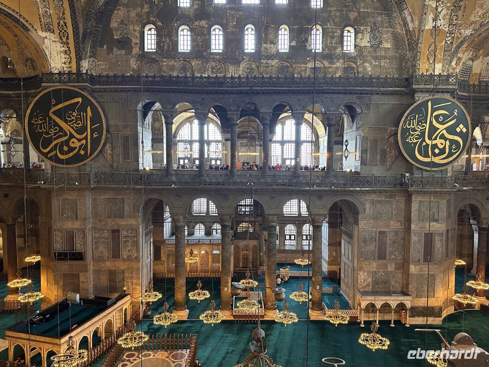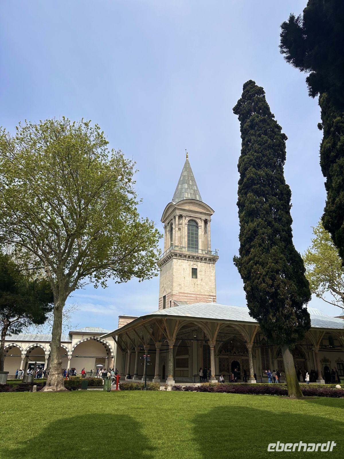 Heute erkunden wir die große Stadt. Frisch gestärkt vom reichhaltigen Frühstücksbuffet beginnt unser Spaziergang in Richtung Hagia Sophia. Unser Reiseleiter erzählt und erklärt uns auf dem Weg dahin viele interessante Dinge über die Stadt und ihre Bewohner und da wir zeitig dran sind, müssen wir auch nicht lang an dieser beliebten Touristenattraktion anstehen. In der Hagia Sophia haben wir genügend Zeit uns alles anzusehen und den interessanten Erläuterungen zu lauschen bevor wir nur ein Gebäude weiter gehen, um uns den riesigen Palastkomplex in Ruhe anzuschauen. Hier verbringen wir gleich unsere Freizeit und strömen in kleinen Grüppchen in alle Richtungen aus. Es gibt so viel zu entdecken, dass es schwer fällt sich zu entscheiden was man als erstes sehen will. Nach dem Mittag schauen wir uns gemeinsam das Hippodrom vor der Blauen Moschee an. Mit dem Deutschen Pavillon und den Resten der früheren Pferderennarena. In der Blauen Moschee erhalten wir später einen Eindruck von der imposanten Bauweise und den Abläufen in einer Moschee. Auf unseren Spaziergang zurück in Richtung unseres Hotels besuchen wir noch den Großen Basar mit seinen unzähligen Gängen und Geschäften. Ganz individuell kann dort jeder schauen und shoppen und so den Nachmittag genießen bevor wir das Abendessen über den Dächern von Istanbul genießen und unseren zweiten Reisetag gesellig ausklingen lassen.
