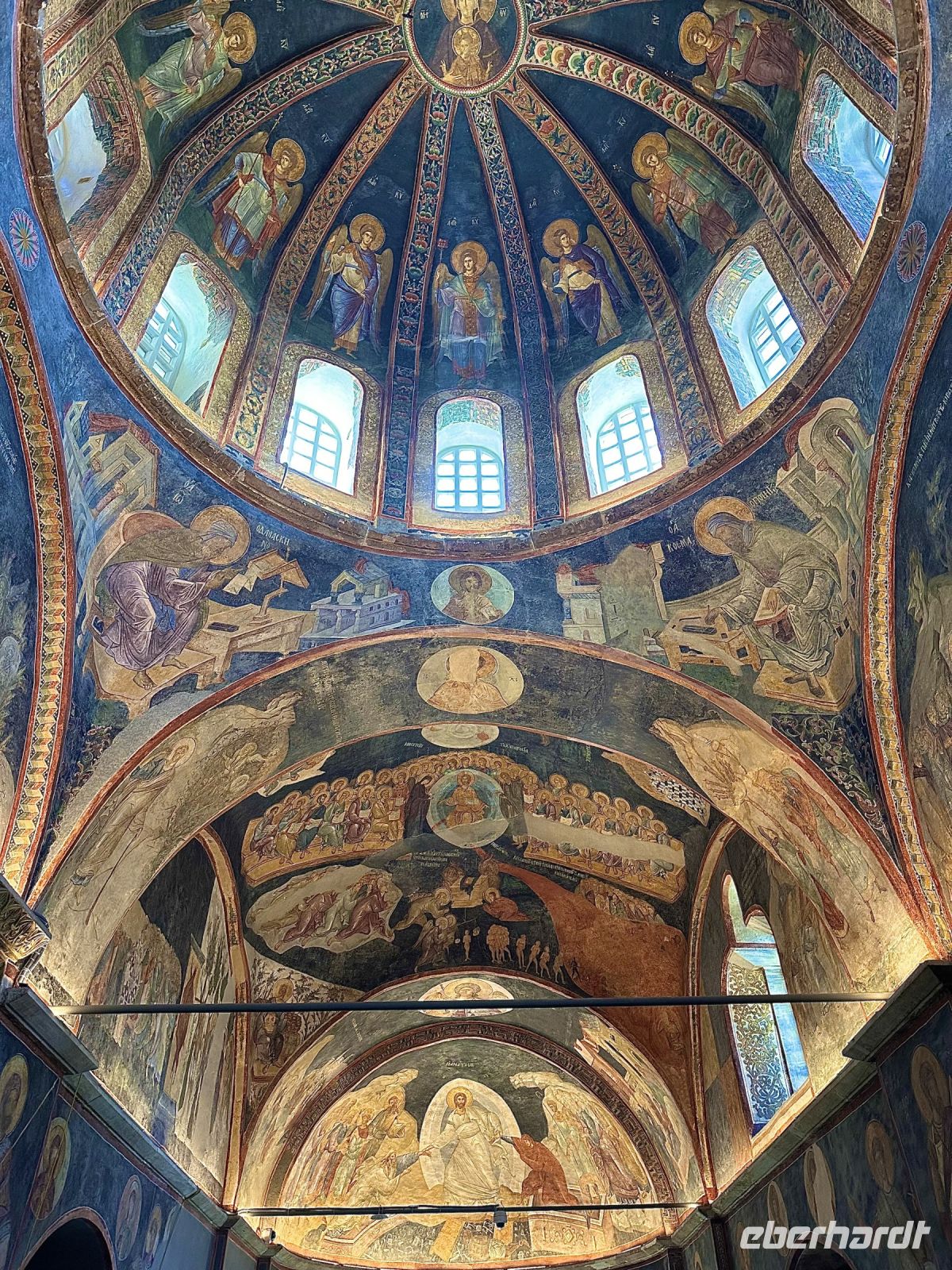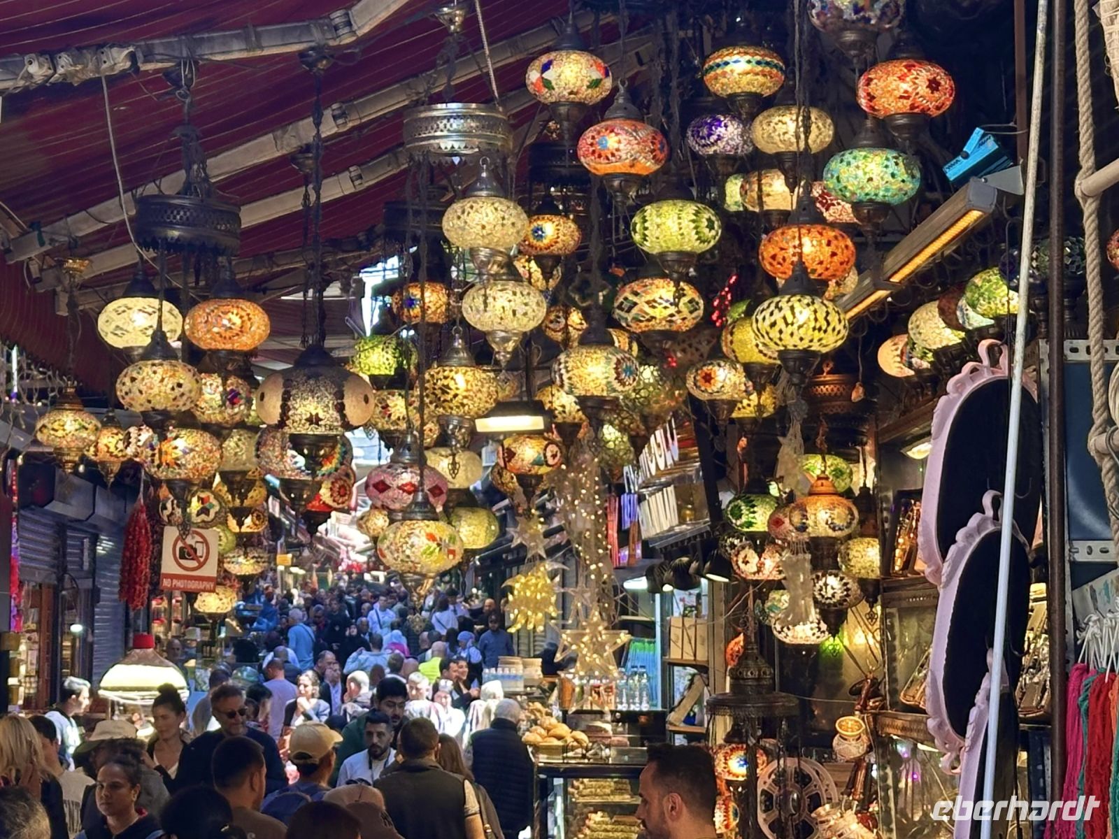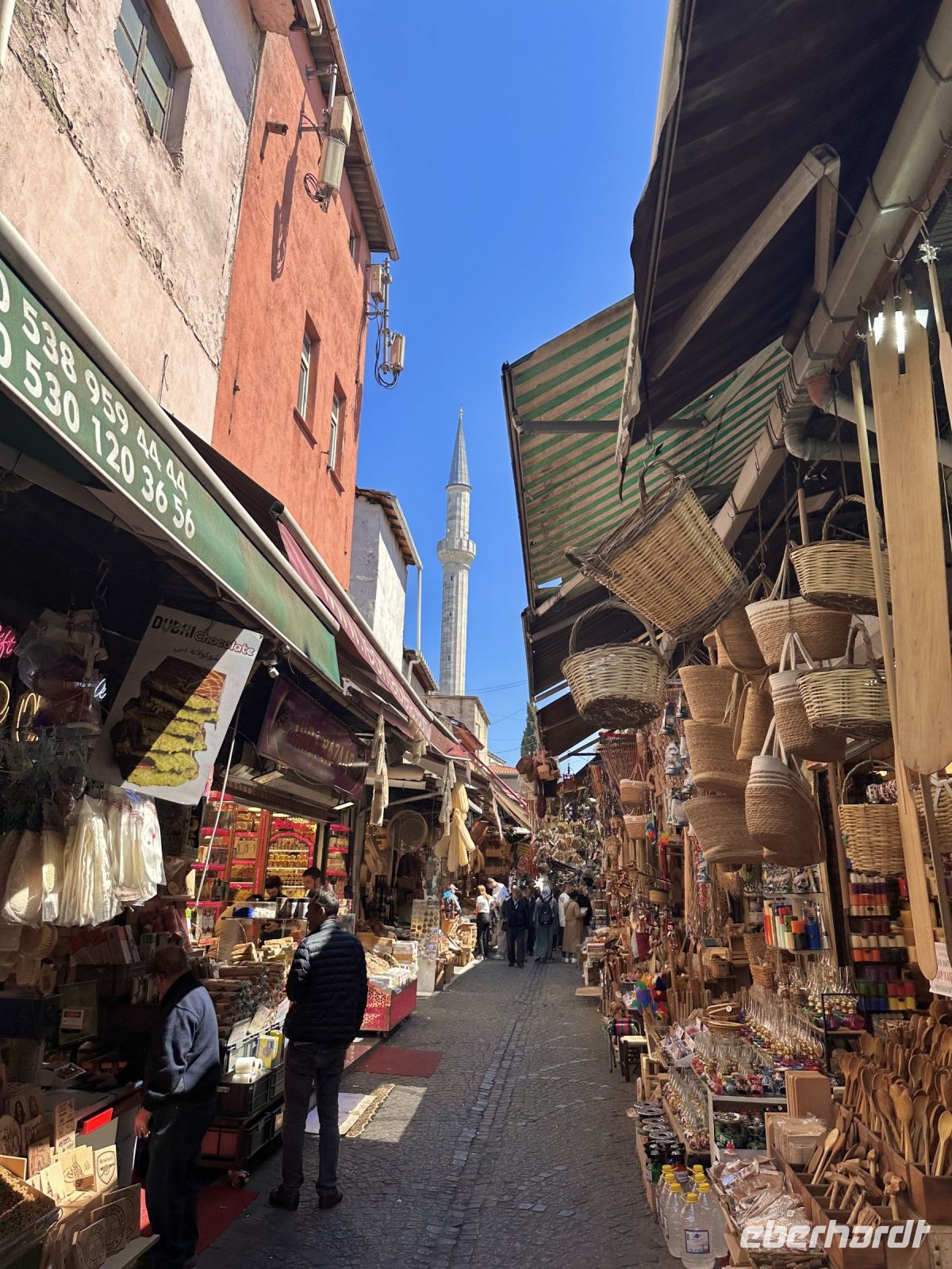 Unser 4. Reisetag beginnt mit einem Besuch der Chora die wir uns auch von innen anschauen können. Unser Reiseleiter zeigt uns die vielen kleinen Details im inneren der Chora und erzählt uns die eine oder andere Geschichte dazu. Anschließend haben wir einen Termin in einer Teppichmanufaktur vereinbart, in der uns die Kunst des Teppichknüpfens step by step erklärt und gezeigt wird. Wer wollte konnte auch selbst mal Hand anlegen und ein Gefühl dafür bekommen, wie aufwendig es ist so einen Teppich in Handarbeit zu erschaffen. Das hätten wir uns alle nicht so aufwendig vorgestellt und sehen solche Teppiche nun mit ganz anderen Augen. Später auf dem Gewürz Markt der Stadt ist wieder volles Treiben angesagt so das wir uns diesem einfach anschließen und durch den Markt und die Gassen schlendern. Hier und da mal Naschen und das ganze Treiben einfach mal bei herrlichem Wetter wirken lassen. Anschließend runden wir den erlebnisreichen Tag noch durch einen Spaziergang über den bekannten Taksim-Platz und die Einkaufsmeile Istiklal und ihre benachbarten Gassen ab, bevor wir uns zum Abendessen in ein lokales Restaurant mit türkischen Köstlichkeiten entführen lassen wo wir nun auch den letzten unserer gemeinsamen Abende gesellig ausklingen lassen können.