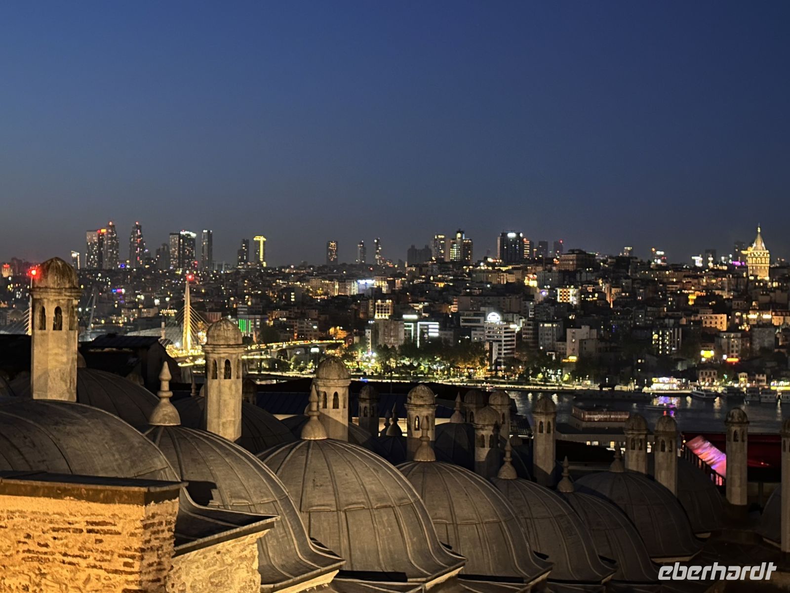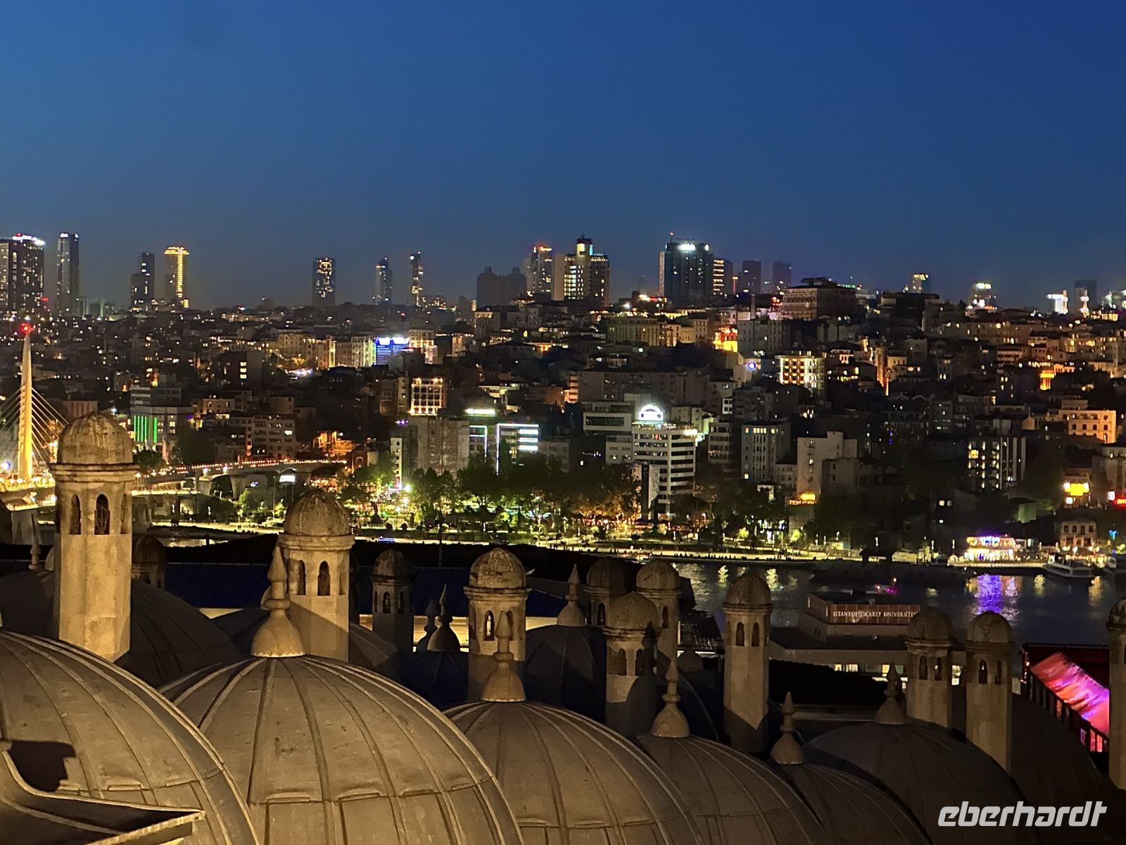 Wir starten heute in das verlängerte 1. Mai-Wochenende in die Türkische Metropole Istanbul und sind gespannt, was uns in den kommenden Tagen alles so erwartet. Nach gerade mal zweieinhalb Stunden im Flieger erreichen wir bereits Istanbul und stürzen uns rein ins Getümmel. Unser örtlicher Reiseleiter Baris nimmt uns am Flughafen in Empfang und begleitet uns in unser schönes Hotel mitten in der Altstadt. Um auf unserer kurzen kompakten Reise keine Zeit zu verlieren, starten wir gleich los zu unserem ersten Spaziergang durch die Stadt zum leckeren Abendessen bei dem uns verschiedenste türkische Köstlichkeiten präsentiert werden die wir so noch gar nicht kannten. Gut gestärkt spazieren wir am Abend durch das beleuchtete Istanbul zurück zu unserem Hotel und bekommen so schon einen ersten Eindruck von dem, was uns in den kommenden Tagen alles so erwartet.