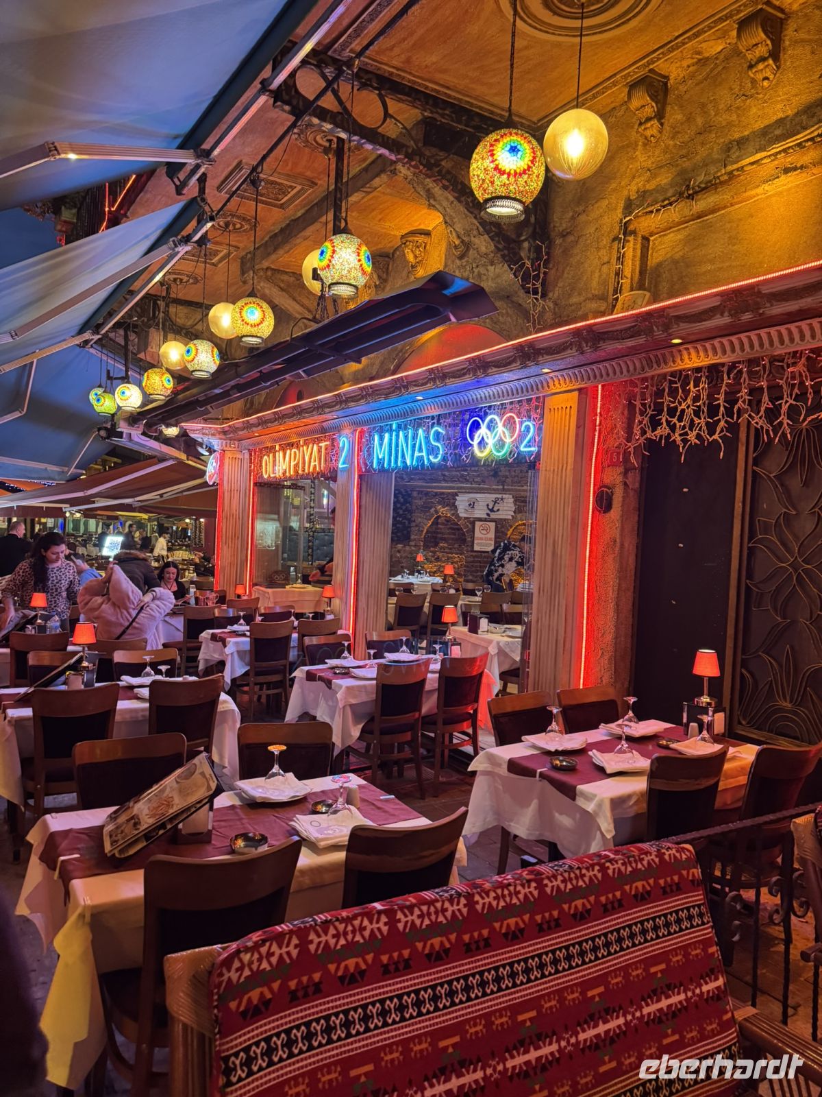 Nach einer erfrischenden Pause im Hotel geht es direkt zu unserem Willkommensabendessen. Nach einem kurzen Fußweg durch verwinkelte Gassen, erreichen wir das Restaurant, welches an einem idyllischen kleinen Platz liegt. Umgeben von warmen Lichtern und einer gemütlichen Atmosphäre, genießen wir unser erstes typisch türkisches Abendessen und tauschen uns über die uns bevorstehenden Programmpunkte aus.
