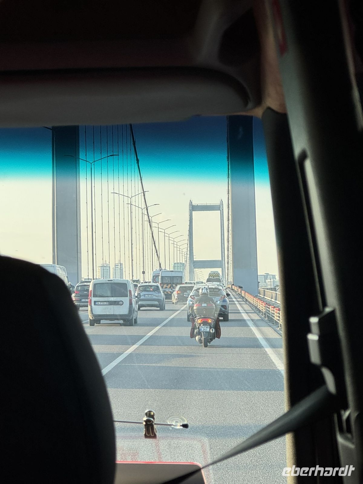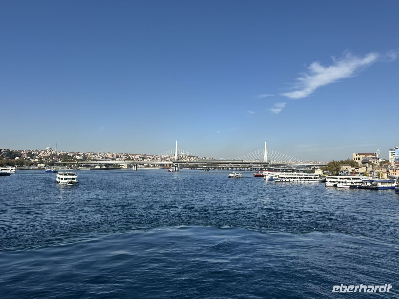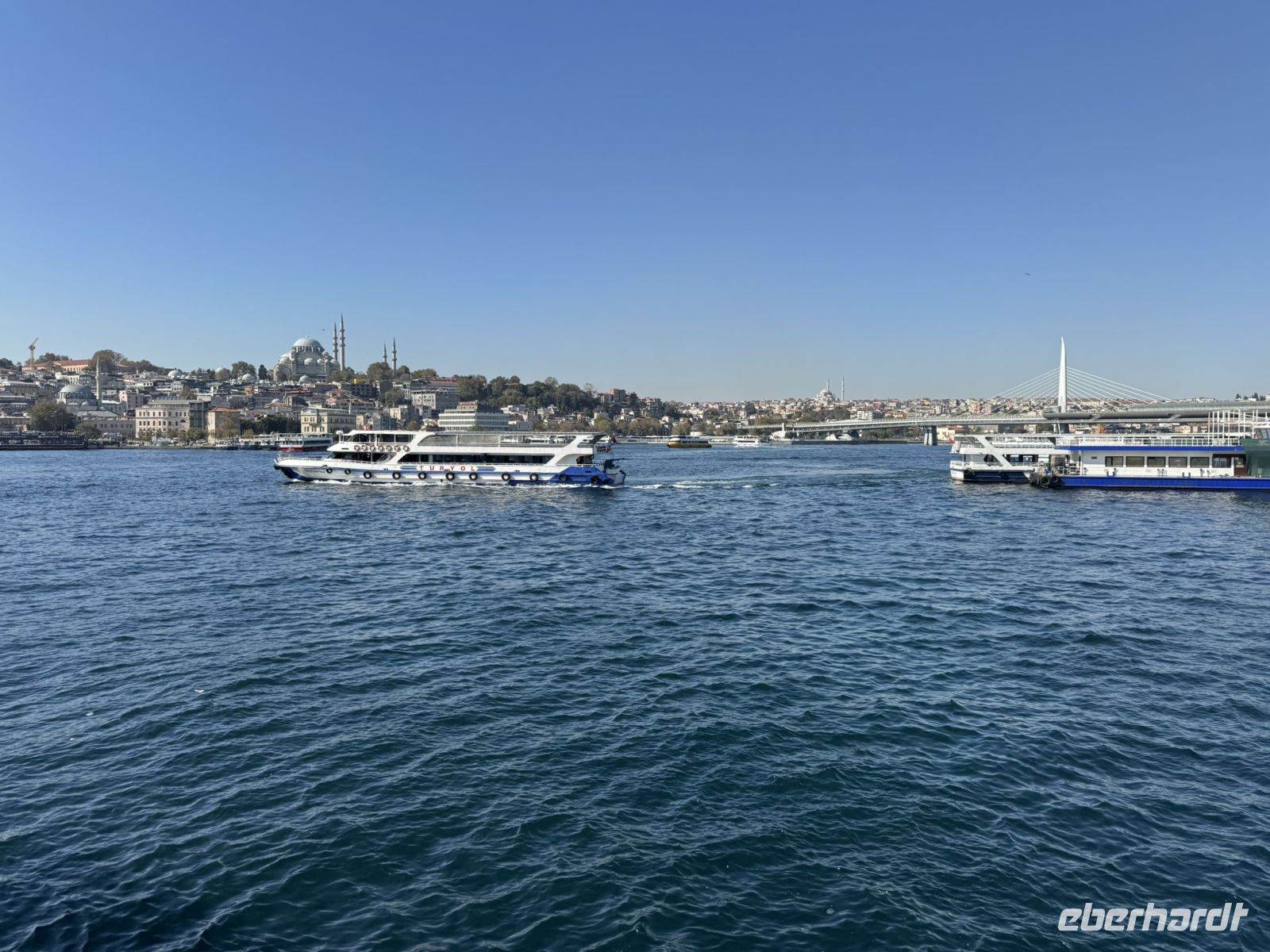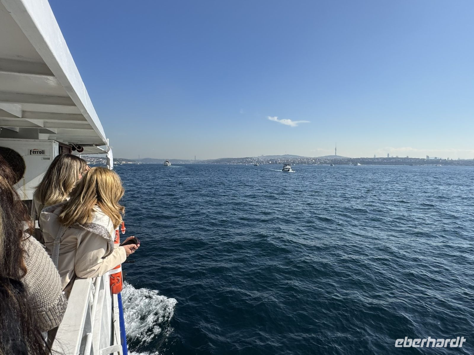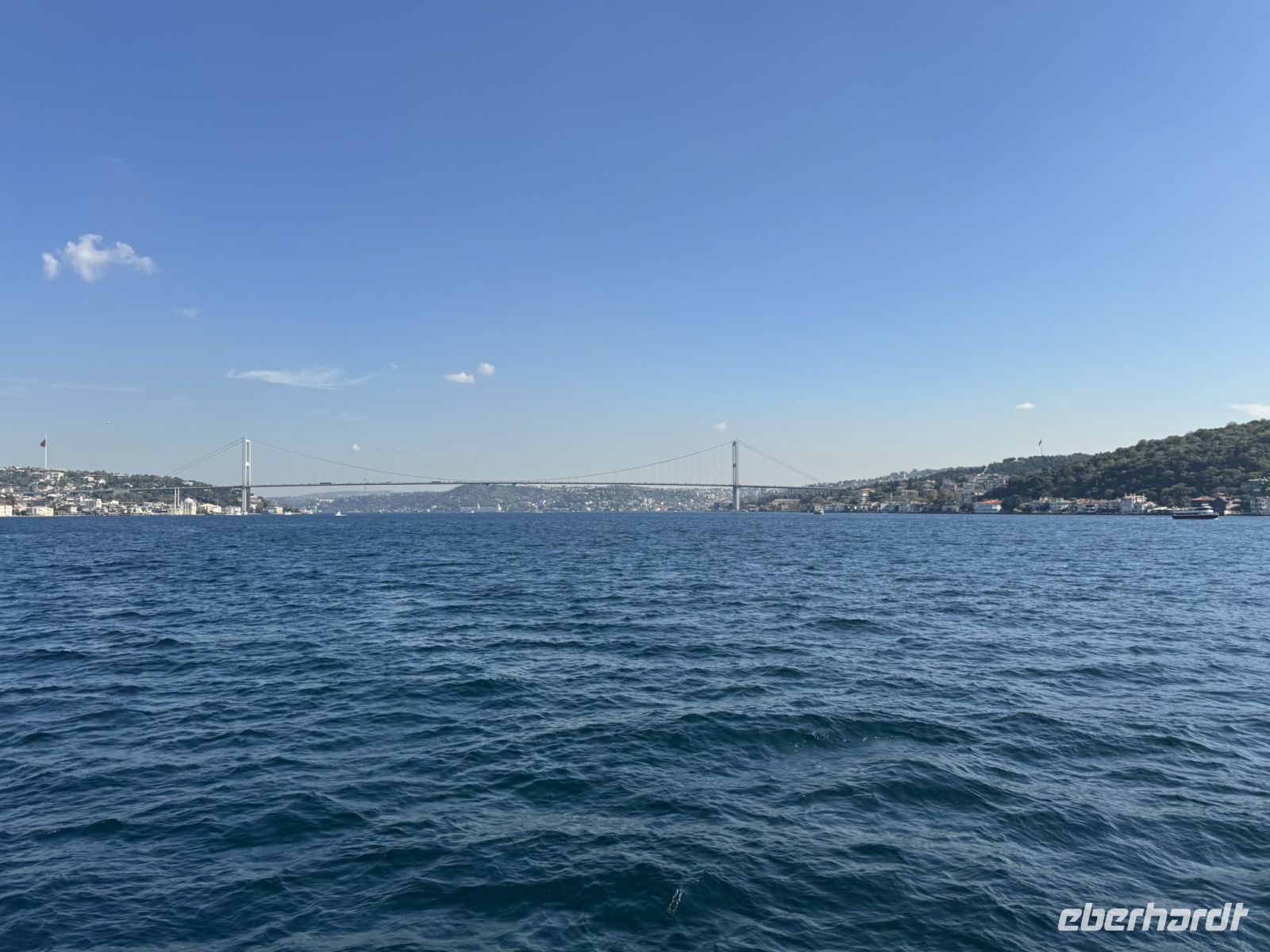 Besonders beeindruckend ist die Fahrt unter der majestätischen Bosporus-Brücke hindurch, die Europa und Asien miteinander verbindet – ein Symbol der einzigartigen Lage Istanbuls. Während wir die sanfte Brise genießen und die Aussicht bewundern, spüren wir die besondere Atmosphäre dieses Ortes, an dem zwei Kontinente aufeinandertreffen.