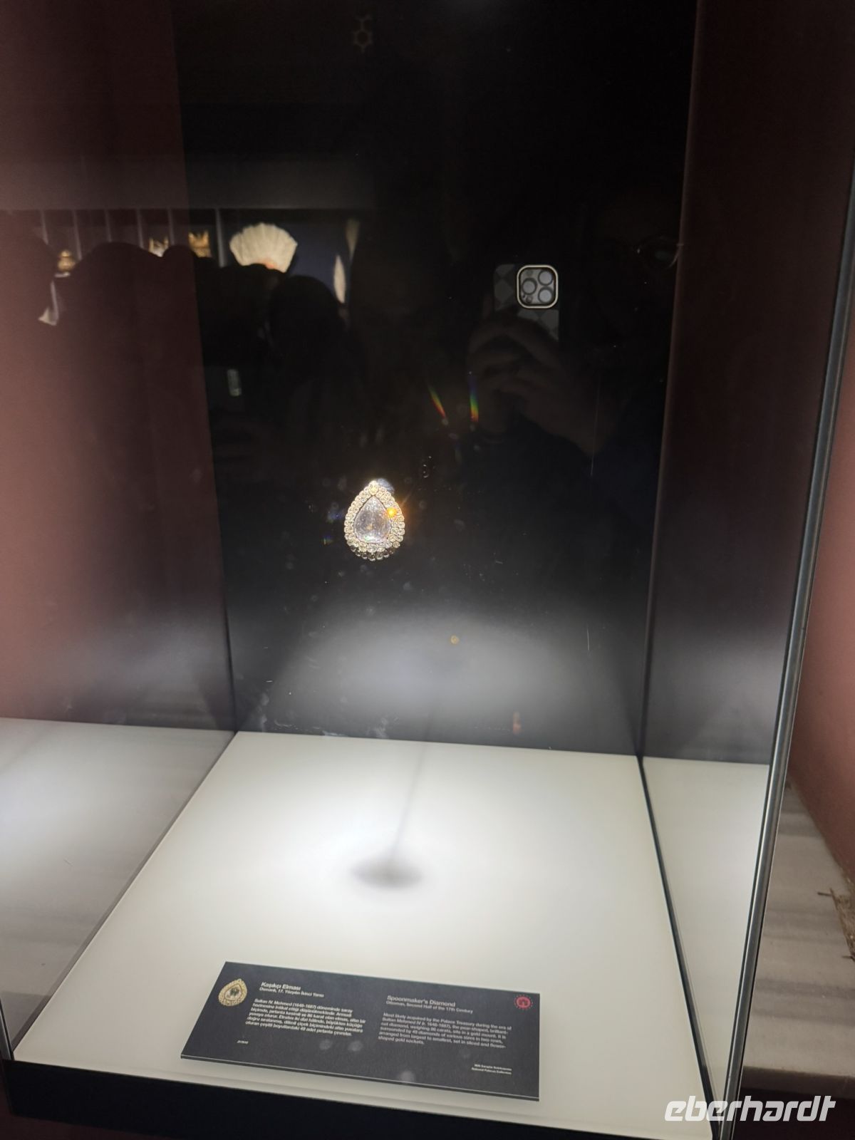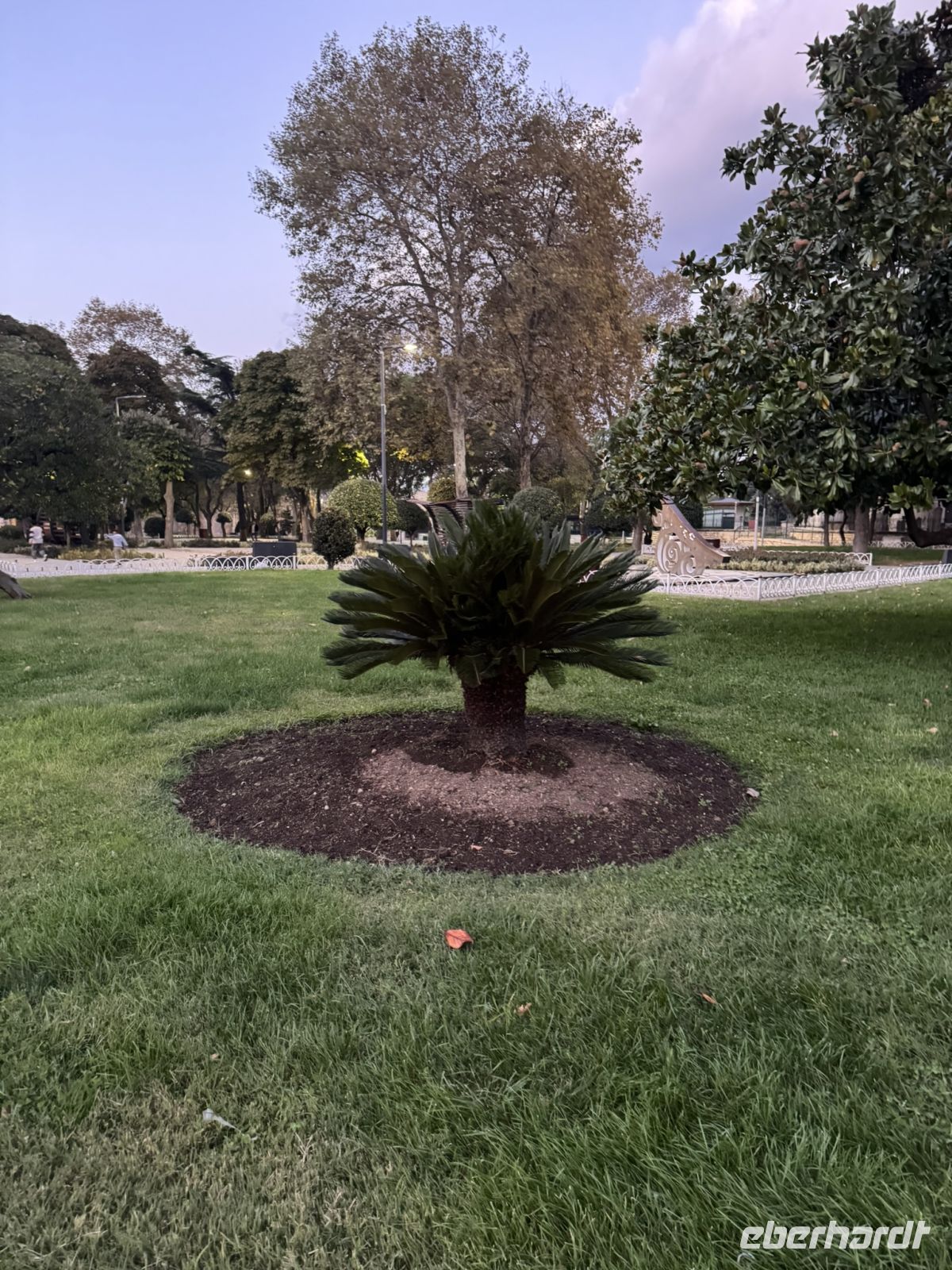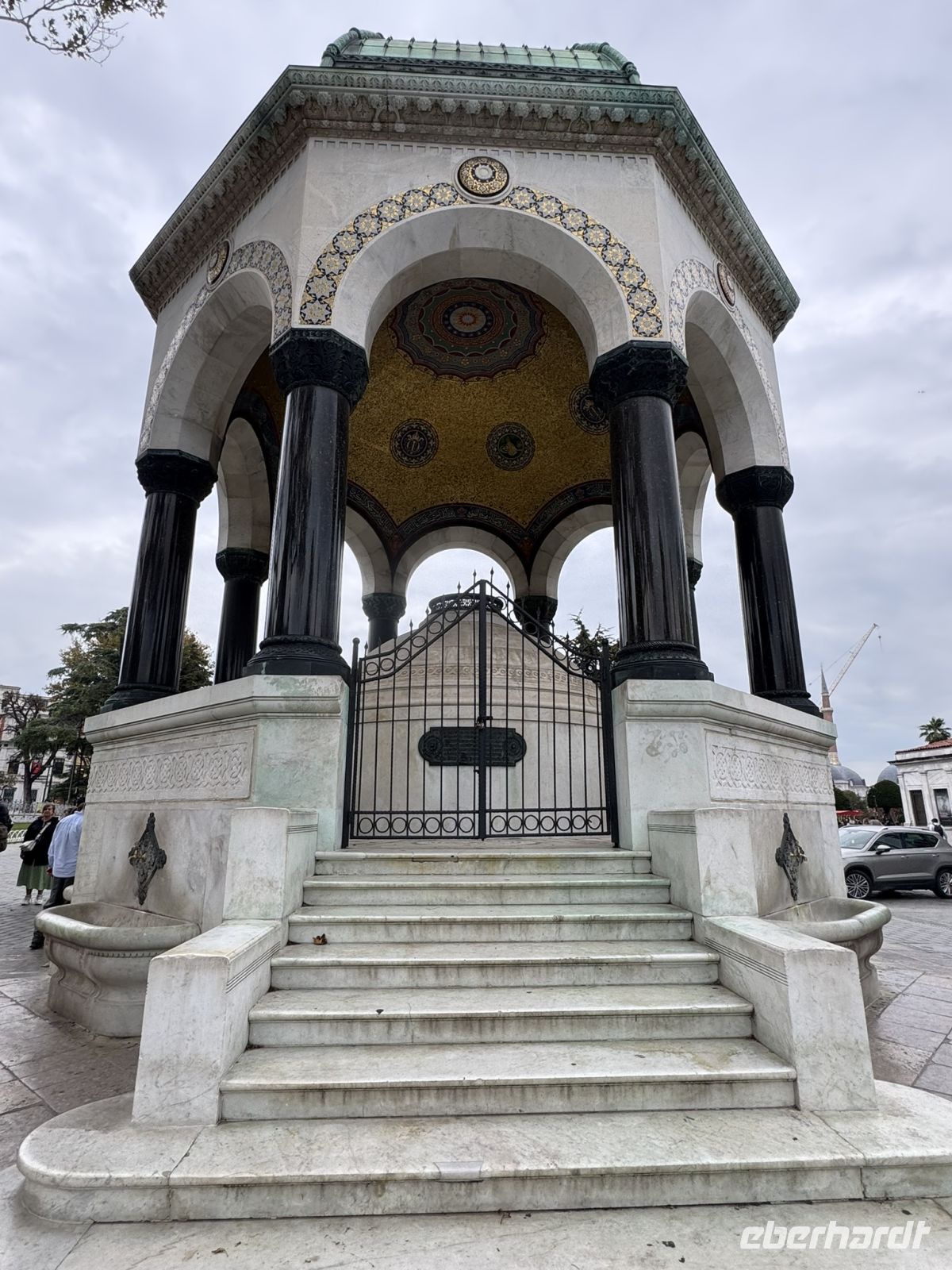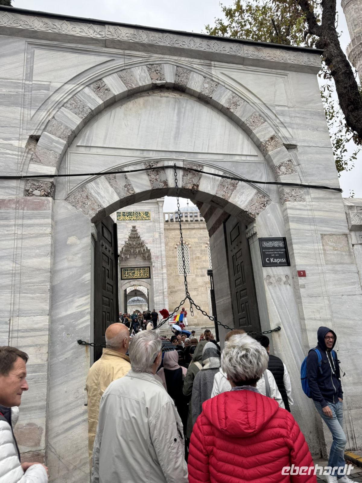 Unser nächstes Ziel ist der Topkapi-Palast, der einstige Sitz der osmanischen Sultane. Trotz des Wetters tauchen wir tief in die faszinierende Geschichte des osmanischen Reiches ein. Wir spazieren durch die weitläufigen Höfe, vorbei an prunkvollen Gebäuden, und bestaunen kunstvoll verzierte Schatzkammern mit wertvollen Ausstellungsstücken wie Juwelen, Waffen und religiösen Reliquien.