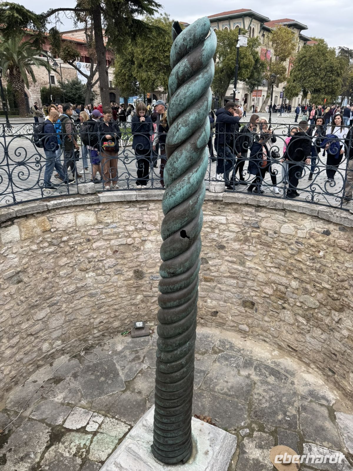 Wir beginnen unseren Tag mit einem Spaziergang zur Konstantinsäule (Çemberlitaş), einem beeindruckenden Relikt aus der römischen Kaiserzeit. Die Säule wurde im Jahr 330 n. Chr. zur Gründung von Konstantinopel errichtet und war einst von einer Statue Kaiser Konstantins gekrönt. Heute erinnert sie als wuchtiges Monument mitten im modernen Stadtbild an die Anfänge der Stadt als Hauptstadt des Oströmischen Reiches.