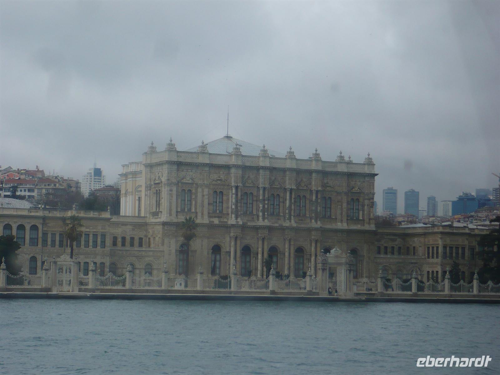 Gestärkt vom Frühstück fuhren wir mit dem Reisebus vorbei am großen Fussballstadion und dem Dolmabahçe-Palast über den Bosporus in den asiatischen Teil von Istanbul. Im Stadtteil Üskudar hielten wir gegenüber des Leanderturms an um den Blick auf die Altstadt Istanbuls mit der Hagia Sophia und der Blauen Moschee zu genießen. Über die mit Edelboutiquen und Handelsgeschäften gesäumte Bagdad Straße, ging es zurück in den europäischen Teil der Stadt. Für kleine Mitbringsel für sich oder die Liebsten Zuhause hat der Gewürzbasar in Istanbul so einiges zu bieten. Wie der Name schon verrät wurden wir beim Gang durch die Halle von bunten und wohlduftenden Gewürzen umgeben. In den kleinen Ständen wurde uns Türkischer Honig in allen Varianten und süßer Granatapfeltee zum Probieren angeboten. Bunte Tücher, schillernder Schmuck, feinster Tee, aromatische Gewürze, Lederwaren - hier haben wir alle etwas Schönes gefunden. Vollgepackt mit tollen Sachen ging es aus dem Gewürzmarkt auf das eigens für uns angemietete Boot. Zu der fast 2-stündigen Bootsfahrt auf dem Bosporus wurden wir mit einem Getränk begrüßt. Trotz des grauen Wetters hatten wir vom Boot aus eine gute Sicht auf die Ufer des europäischen und asiatischen Teil Istanbuls. Nicht nur Atatürks Yacht und pompöse Paläste waren Höhepunkte dieser Fahrt, sondern auch die zahlreichen imposanten Villen am Bosporus. Unsere Reiseleiter gaben uns Einblicke in den historischen Hintergrund der drei umliegenden Gewässer und gaben Interessantes über die Bauwerke entlang des Ufers preis. Nach den Eindrücken aus einer anderen Perspektive, vom Wasser aus, gingen wir nahe der Mündung des Bosporus ins Schwarze Meer zu Mittag essen. Bei Austern, Fisch und anderen Leckereien ließen wir das Gesehene noch einmal auf uns wirken. Nach dem Essen besuchten wir einen Höhepunkt der Modernen Architektur, das Kaufhaus Canyon. Wieder im Hotel angelangt nutzen einige Gäste die freie Zeit, um sich im Hotelpool zu entspannen oder besuchten die naheliegende Istiklal Straße, um einen Fahrt auf der historischen Tünelbahn zu wagen. Den Abend verbrachten wir mit einigen Gästen in einem der bedeutendsten Bauwerken der Stadt, dem Galataturm. Nur wenige Schritte von unserem Hotel entfernt steht der alte Christusturm, indem man heute einen volkstümlichen Abend verbringen kann. Das üppige Abendessen wurde uns vor einem traumhaften Panoramablick serviert. Bereits beim Nachtisch betraten Tänzerinnen und ein Sultan in schillernden Kostümen die Bühne. Bei einer Show mit Bauchtanz, traditionellen Tänzen und Unterhaltungsmusik ließen wir den erlebnisreichen Tag ausklingen.
