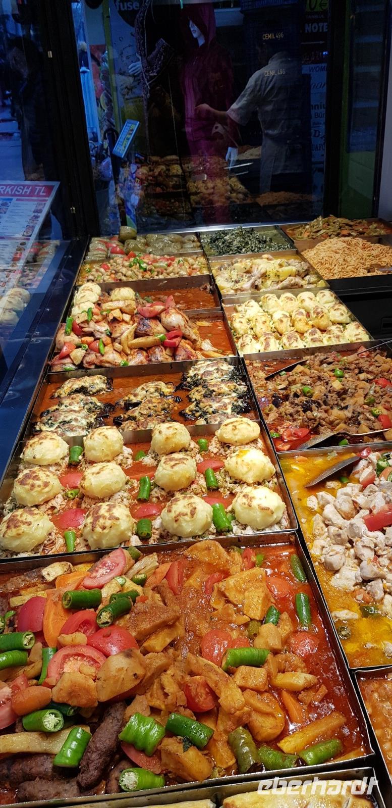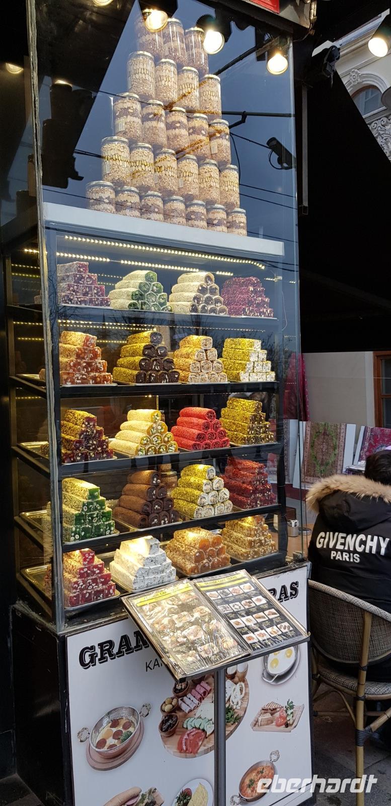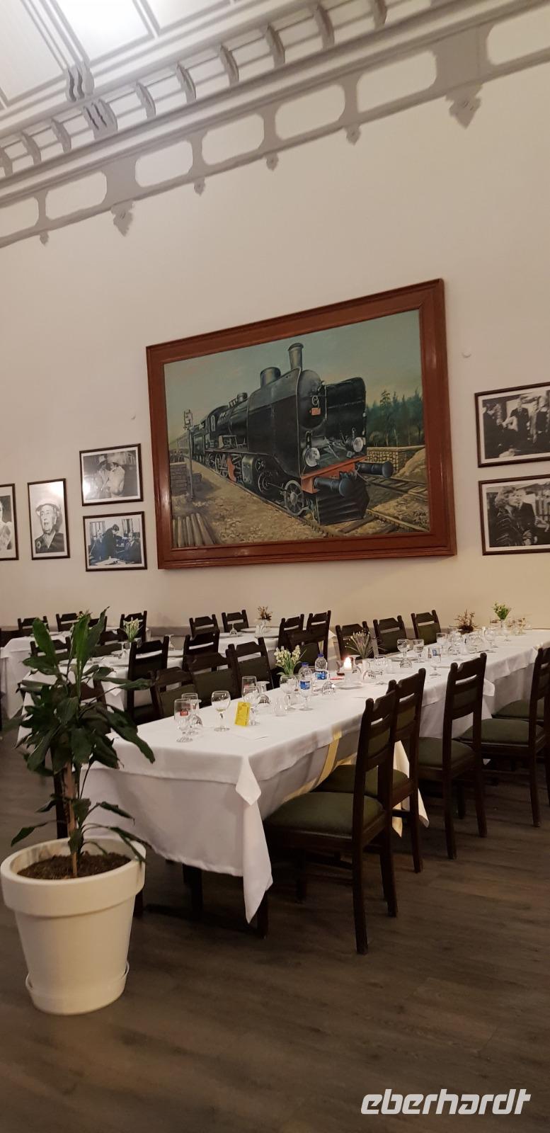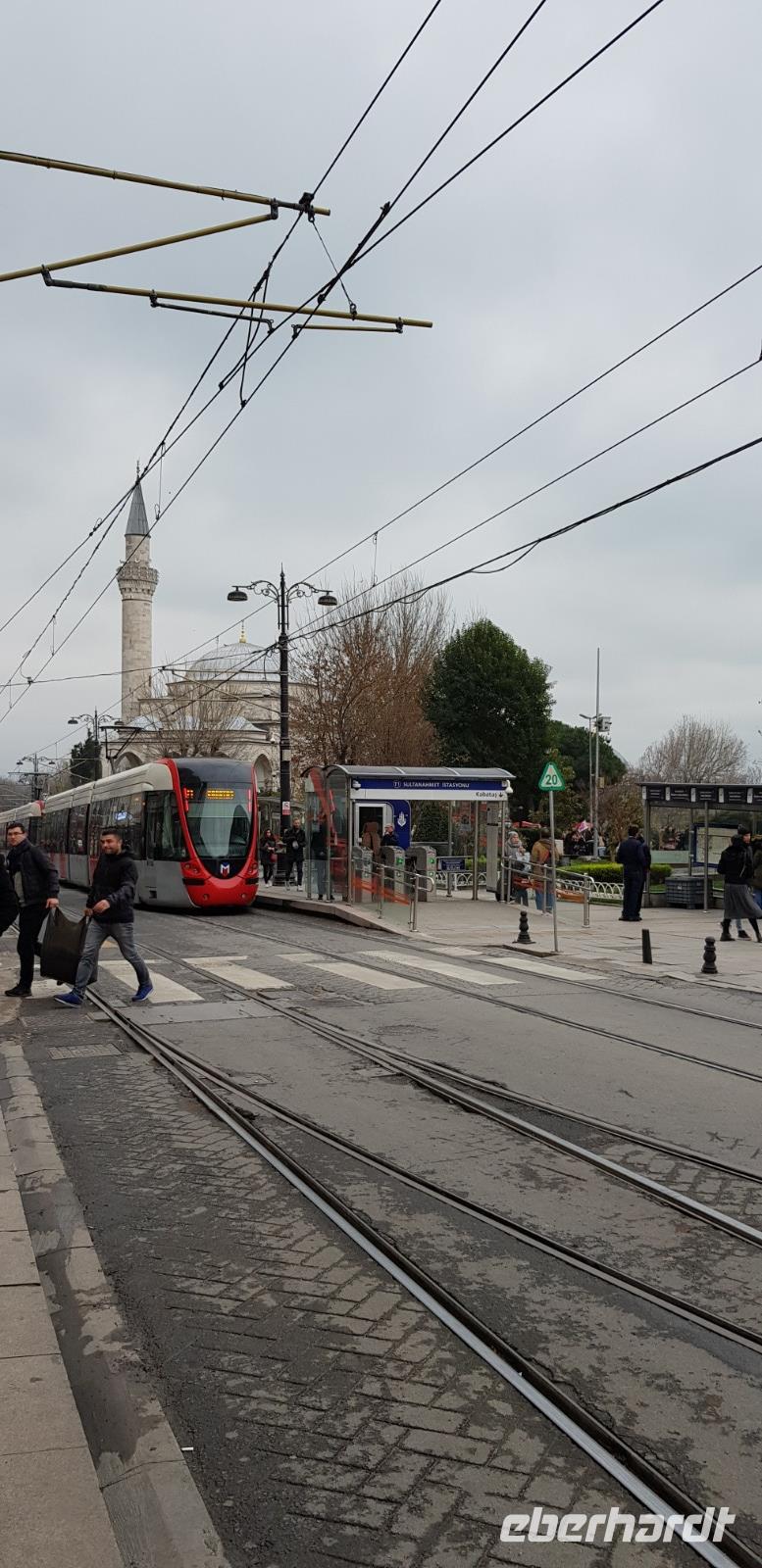 Nun haben wir unser Hotel erreicht. Es befindet sich mitten in der Altstadt, sehr zentral. Wir checken ein, beziehen die Zimmer und die Hälfte der Gruppe trifft sich anschließend gleich wieder in der Lobby, um gemeinsam mit Serdar zum Abendessen zu gehen. Die anderen Gäste kommen nicht mit, sie gehen individuell zum Abendessen. Bei der Reise ist nur am Silvestertag das Abendessen inkludiert. Wir fahren mit der Straßenbahn. Die Haltestelle befindet sich gleich um die Ecke. An der zweiten Haltestelle steigen wir wieder aus. Hier ist der Bahnhof Sirkeci, auf dem der Luxuszug "Orient-Express", der erstmals Ende des 19. Jh. von Paris nach Konstantinopel fuhr, endete. Der Bahnhof wurde umgebaut. Heute befindet sich im ehemaligen Wartesaal ein Restaurant, in das wir einkehren und die Bahnhofshalle mit dem Fahrkartenschalter wurde restauriert und kann besichtigt werden. Wir genießen ein fünfgängiges Menü mit typischen nationalen Speisen und lernen uns schon ein wenig kennen. Dann fahren wir mit der Straßenbahn wieder zurück zum Hotel. Alle fallen müde in ihre Betten.