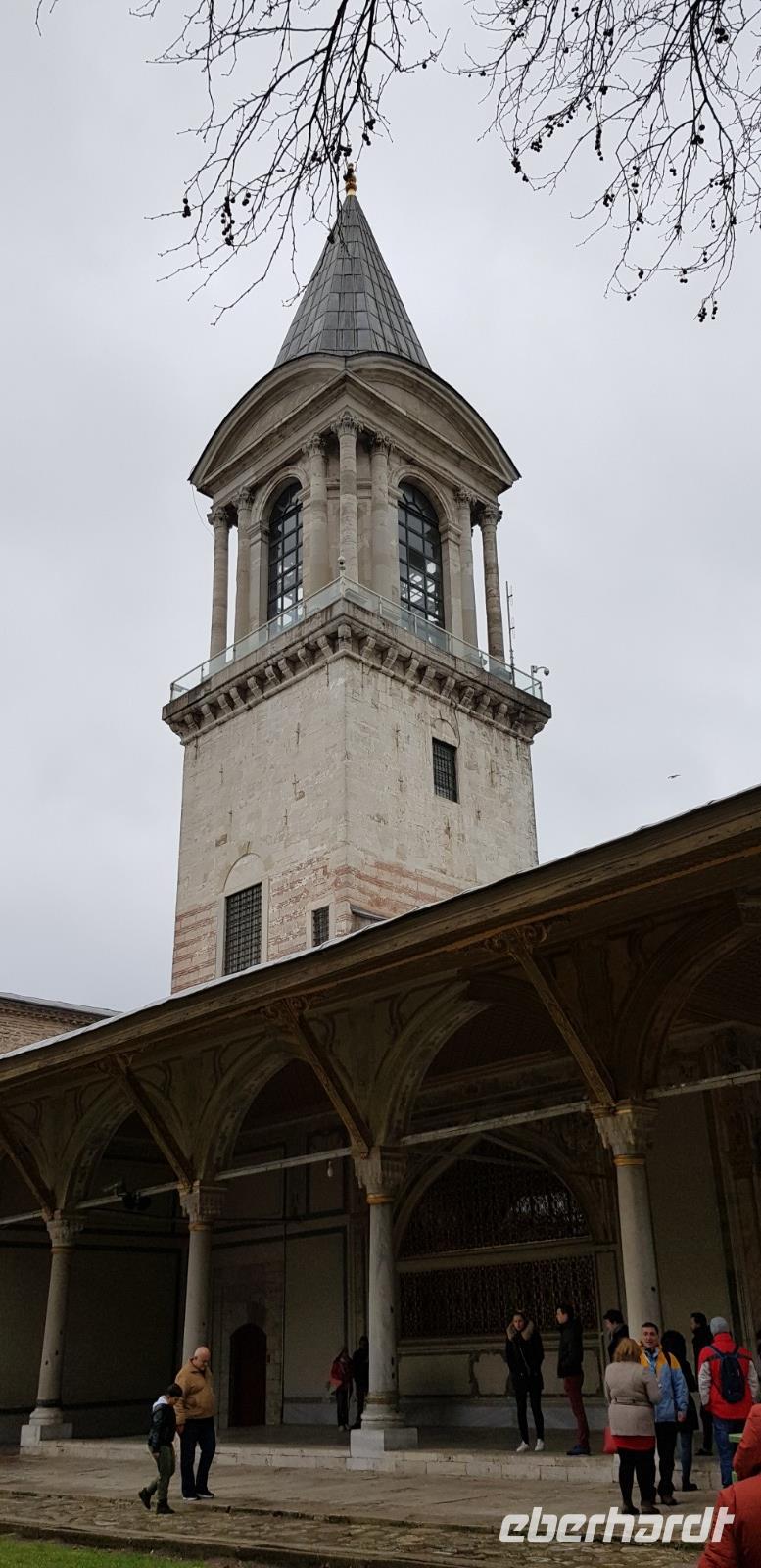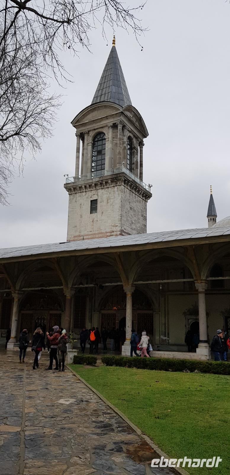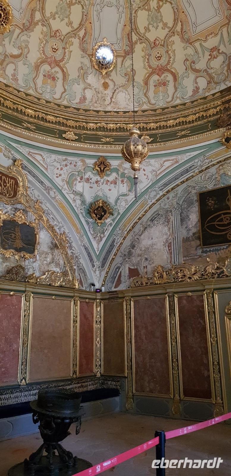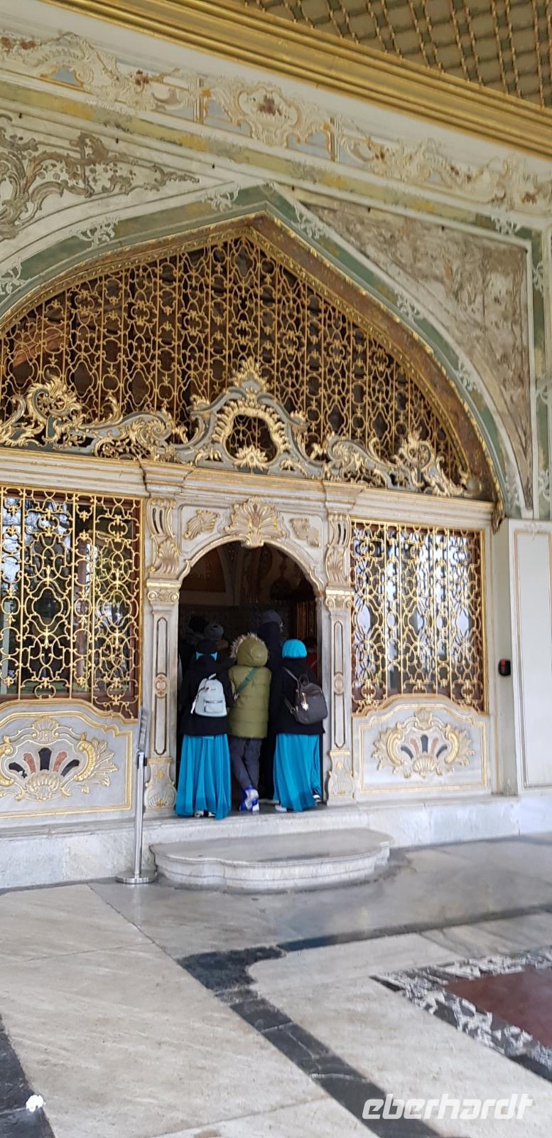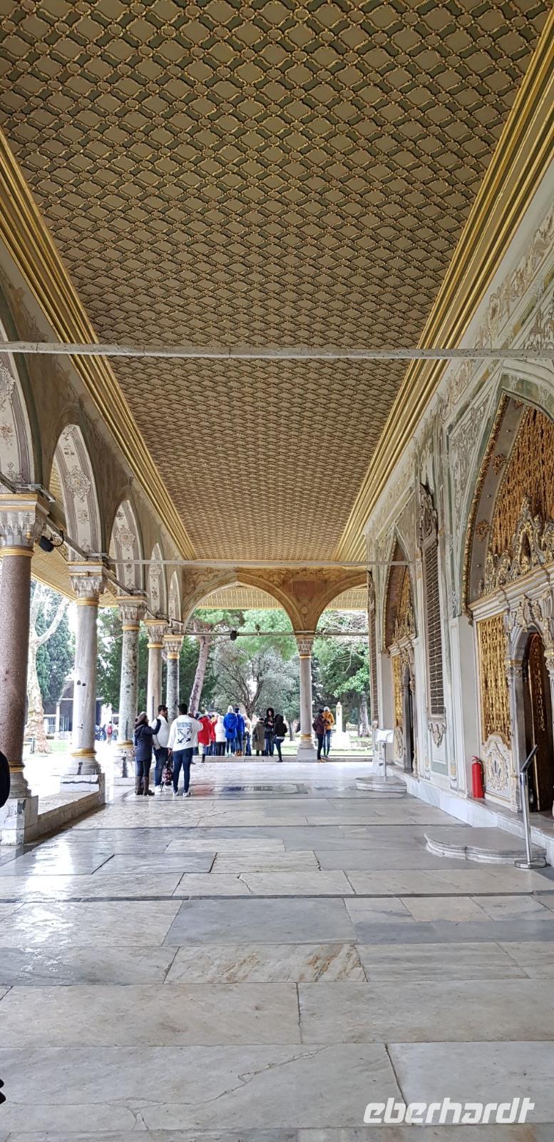 Weiter gehen wir gemeinsam durch die Vorhöfe der Blauen Moschee zur Hagia Sophia, die sich unmittelbar anschließt. Die Besichtigung verschieben wir auf den Nachmittag, weil jetzt der Andrang zu groß ist und wir zu lange warten müssten. So besichtigen wir erst den Topkapi Palast, der sich unmittelbar an die Hagia Sophia anschließt.
