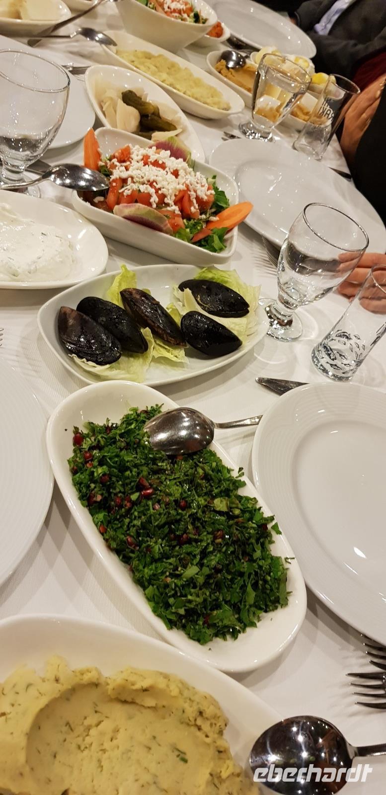 19.00 Uhr werden wir mit dem Bus abgeholt und fahren zu dem Restaurant, in dem wir den Silvesterabend bei super leckerem Essen und Trinken, typischer Musik und Bauchtanz verbringen und das neue Jahr begrüßen. Unser Reisleiter Serdar und Turgu von der Agentur begleiten uns. Wir verbringen einen sehr schönen beeindruckenden und entspannten Abend.