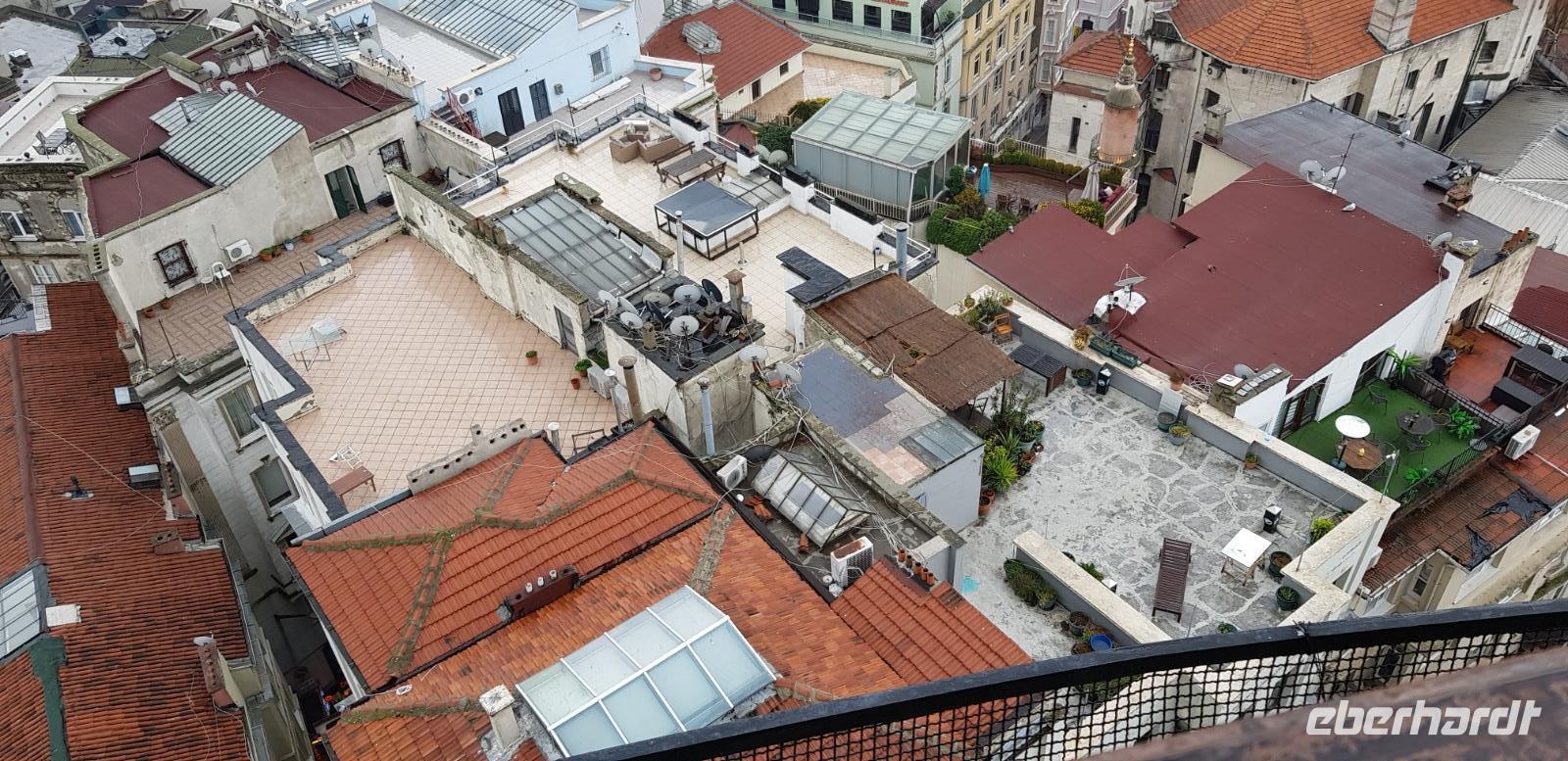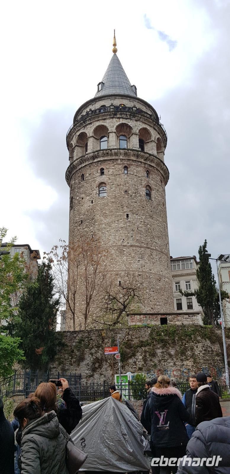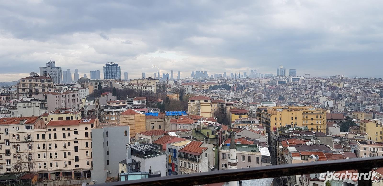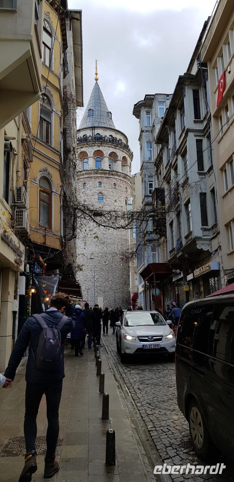 Heute ist auch in Istanbul Feiertag und da ist nicht alles geöffnet, deshalb haben wir unseren Besichtigungsplan etwas geändert. Nach dem gemütlichen Frühstück im Hotel starten wir 11.00 Uhr zu unseren Besichtigungen. Der Bus holt uns ab. Wir fahren über die Galata Brücke zum Galata Turm. Serdar hofft, dass jetzt dort noch nicht so viele Besucher sind, denn die Aussichtsgalerie ist sehr eng und klein und da gibt es dann lange Wartezeiten. Wir sind zum richtigen Zeitpunkt am Turm und können nach einer kurzen Wartezeit auf den Turm hinauf fahren. Von der Aussichtsgalerie aus bietet sich ein toller Blick auf die Stadt. So bekommen wir eine Vorstellung von der Größe der Stadt und der herrlichen Lage. Nachdem wir uns sattgesehen haben fahren wir wieder hinunter und weiter geht es ein Stück zu Fuß durch die engen Gassen des Stadtviertels Karaköy.