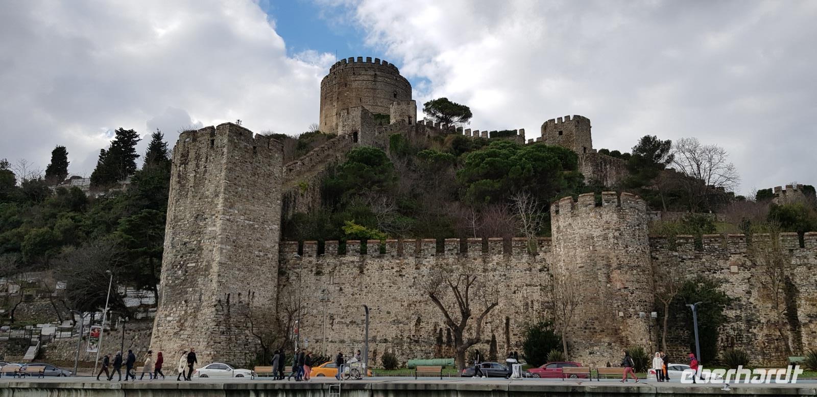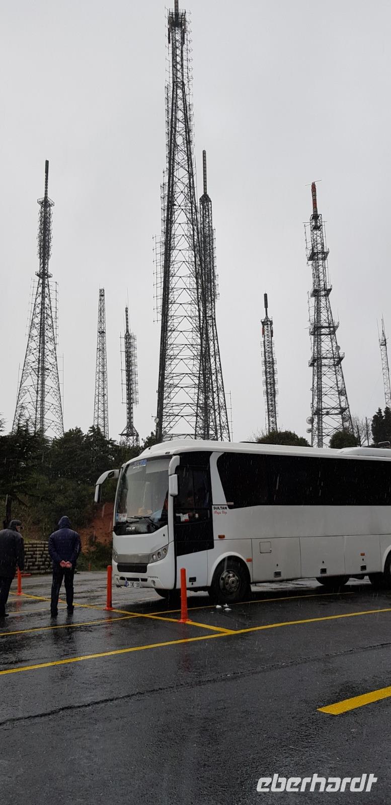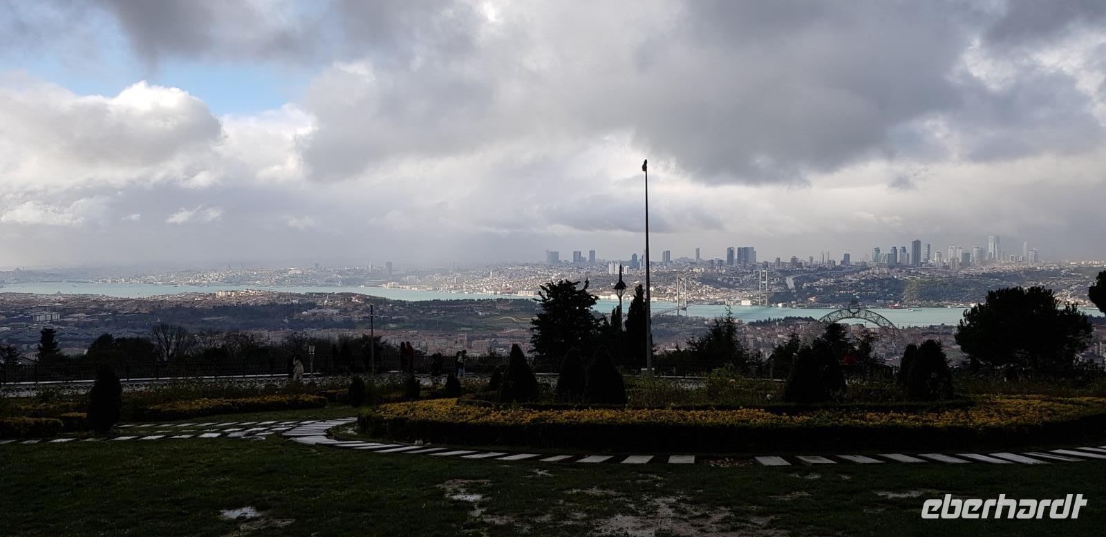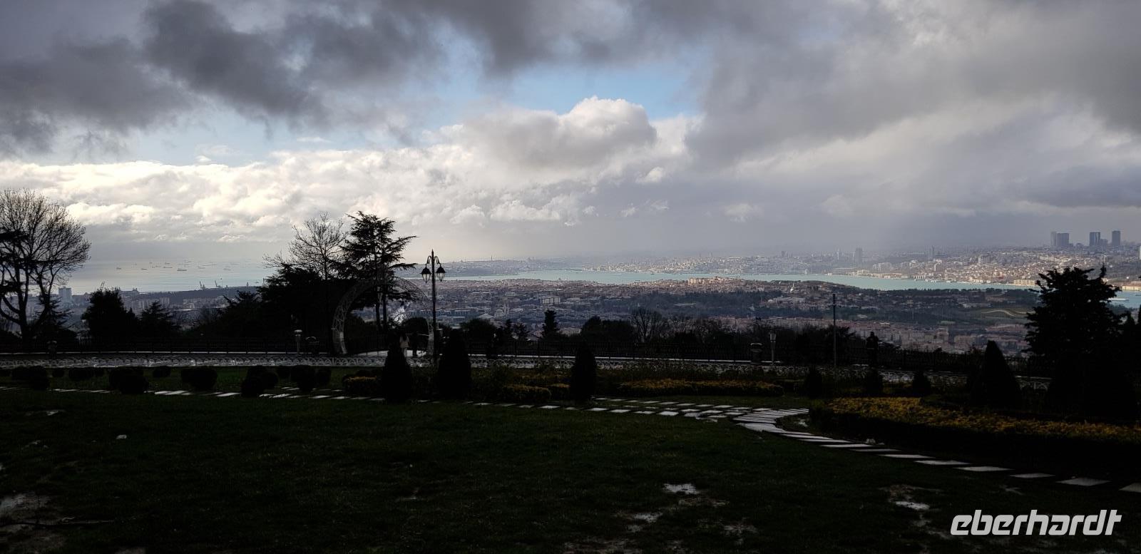 An der Station Kazucesme steigen wir in die Metro und fahren unter dem Bosporus von der europäischen Seite auf die asiatische Seite Istanbuls. An der Station Üsküdar steigen wir aus und fahren mit der Rolltreppe wieder nach oben. Jetzt sind wir im asiatischen Teil, im Stadtviertel Üsküdar angekommen. Hier machen wir eine kleine Mittagspause. Üsküdar befindet sich unmittelbar an der Einfahrt in den Bosporus und hatte deshalb schon immer eine besondere strategische Bedeutung. Dann geht es weiter auf den Camlica Hügel, die höchste Erhebung Istanbuls. Von hier aus haben wir einen fantastischen Blick über den Bosporus und fast die ganze Stadt. Leider schauert es heute immer wieder, so dass der Aufenthalt auf dem Camlica Hügel etwas ungemütlich ist. Vom Camlica Hügel aus fahren wir hinunter ans Ufer des Bosporus, an die Stelle, wo die Boote zur Überfahrt zum Mädchenturm (Kiz Kulesi) ablegen. Der Mädchenturm wurde im 18.Jh. auf einer kleinen Insel im Einfahrtsbereich des Bosporus errichtet. Wir fahren mit dem Boot hinüber. Die Überfahrt dauert nur wenige Minuten. Im Inneren des Turms kann man nach oben auf die Plattform steigen und die Rundumsicht genießen - heute ist es leider recht stürmisch, so dass wir nicht lange auf der Plattform verweilen. Da ist es schon gemütlicher, im Restaurant einen Kaffee zu trinken. Dann geht es wieder mit dem Boot zum Festland auf der asiatischen Seite Üsküdar.