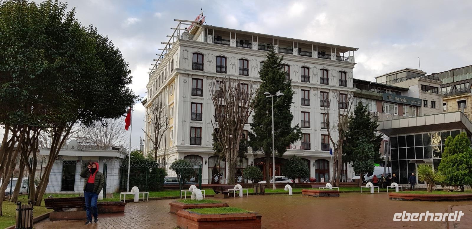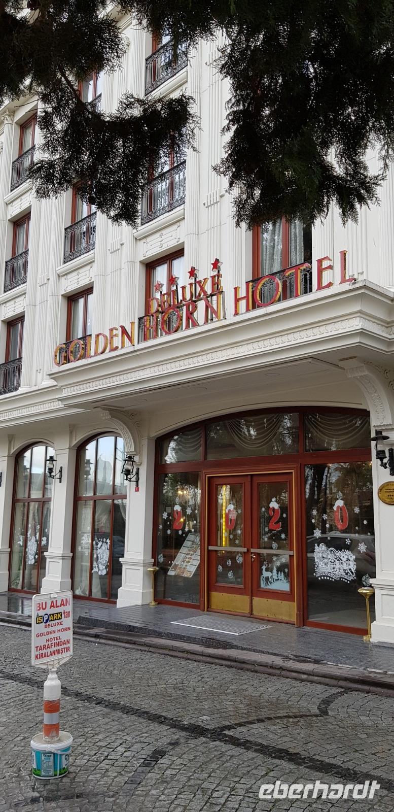 Serdar, unser örtlicher Reiseleiter in Istanbul, erwartet uns schon. Es dauert aber noch ein wenig bis alle Gäste da sind, weil der Flieger von Berlin-Tegel eine Stunde Verspätung hat. Dann sind alle Gäste da und wir begeben uns zum Ausgang. Serdar empfängt uns und wir begeben uns zum Bus, der uns zu unserem Hotel "Deluxe Golden Horn Hotel" bringt. Wir fahren eine Stunde vom Flughafen bis zum Hotel durch das abendliche Istanbul. Während der Fahrt zum Hotel stellt uns Serdar seine Stadt schon etwas vor und auch das Programm für die nächsten Tage. Es wird spannend!
