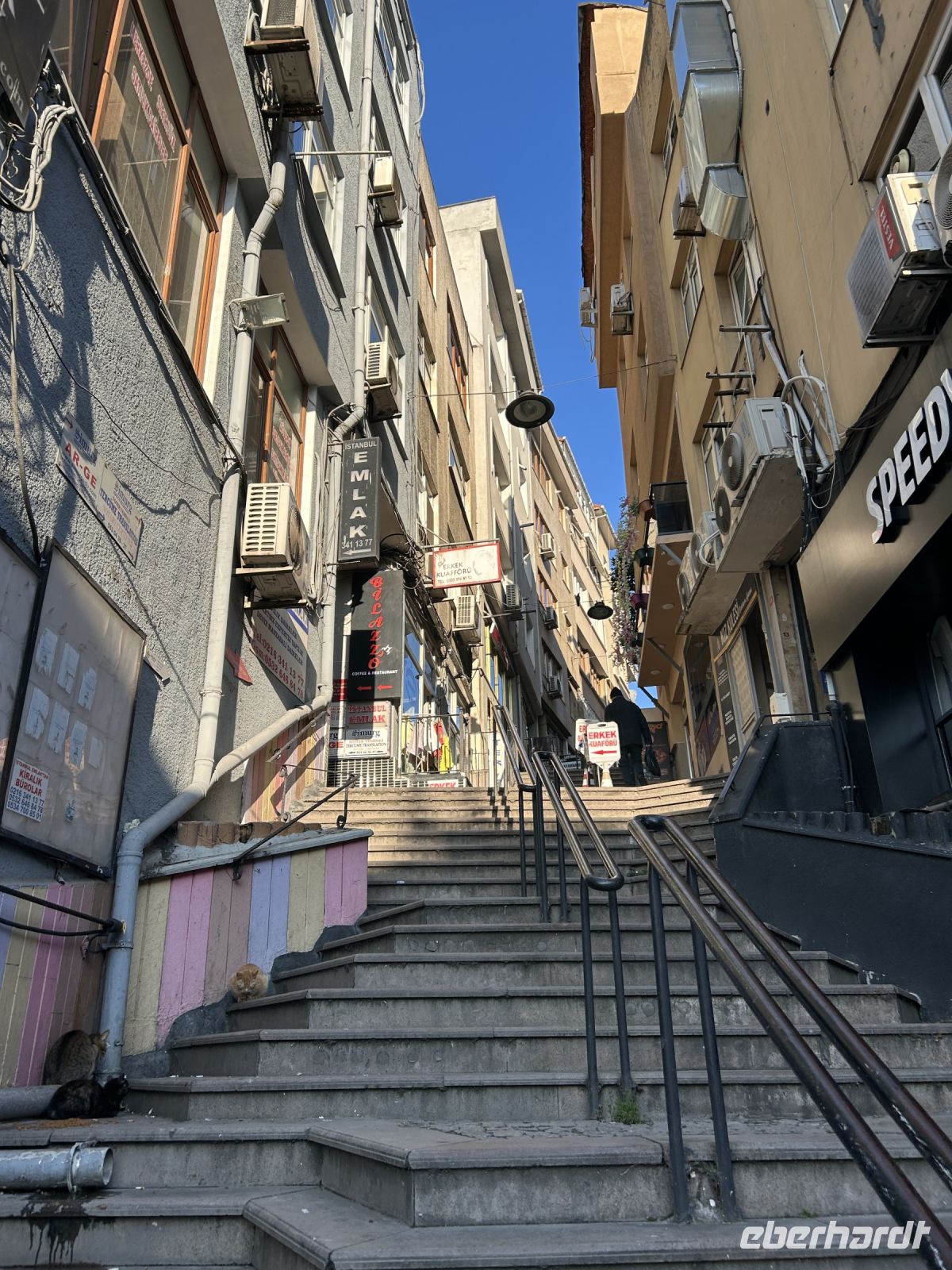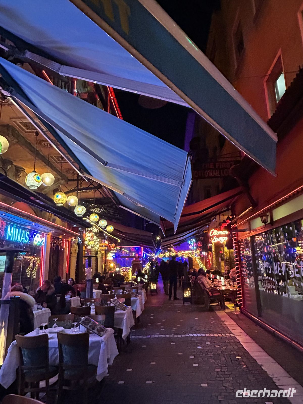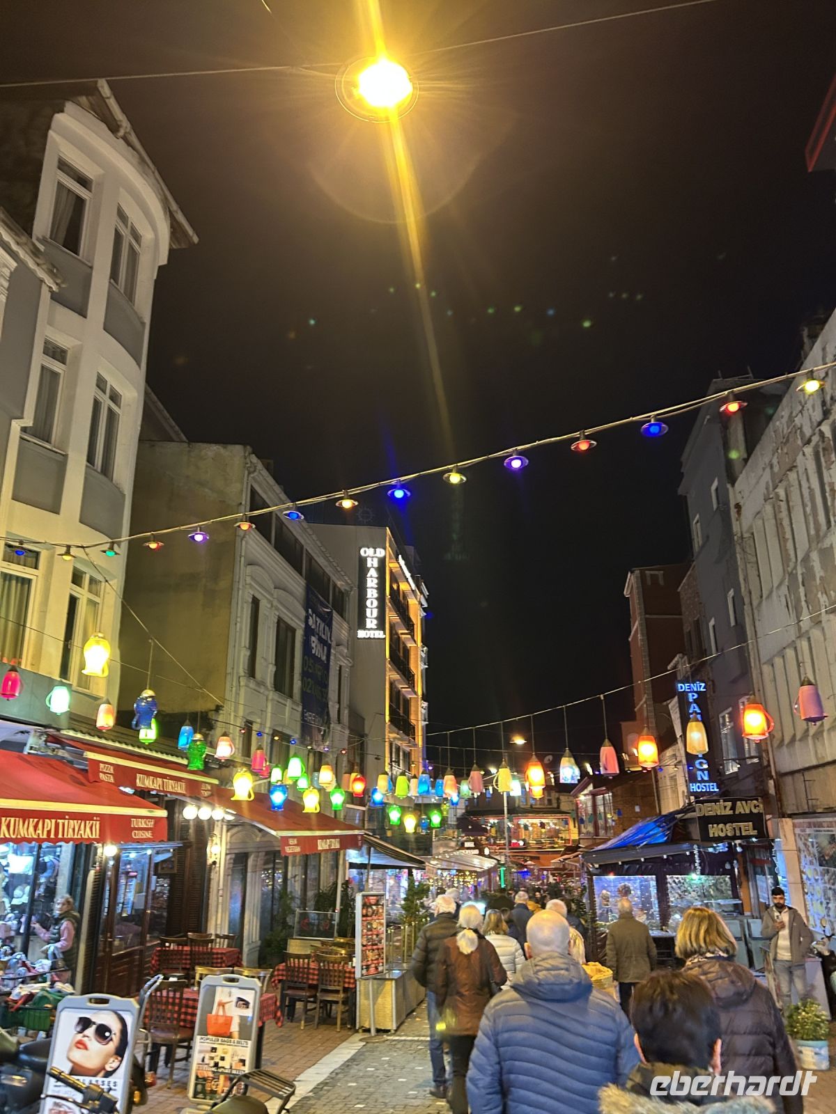Gemütlich flanieren wir mit Hüseyin durch die bunten Gassen Istanbuls zu einem hübschen kleinen Fischrestaurant.