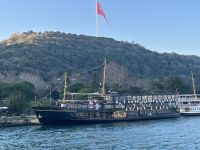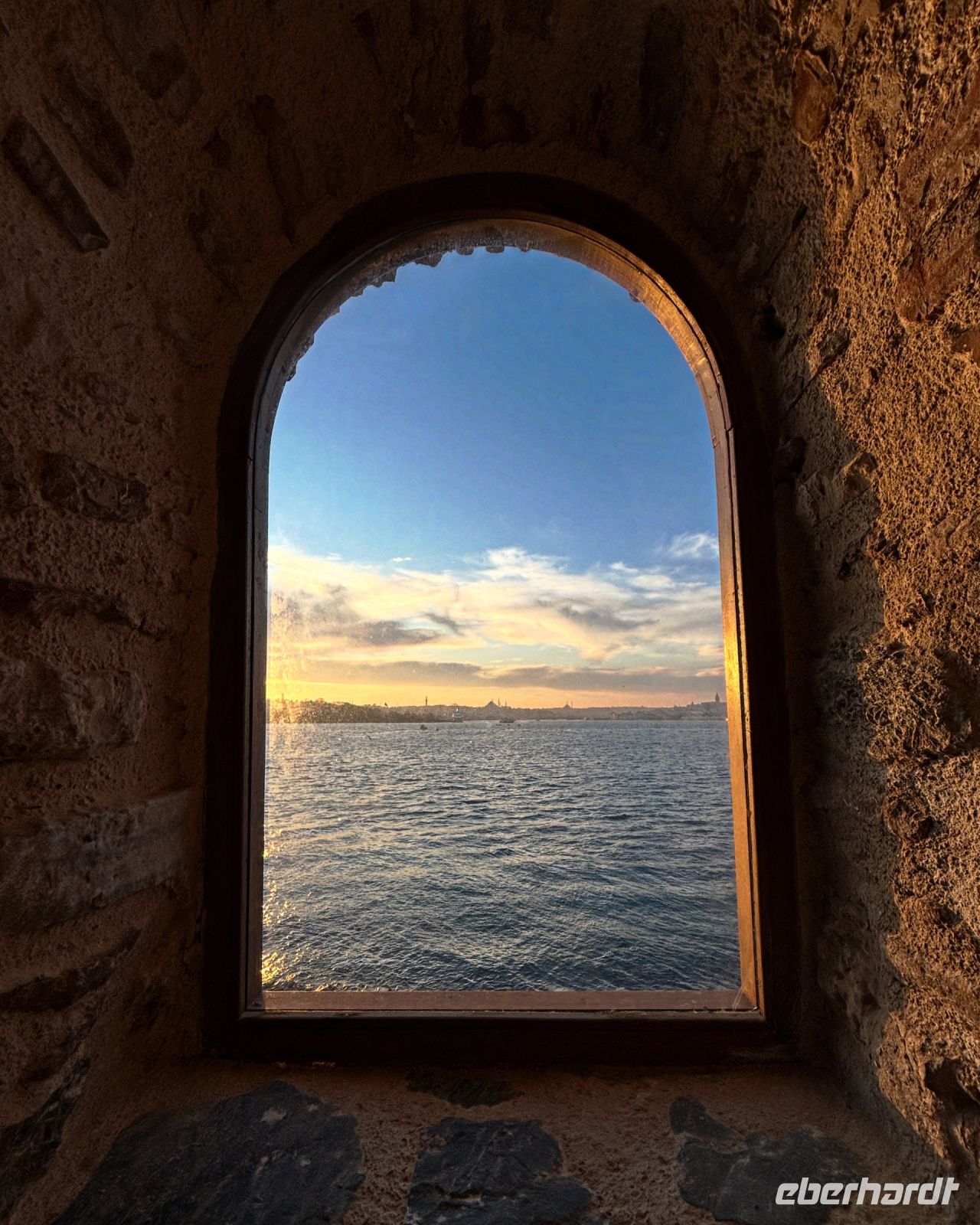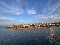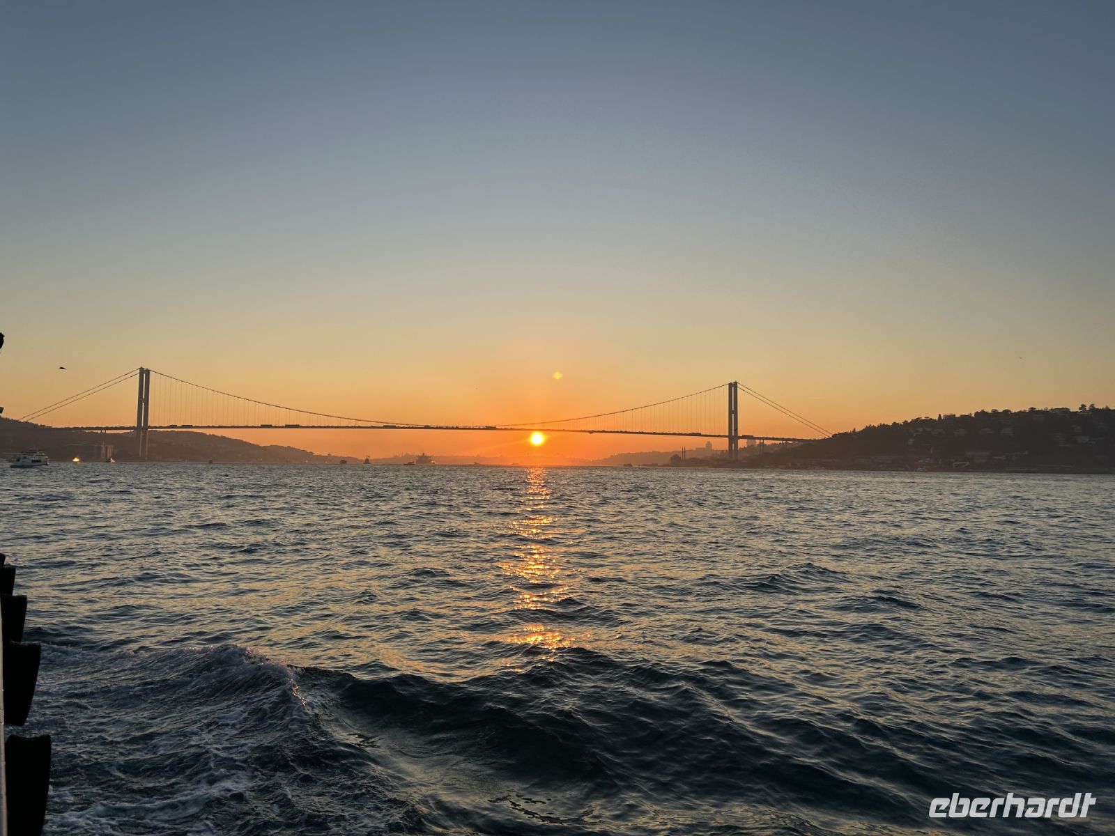 Die Überfahrt dauert nur wenige Minuten. Im Inneren des Turms erreicht man nach einigen Treppen die Aussichtsplattform und kann man die herrliche Aussicht genießen. Wir haben Glück, denn der Sonnenuntergang ist nicht weit entfernt und uns bietet sich ein atemberaubendes Farbenspiel. Mit dem letzten Boot schippern wir wieder zurück zum Ufer. Leider ist heute bereits unser letzter Abend in Istanbul, also machen wir uns auf zu unserem Abschiedsabendessen und lassen die gemeinsame Zeit Revue passieren. Nach dem wir uns von unserem Reiseleiter Hüseyin gebührend verabschiedet haben fahren wir über die Bosporusbrücke wieder zurück zu unserem Hotel.