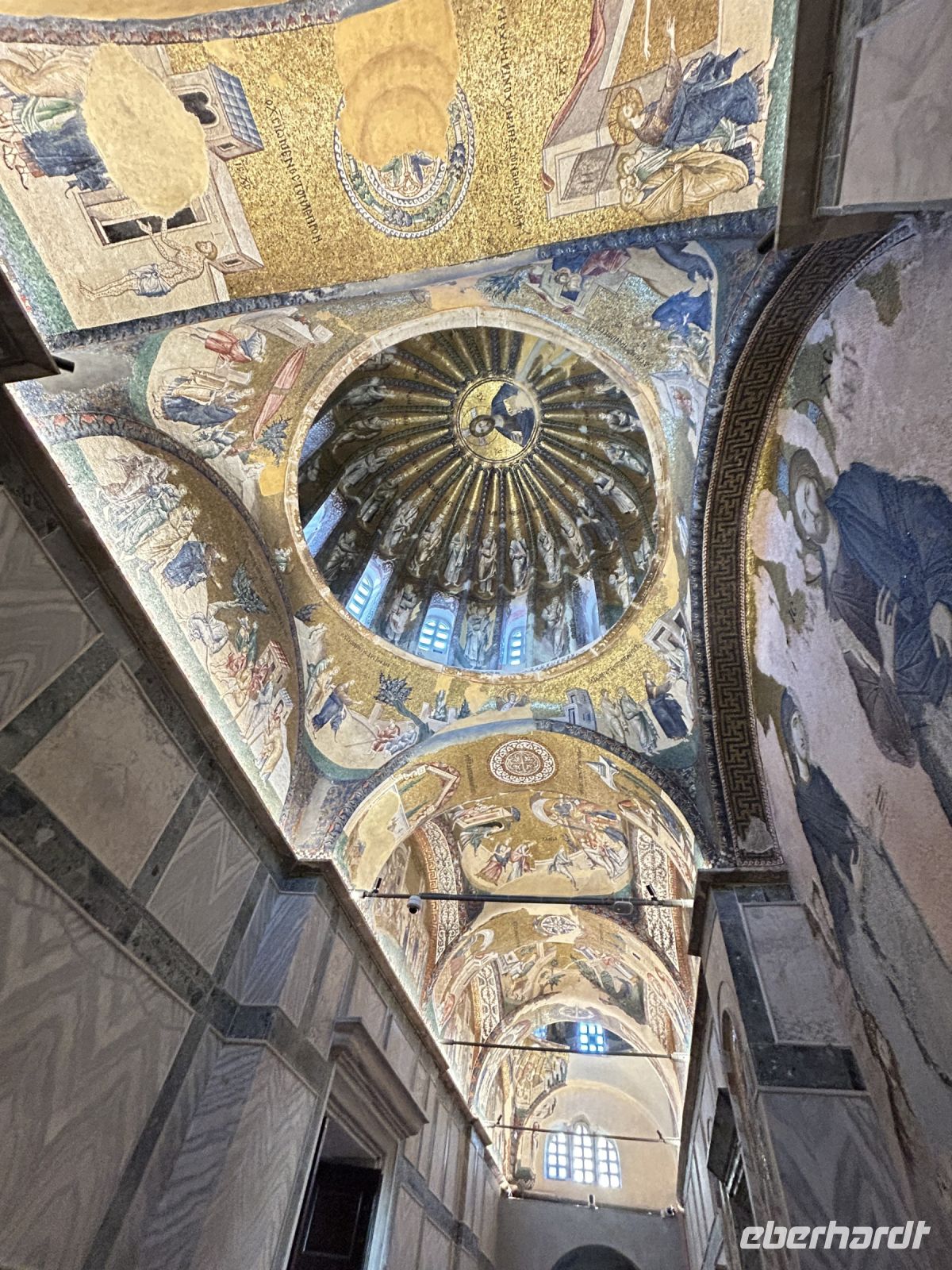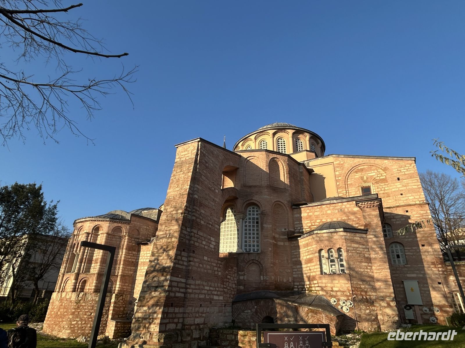 Nach der Eroberung Konstantinopels wurde sie im Jahr 1453 zur Moschee des Sultans erklärt und seit 1935 ist diese als Museum registriert. Die Zeit als Moschee prägt die innere Ausstattung. In den Vorräumen können wir nach wie vor beeindruckende christliche Mosaike aus byzantinischen Zeiten betrachten.