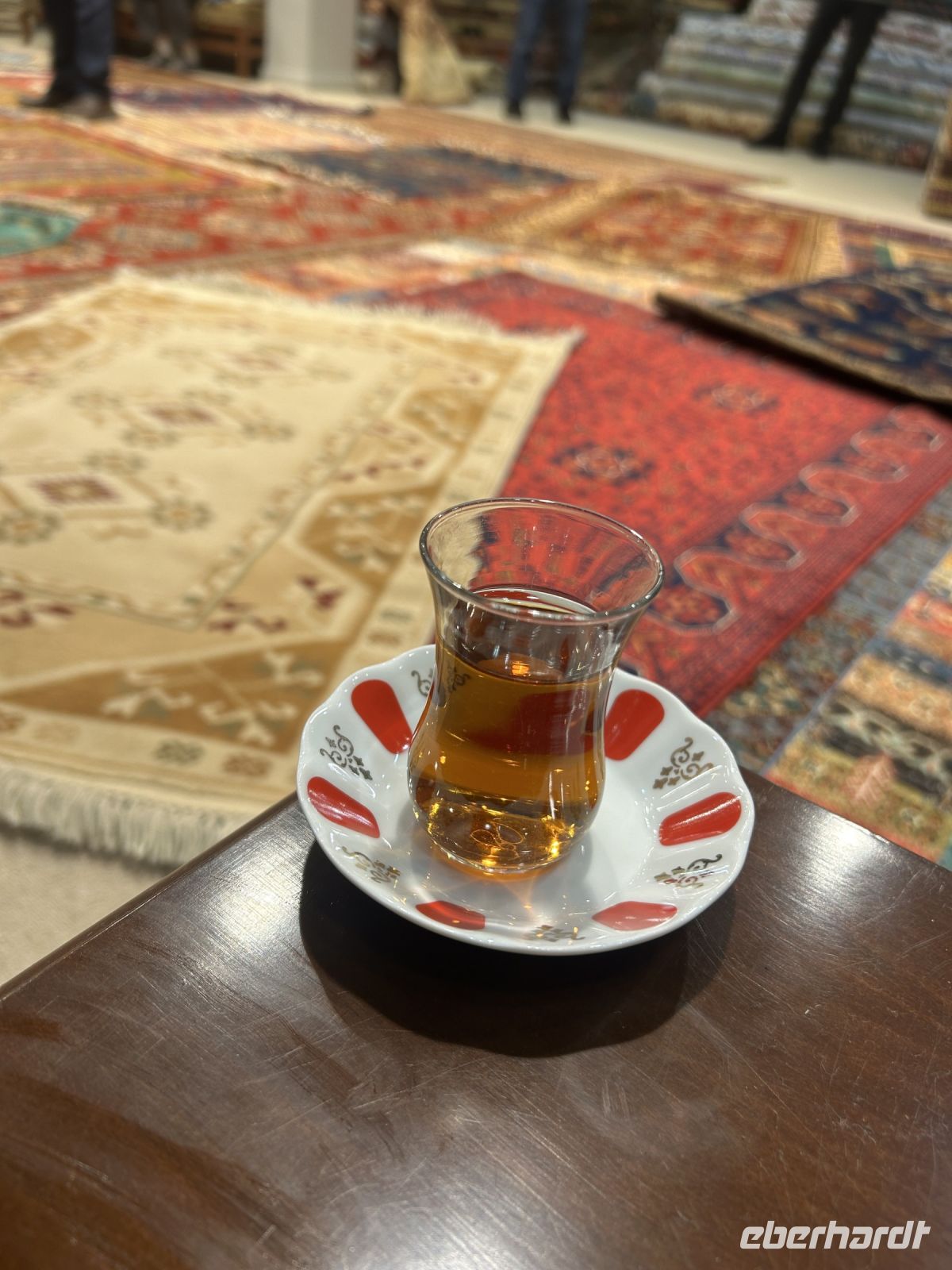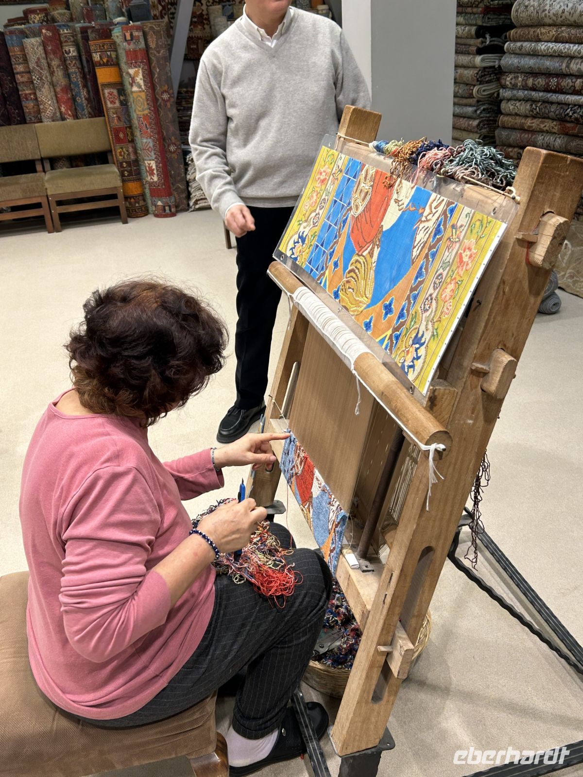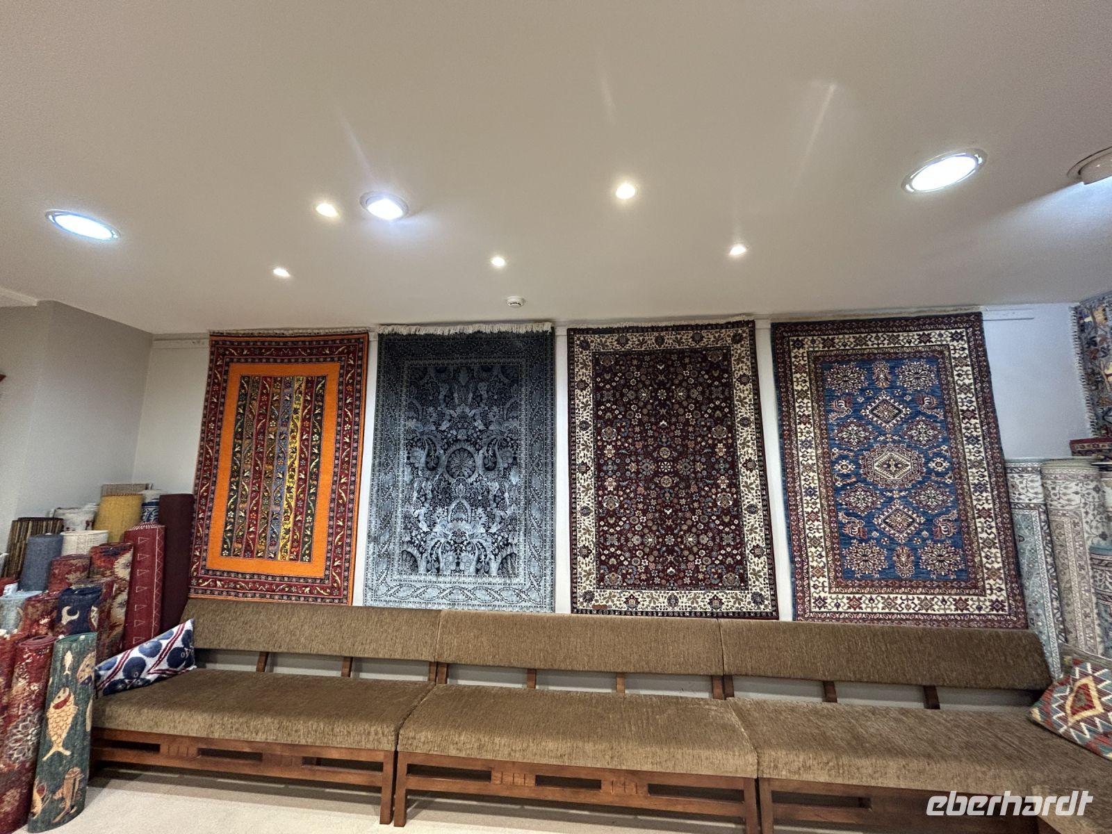 Anschließend fahren wir zu einer Teppichknüpferfamilie, wo uns zunächst deren wunderschöne Schmuckkollektion vorgestellt wird. Als nächstes tauchen wir in die langjährige Tradition des Teppichknüpfen ein. Verwöhnt mit Caj, Mokka oder Apfeltee lauschen wir gespannt den Vortrag, welcher uns einen Eindruck in das alte, fingerfertige Handwerk gibt. Nach dem wir uns mehrere unterschiedliche Modelle angeschaut haben, entschließen sich einige aus der Gruppe kurzerhand einen Teppich zu erwerben. Per Lieferung frei Haus wird dieser in den nächsten Wochen in die Heimat geliefert. Was für ein toller Service.