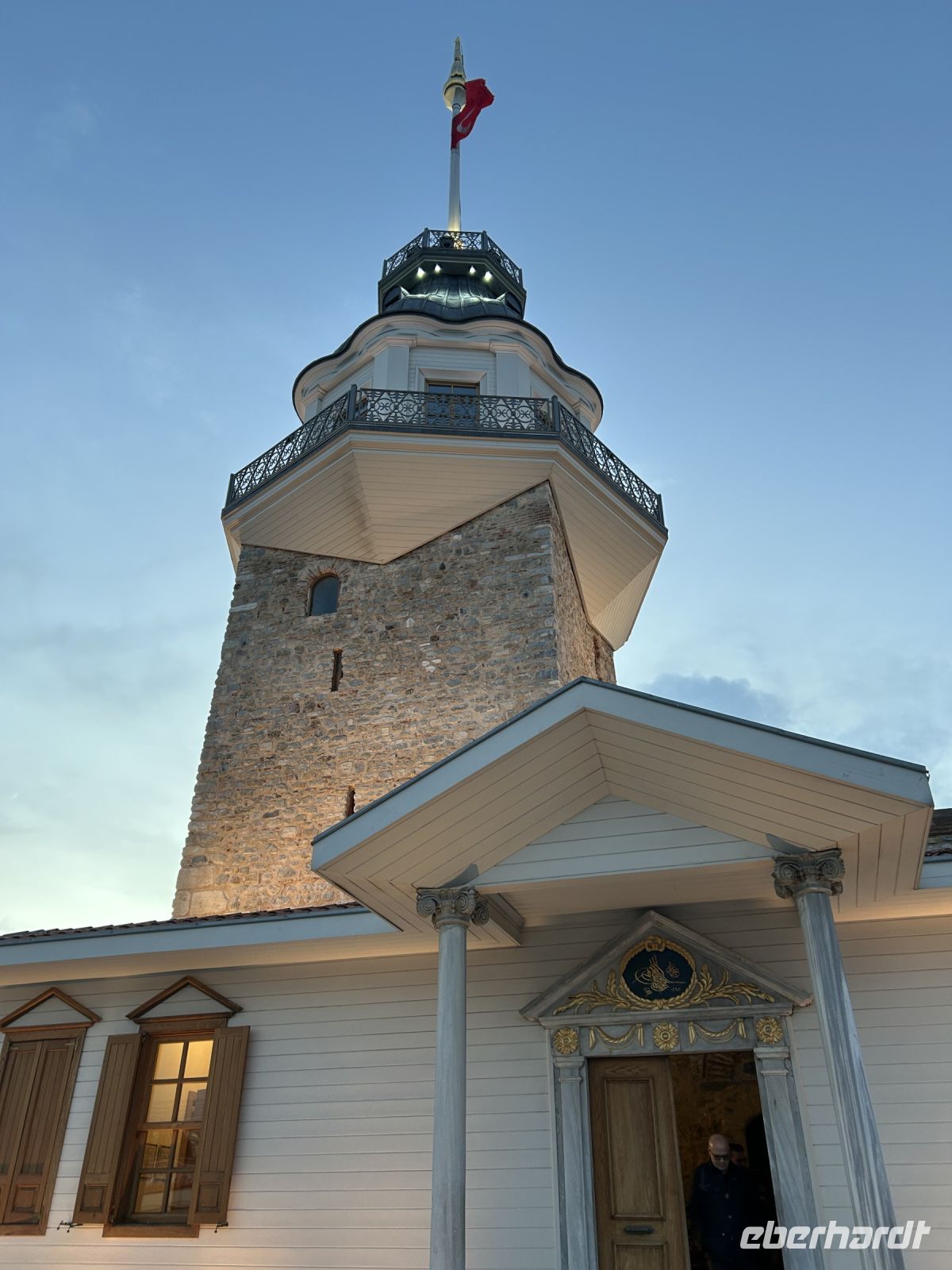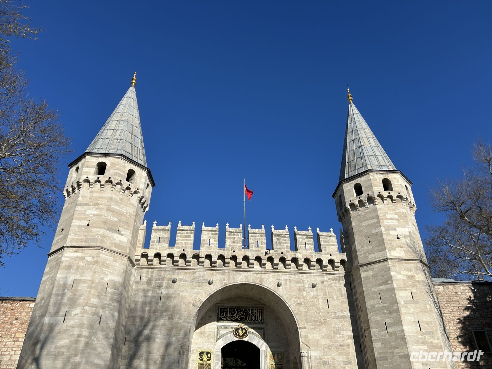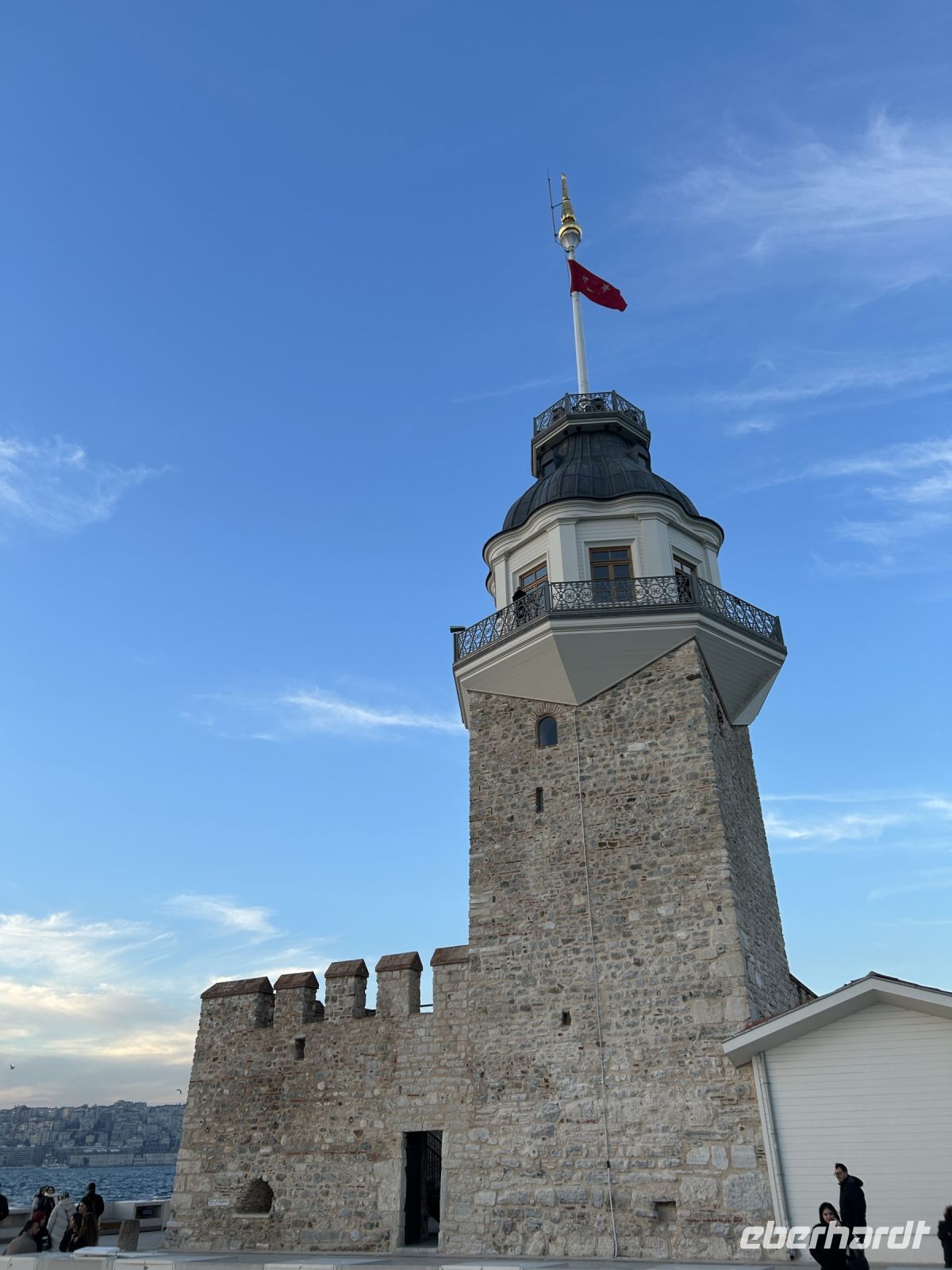 Nach einem individuellen Mittagessen spazieren wir gemeinsam zum Topkapi Palast. Der Topkapi Palast ist ein beeindruckendes Beispiel osmanischer Architektur und eine der wohl bekanntesten Sehenswürdigkeiten in Istanbul. Dieser diente fast 400 Jahre lang als Residenz der osmanischen Sultane sowie als Verwaltungs- und Bildungszentrum und erstreckt sich mit einer Gesamtfläche von über 350.000 Quadratkilometern. Um einen kleinen Eindruck zu bekommen, erkunden wir nun auf eigene Faust die 4 Höfe, welche umfangreiche Sammlung von Schmuck, Porzellan, Gewändern, Waffen, und anderen Artefakten von unschätzbarem Wert ausstellen. Nach unserem Rundgang ist uns allen bewusst, weshalb dieses riesige Areal zum UNESCO Weltkulturerbe ernannt wurde. Unser nächster Programmpunkt, ist der Mädchenturm. Wir machen uns also auf zur Uferpromenade zur Anlegestelle, um mit dem Boot auf die kleine Insel mitten im Bosporus überzusetzen. Der Mädchenturm (Kiz Kulezi) errichtet. Sein Name leitet sich von der Sage einer Prinzessin ab, der ein Wahrsager den Tod durch Gift vorausgesagt hatte. Daraufhin wurde Sie von Ihrem Vater in den für Sie errichteten Turm eingesperrt. Getränke und Speisen wurden Ihr Tag täglich per Boot geliefert. In einem gelieferten Obstkorb versteckte sich jedoch eine Schlange und so wurde Sie trotz aller Sicherheitsvorkehrungen gebissen und schließlich durch das Schlangengift getötet.