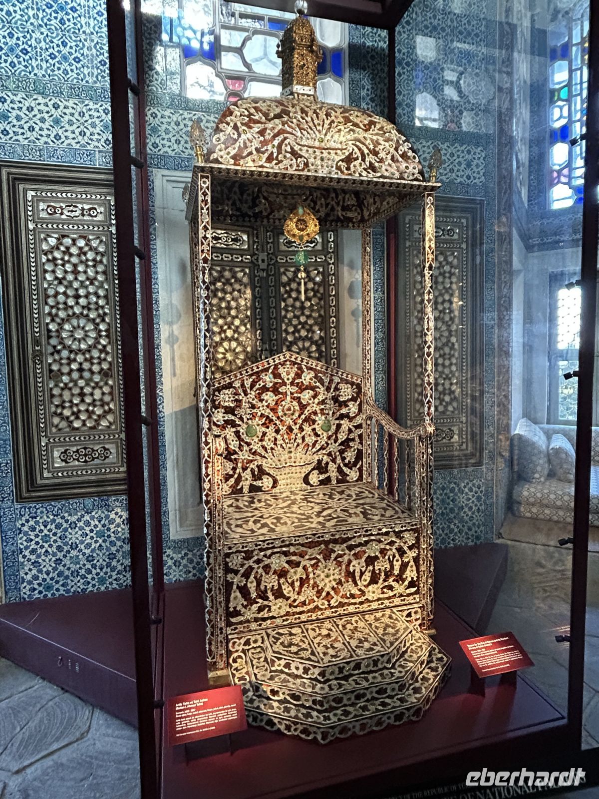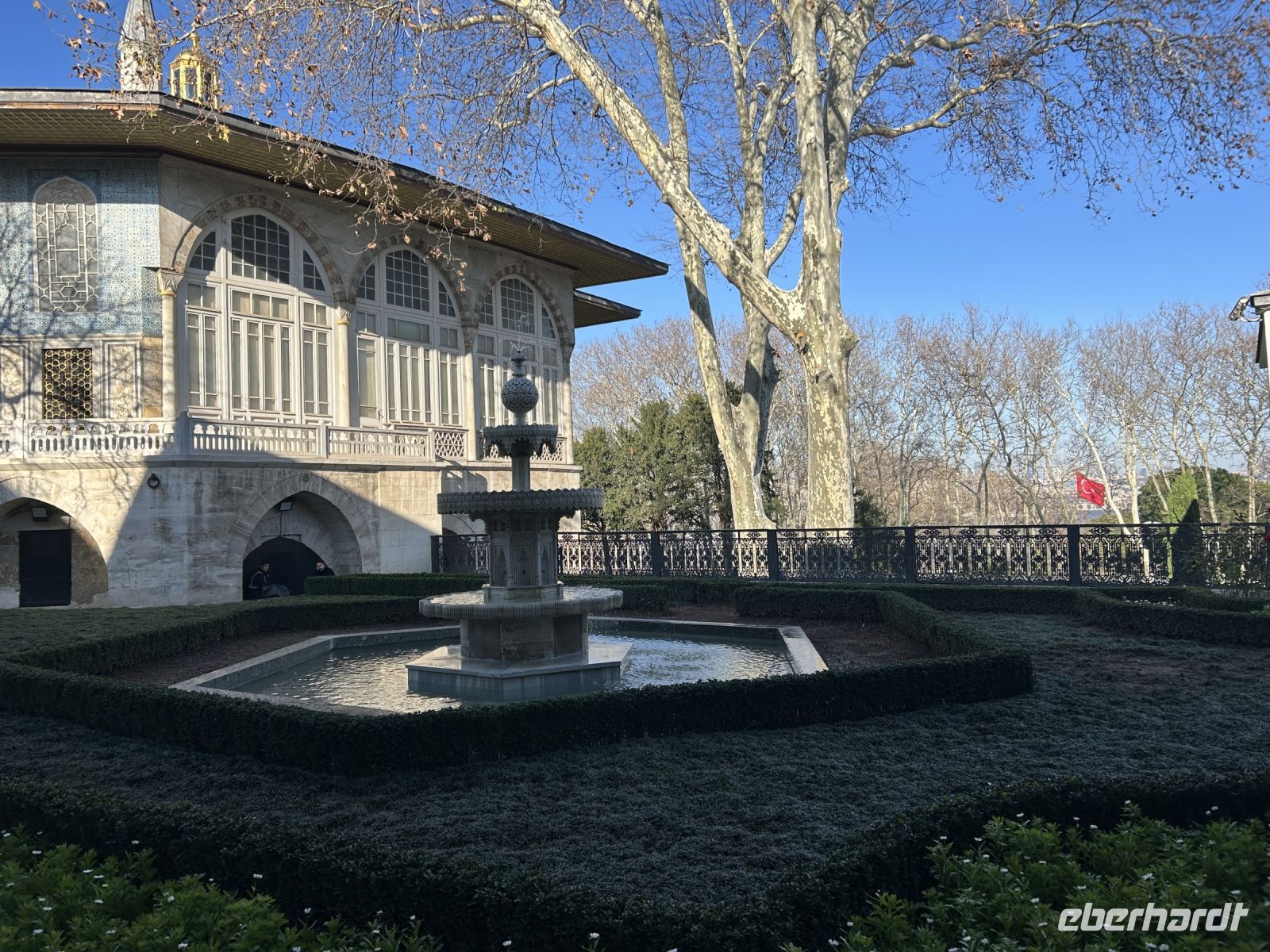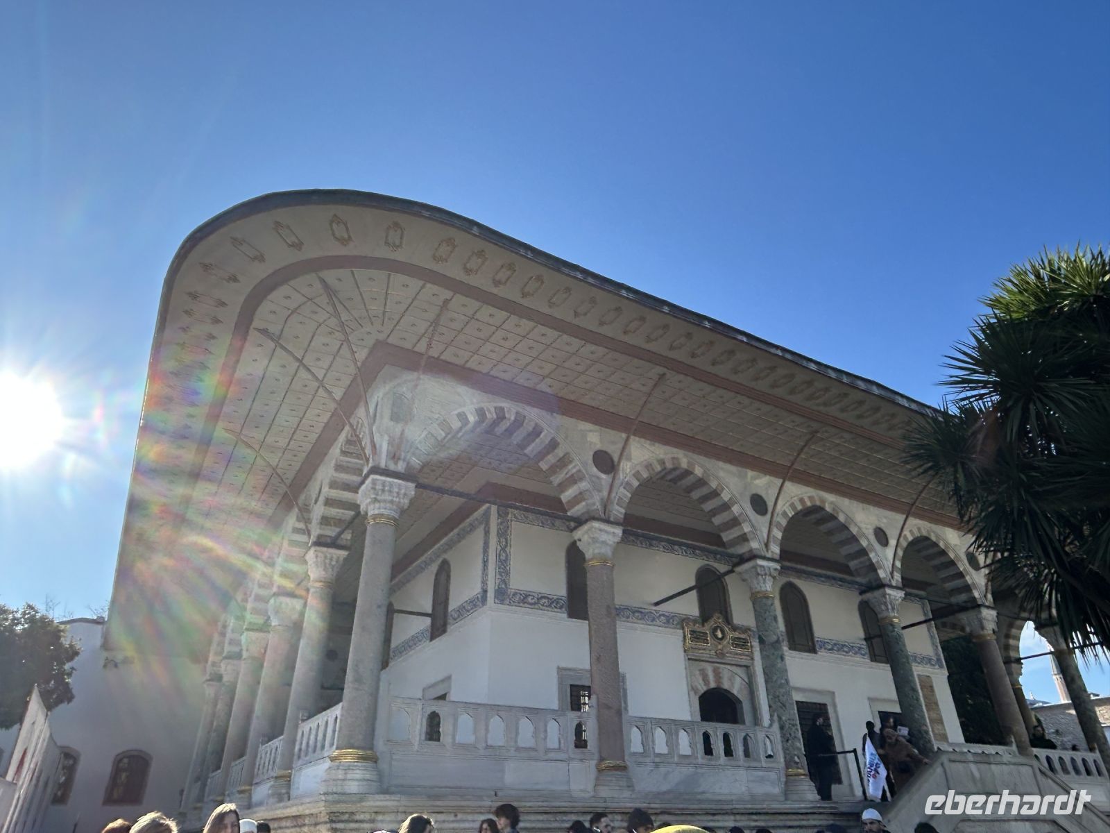 Nach einem individuellen Mittagessen spazieren wir gemeinsam zum Topkapi Palast. Der Topkapi Palast ist ein beeindruckendes Beispiel osmanischer Architektur und eine der wohl bekanntesten Sehenswürdigkeiten in Istanbul. Dieser diente fast 400 Jahre lang als Residenz der osmanischen Sultane sowie als Verwaltungs- und Bildungszentrum und erstreckt sich mit einer Gesamtfläche von über 350.000 Quadratkilometern. Um einen kleinen Eindruck zu bekommen, erkunden wir nun auf eigene Faust die 4 Höfe, welche umfangreiche Sammlung von Schmuck, Porzellan, Gewändern, Waffen, und anderen Artefakten von unschätzbarem Wert ausstellen. Nach unserem Rundgang ist uns allen bewusst, weshalb dieses riesige Areal zum UNESCO Weltkulturerbe ernannt wurde. Unser nächster Programmpunkt, ist der Mädchenturm. Wir machen uns also auf zur Uferpromenade zur Anlegestelle, um mit dem Boot auf die kleine Insel mitten im Bosporus überzusetzen. Der Mädchenturm (Kiz Kulezi) errichtet. Sein Name leitet sich von der Sage einer Prinzessin ab, der ein Wahrsager den Tod durch Gift vorausgesagt hatte. Daraufhin wurde Sie von Ihrem Vater in den für Sie errichteten Turm eingesperrt. Getränke und Speisen wurden Ihr Tag täglich per Boot geliefert. In einem gelieferten Obstkorb versteckte sich jedoch eine Schlange und so wurde Sie trotz aller Sicherheitsvorkehrungen gebissen und schließlich durch das Schlangengift getötet.