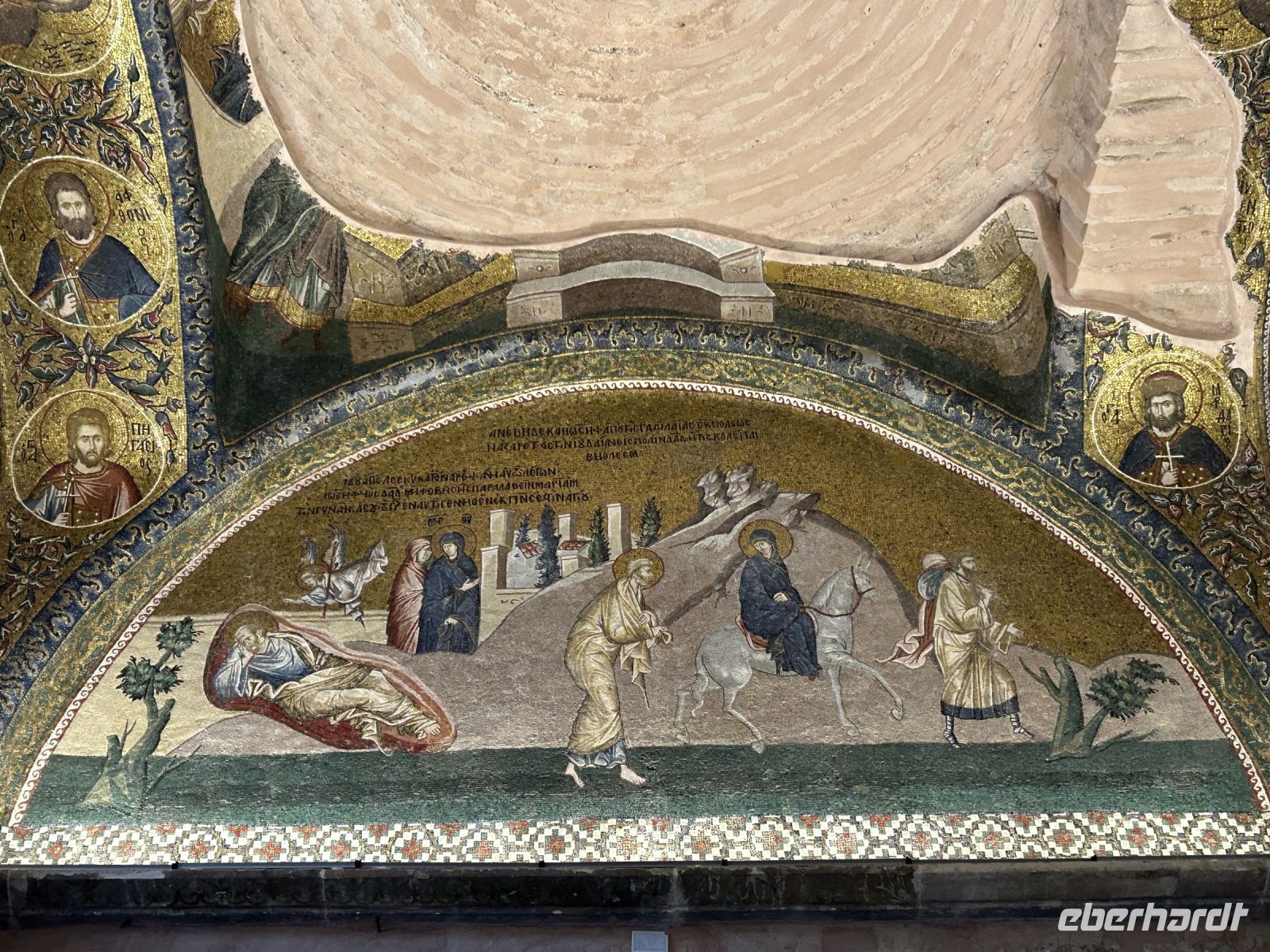Unser erstes Ziel ist die Chora Kirche, eine ehemalige byzantinische Kirche, welche im Stadtteil Fatih gelegen ist. Nach der osmanischen Eroberung Konstantinopels um 1453 wurde die Kirche in eine Moschee umgewandelt. Während dieser Zeit wurden die Mosaiken und Fresken ummantelt. Eine Maßnahme, die dazu beitrug, die Meisterwerke zu erhalten. 1948 wurde die Kirche einer umfassenden Restaurierung unterzogen und diente ab 1958 als Museum, wodurch die Öffentlichkeit die Möglichkeit erhielt die spektakulären Meisterwerke der byzantinischen Kunst zu bestaunen. Auch wir sind durch und durch beeindruckt von den zahlreichen Fresken und Mosaiken.