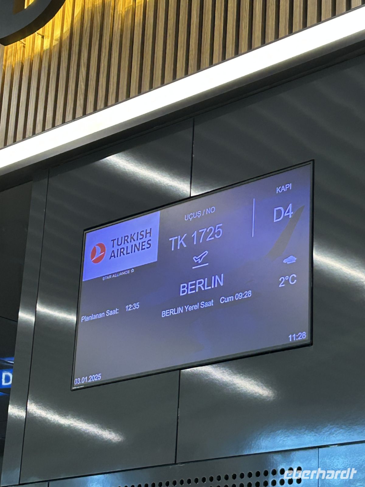 Am Flughafen in Berlin angekommen geben wir gemeinsam unser Gepäck auf, passieren die Sicherheitskontrolle und steigen mit wenigen Minuten Verspätung in die Maschine der Turkish Airline welche uns innerhalb von 2 Stunden und 55 Minuten nach Istanbul bringt.