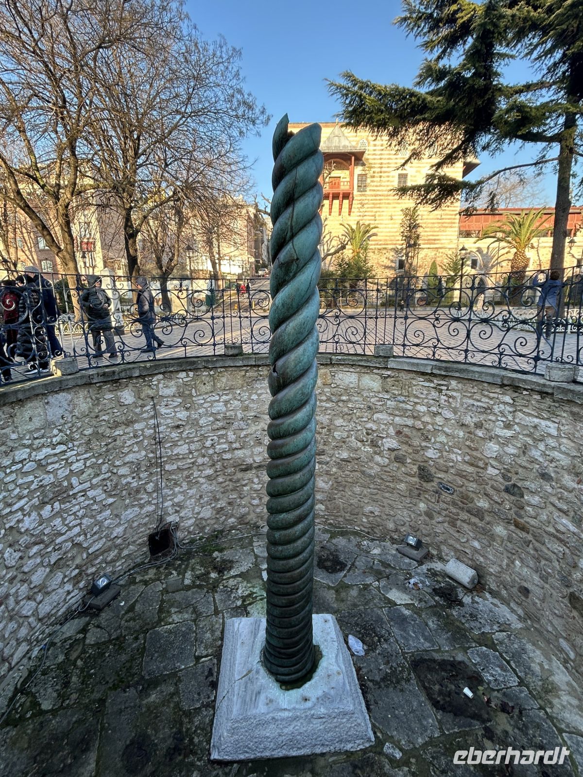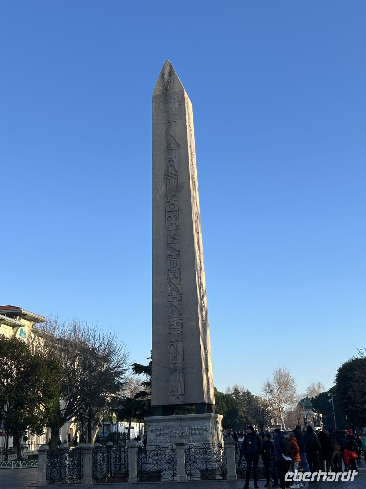 Auf los geht es los. Wir beginnen mit einem Spaziergang zum Hippodrom von hier aus bekommt man einen guten Überblick, wo sich die wichtigsten Sehenswürdigkeiten befinden. Das Hippodrom kann man allerdings nur noch mit viel Fantasie erahnen. Hier fanden im alten Byzanz Spiele und Wagenrennen für die Bevölkerung statt. Es sind allerdings nur noch der ägyptische Obelisk, die Schlangensäule und eine Bronzesäule erhalten, welche auf die damalige Zeit hindeuten.
