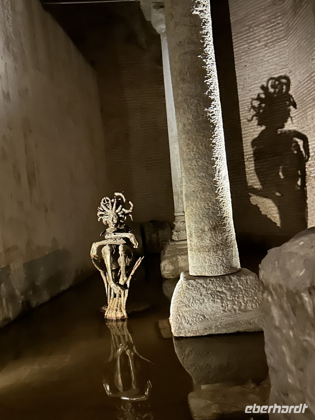 Im alten Byzantinischen Reich diente diese Zisterne als Wasserversorgung für die gesamte Stadt. Auf dem Weg hinunter steht man wie aus dem nichts in einem riesigen unterirdischen Raum, welcher auch „versunkenes Schloss“ genannt wird. Noch immer befindet sich in der Zisterne Wasser, allerdings wird dieses nicht mehr für die Versorgung der Bürger verwendet. Auf einem befestigten Weg kann man durch die Räumlichkeiten spazieren. Lichteffekte umrahmen den mystischen Ort.