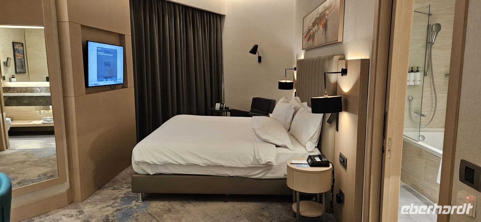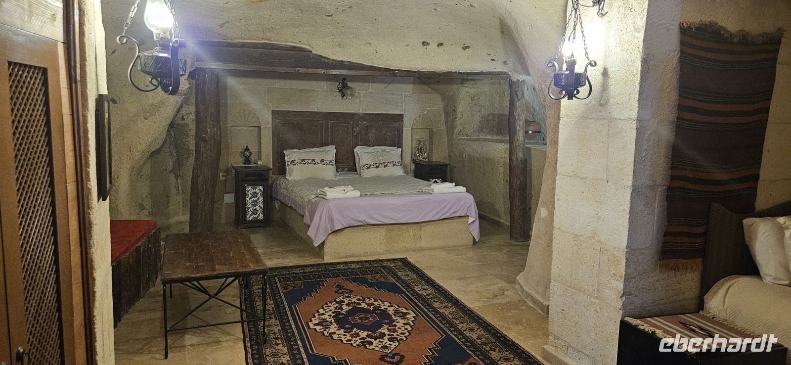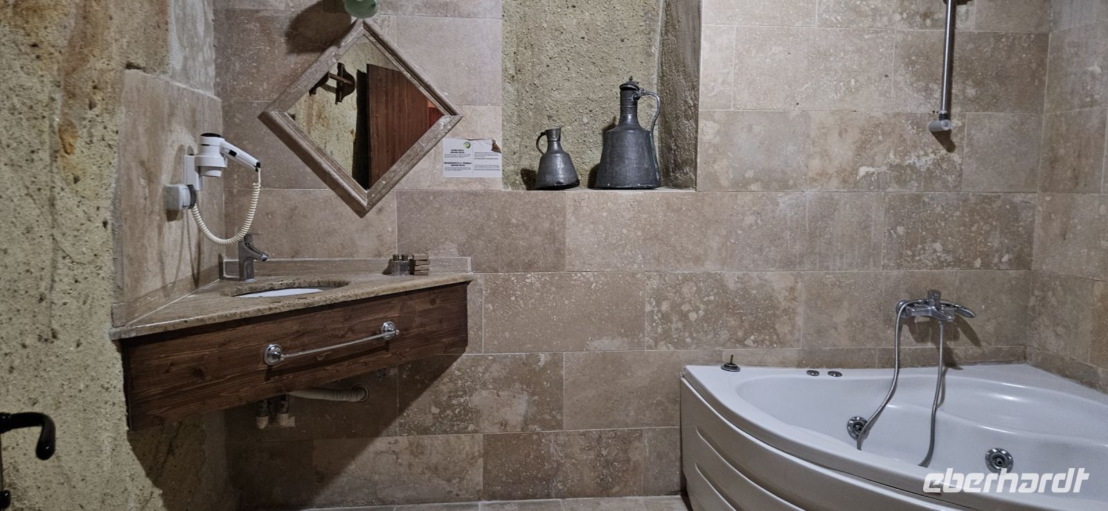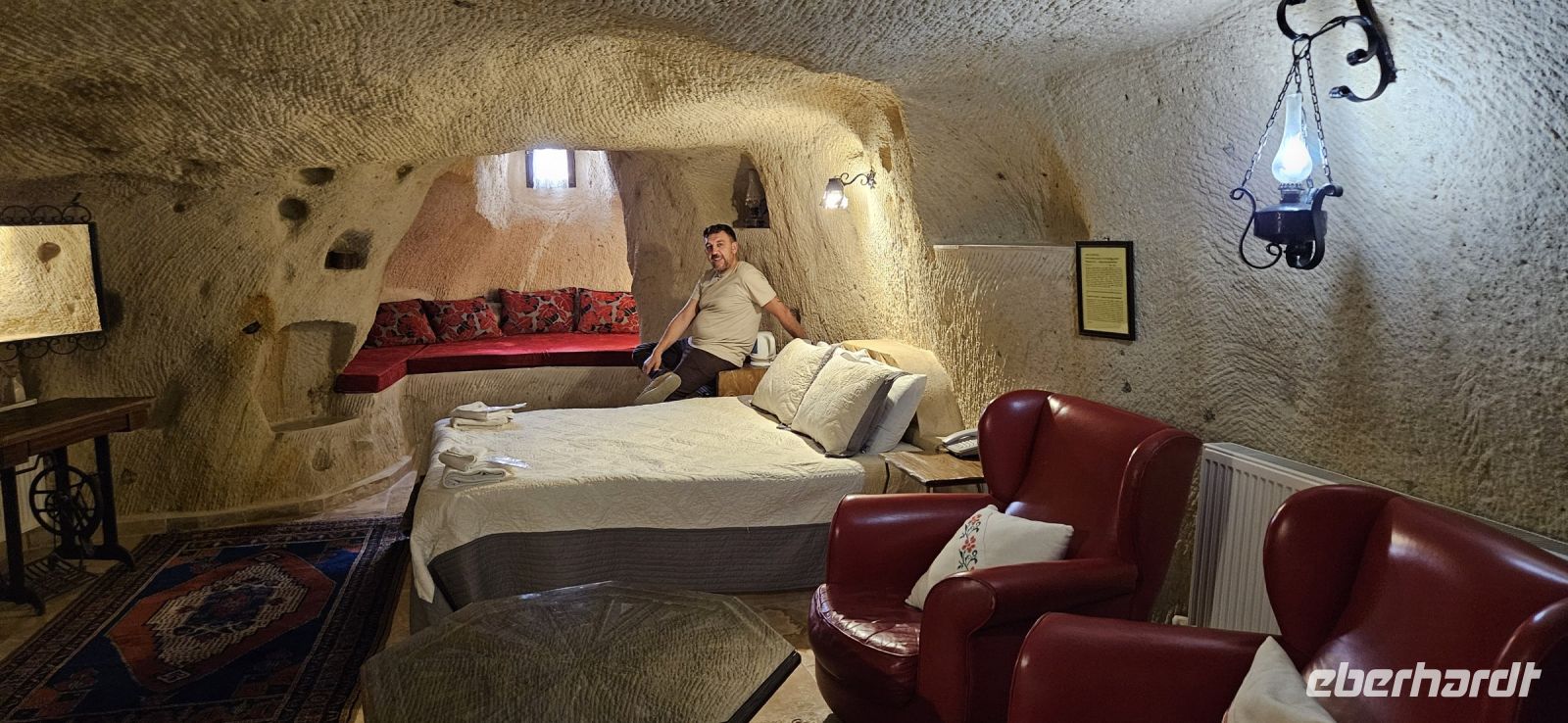 Sehr früh am Morgen starteten die Teilnehmer unserer Singlegruppe von Berlin, Düsseldorf und München mit Türkisch Airlines nach Istanbul. Dort galt es vom Internationalen Teil des riesigen Flughafens in den nationalen Teil zu wechseln. Da kamen schon mal 3-4 km zusammen und das Passieren der Pass- und Sicherheitskontrolle kostete Zeit. Es haben alle Teilnehmer der Gruppe geschafft und so landeten wir fast komplett am Flughafen in Kayseri. Dort warteten schon eine Teilnehmerin mit unserem Reiseleiter und Busfahrer auf uns. Alle Koffer waren da und so fuhren wir gemeinsam die 80 km bis nach Nevsehir zu unserem Hotel Crowne Plaza Cappadokia. Das Einchecken war gut vorbereitet, das Prozedere für das kostenlose, hoteleigene WLAN war schnell erklärt und die Zimmer konnten bezogen werden.