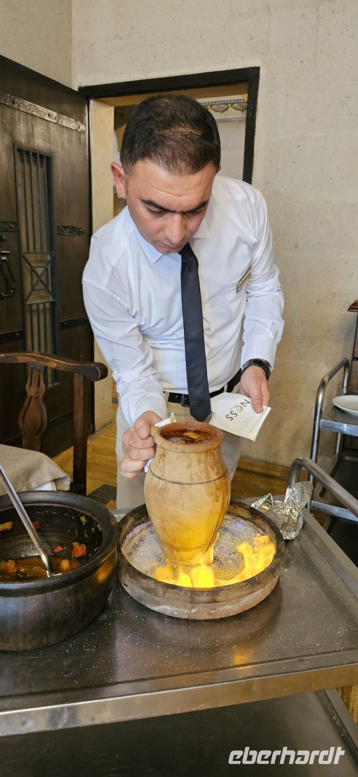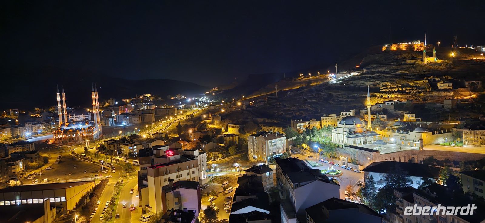 Im Restaurant hatte unsere Gruppe für den gesamten Aufenthalt reservierte Tische und das Buffet liess keine Wünsche offen. Jeden Abend gab es verschiedene Suppen, eine riesige Auswahl an Vorspeisen, wohlschmeckende Hauptgerichte und ein tolles Nachspeisenangebot mit Kuchen, Torten und viel frischem Obst. Nach dem Abendessen erkundeten wir die Bar im 13.Stockwerk und genossen die Aussicht auf die beleuchtete Festung und die Stadt Nevsehir. Dann fielen wir todmüde in unsere Betten.