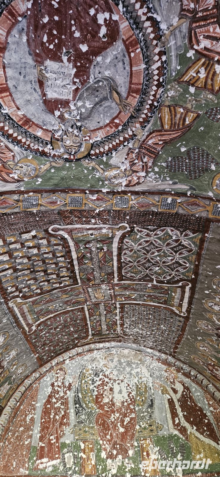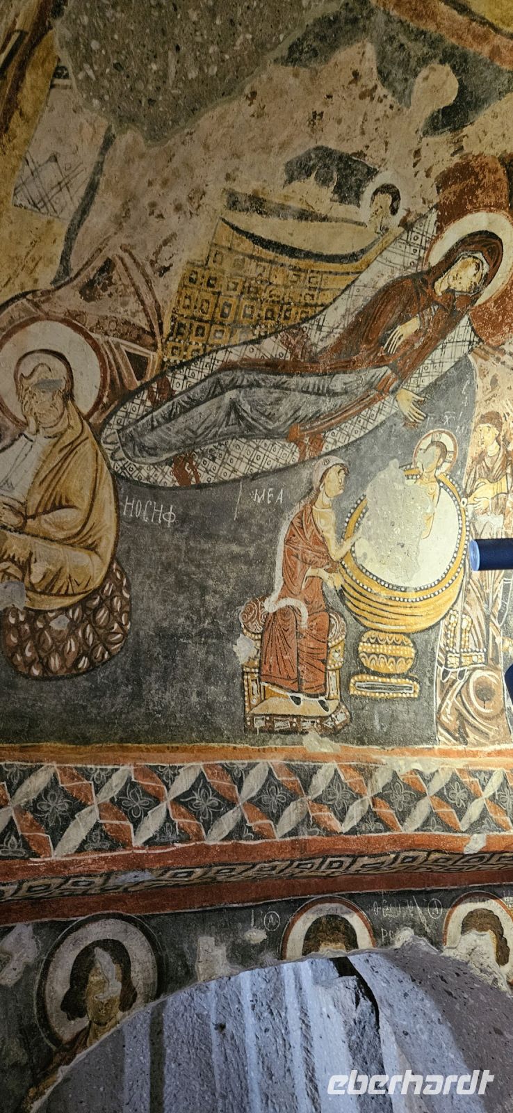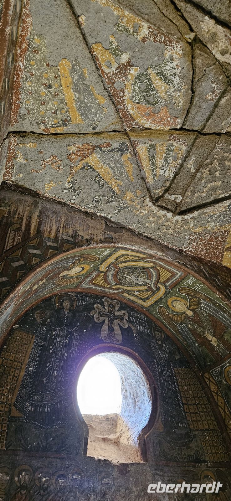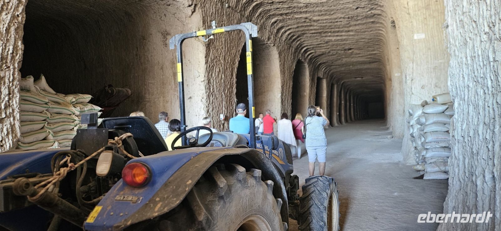 Unsere Wanderschuhe hatten heute eine Pause, denn es stand ein "Kulturtag" auf dem Programm. Wir fuhren nach Mustafapascha, in einen Ort, der beispielhaft für die große Umsiedlung von Griechen zurück nach Griechland und Türken von Griechenland zurück in die Türkei steht. Die Häuser im Ortsbild erinnern sehr an Griechenland und wir hatten die Gelegenheit, ein Boutique Hotel zu besuchen, welches auch 3 Höhlenzimmer anbietet. Ein Stück weiter erreichten wir das Keslik Kloster, welches eine Kirche mit berühmten, leider noch nicht restaurierten, Fresken hat. Özkan leuchtete uns die markanten Schriften aus und erklärte alles. Zum Kloster komplex gehörten weitere Gebäude und eine Kirche, die wir besichtigen konnten. Unser nächster Stopp war an einem Kartoffel Depot. In den Tuffstein war ein langer Gang gebort worden, von dem seitwärts große Lagerräume abgingen. Dort herrscht immer eine gleiche kühle Temperatur und das ist ideal zum Lagern von Kartoffeln, Bohnen und vielen anderen landwirtschaftlichen Produkten. Unsere Mittagspause machten wir im Soganli Tal in einem fantastischen Apfelgarten. Die Tische standen unter großen Bäumen im Schatten und das Mittagessen war köstlich. Danach erkundeten wir im Soganli Tal die wunderschön mit Fresken ausgestaltete Barbara Kirche. Özkan hatte den Schlüssel für die Kirche beschafft und erklärte uns die einzelen Szenen aus der biblischen Geschichte. Danach besuchten wir die Schwarzkopfkirche, die wahrscheinlich zu einem privaten Palast gehörte. Wir fuhren zurück nach Ürgüp und in der Weinkellerei Tursan probierten wir einen Weißwein, einen Rosewein und einen prämierten Rotwein. Die letzte Station war die Teppichmanufaktur Cinar. Dort empfing uns der Chef und erklärte im perfekten Deutsch die Philosophie seiner Firma und wir konnten 2 Knüpferinnen bei der Arbeit zusehen. Das Knüpfen eines Seidenteppichs hatte uns alle sehr beeindruckt und es entstehen in dieser Manufaktur richtige Kunstwerke. 3 Teppiche haben sogar einen Oscar bekommen. Dieser interessante Besuch endete dann leider in einem Verkaufraum, obwohl die meisten Singles nicht vor hatten, einen Teppich zu kaufen..