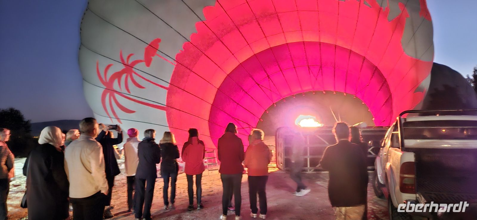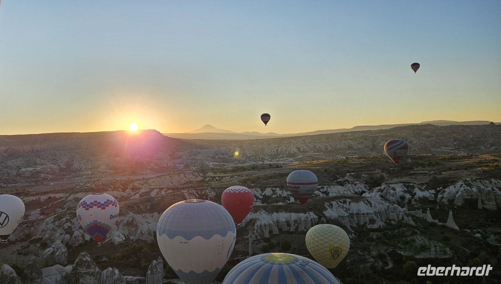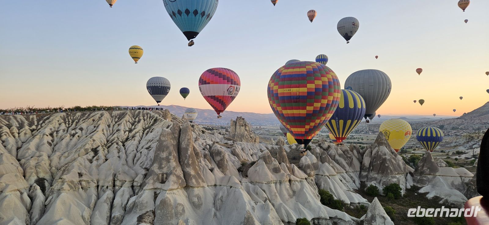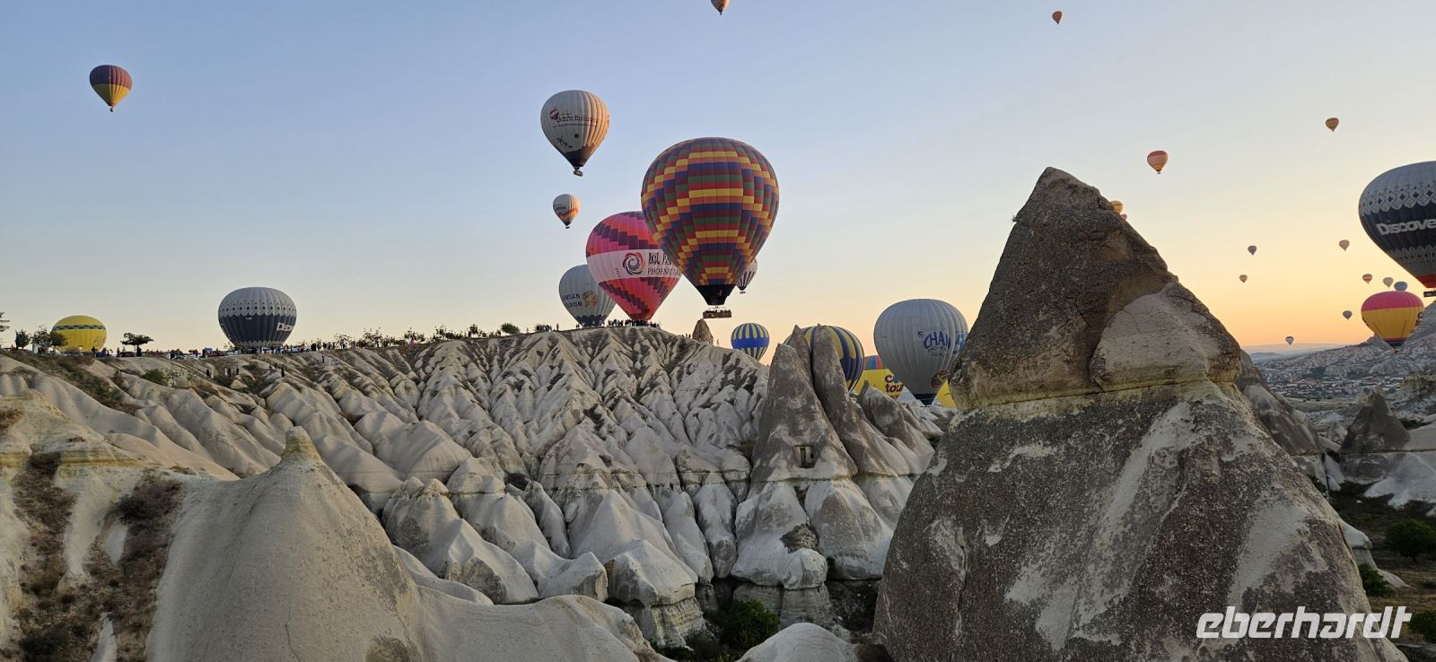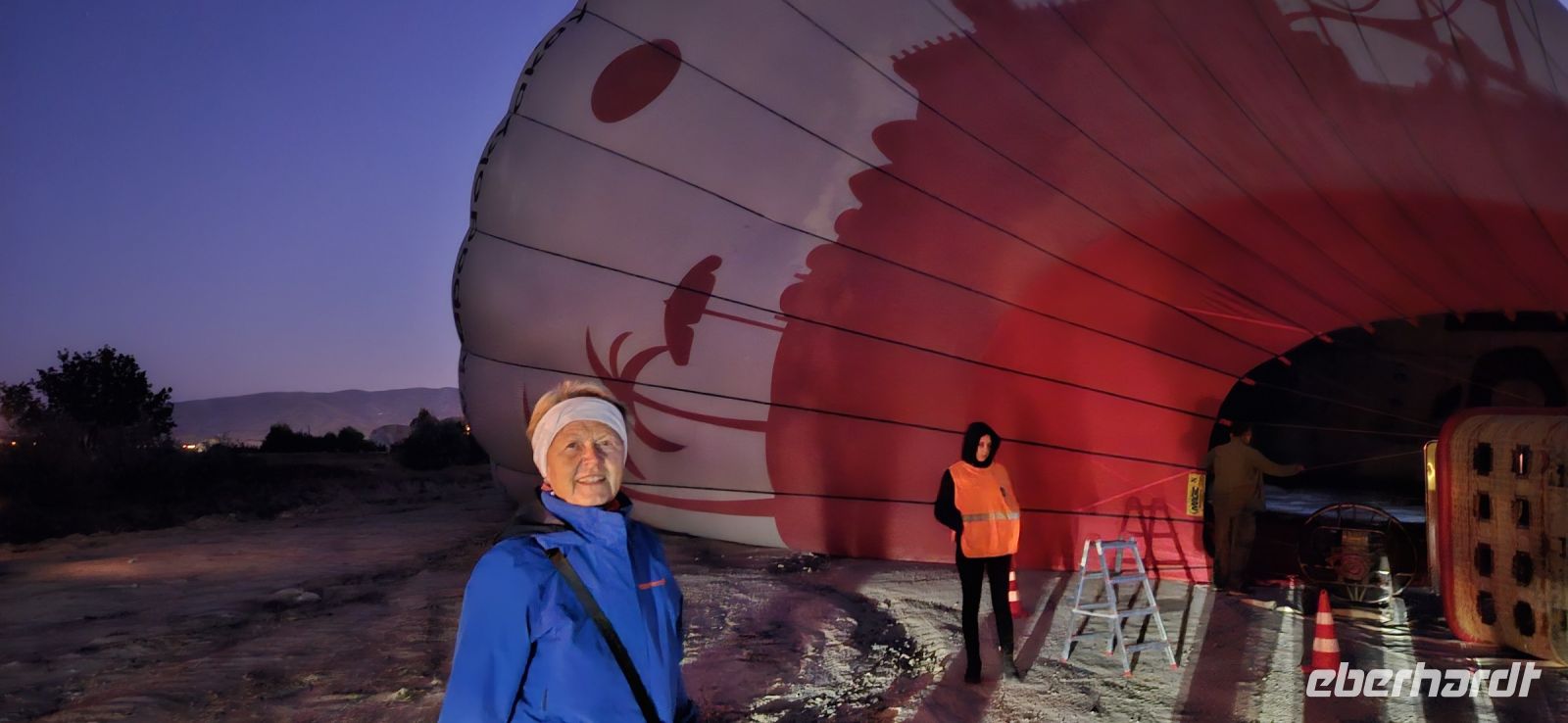 Heute stand für viele Singles DER Höhepunkt der Reise an. Kurz nach 5 Uhr wurden wir von einem Mitarbeiter der Ballon Firma Kaya im Hotel abgeholt und zu "unserem" Ballon gebracht. Kurz darauf begann das Aufblasen des Ballons. Dann richtete sich der große Korb auf und wir konnten über eine kleine Treppenleiter einsteigen. 3-4 Personen fanden in einem "Abteil" Platz und als alle drin waren, begrüßte uns Mustafa, unser Ballonführer, und sein Assistent. Um uns herum wurden die Ballons ebenfalls startklar gemacht und dann begann die Fahrt. Zunächst bewegten wir uns in Bodennähe bis das Signal zum Aufsteigen kam. Es sollen insgesamt 160 Ballons unterwegs gewesen sein und die wurden zentral dirigiert so wie die Flugzeuge am Flughafen. Es war ein unvergessliches Bild - Ballons überall. So langsam wurde es hell und als die Ballons das Liebestal erreichten, ging die Sonne auf. Wir hatten klares Wetter und konnten den Erciyes Dagi am Horizont ganz deutlich sehen. Dann begannen die Ballons in das Liebestal hinein zu fahren und kamen sich dabei sehr nahe. Nach einer Stunde erreichten wir ein großes Feld und dort stand schon ein großer Anhänger bereit, auf dem unser Korb samt Ballon landete. Für uns eine unglaubliche Leistung, aber Mustafa machte das nicht zum ersten Mal. Das Klettern aus dem Ballon auf dem Anhänger war dann nochmal speziell, aber die Kaya Mitarbeiter waren uns behilflich. Jeder bekam ein Zertifikat zur Ballonfahrt und mit einem Glas Sekt stießen wir auf das unvergessliche Erlebnis an. Dann fuhren wir zurück ins Hotel und nahmen unser Frühstück ein.
