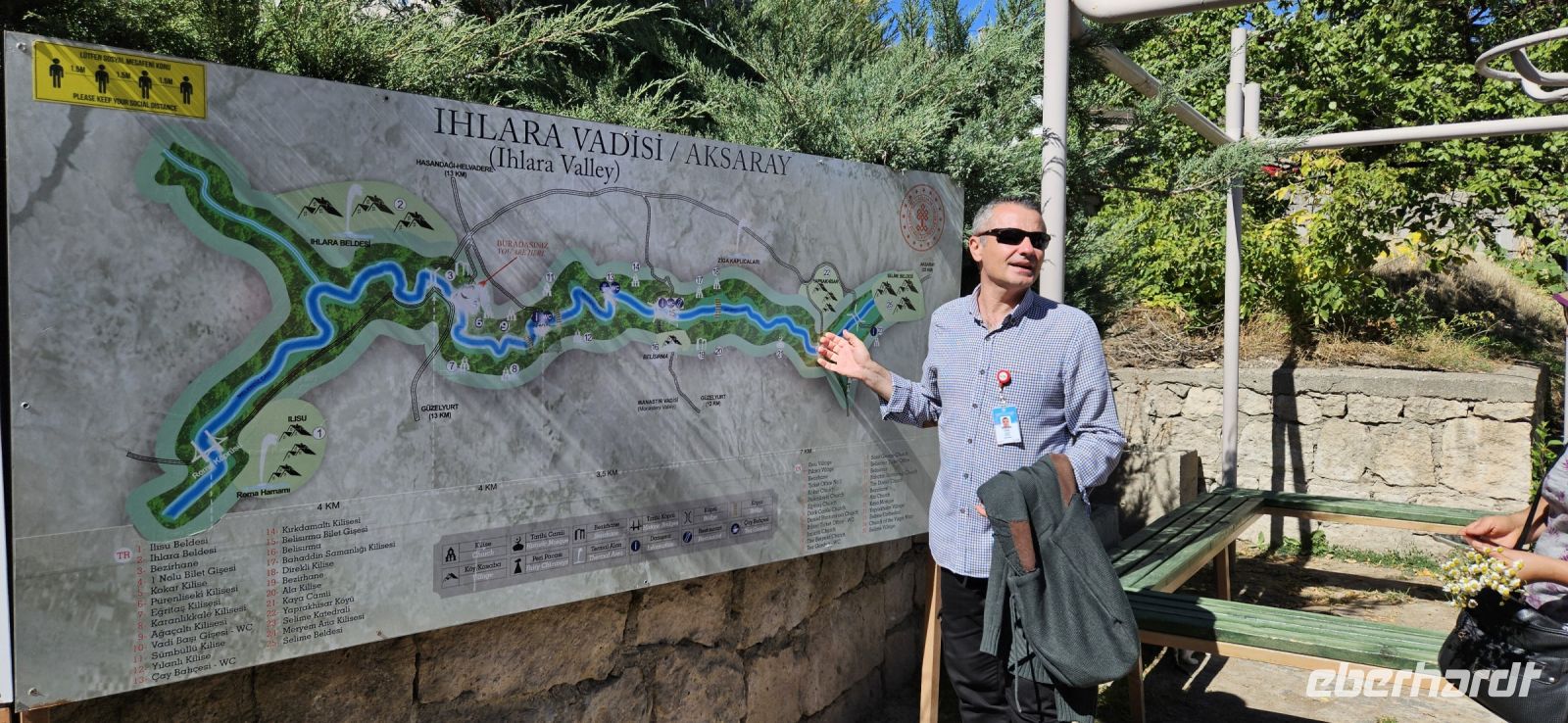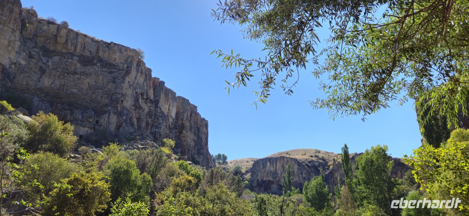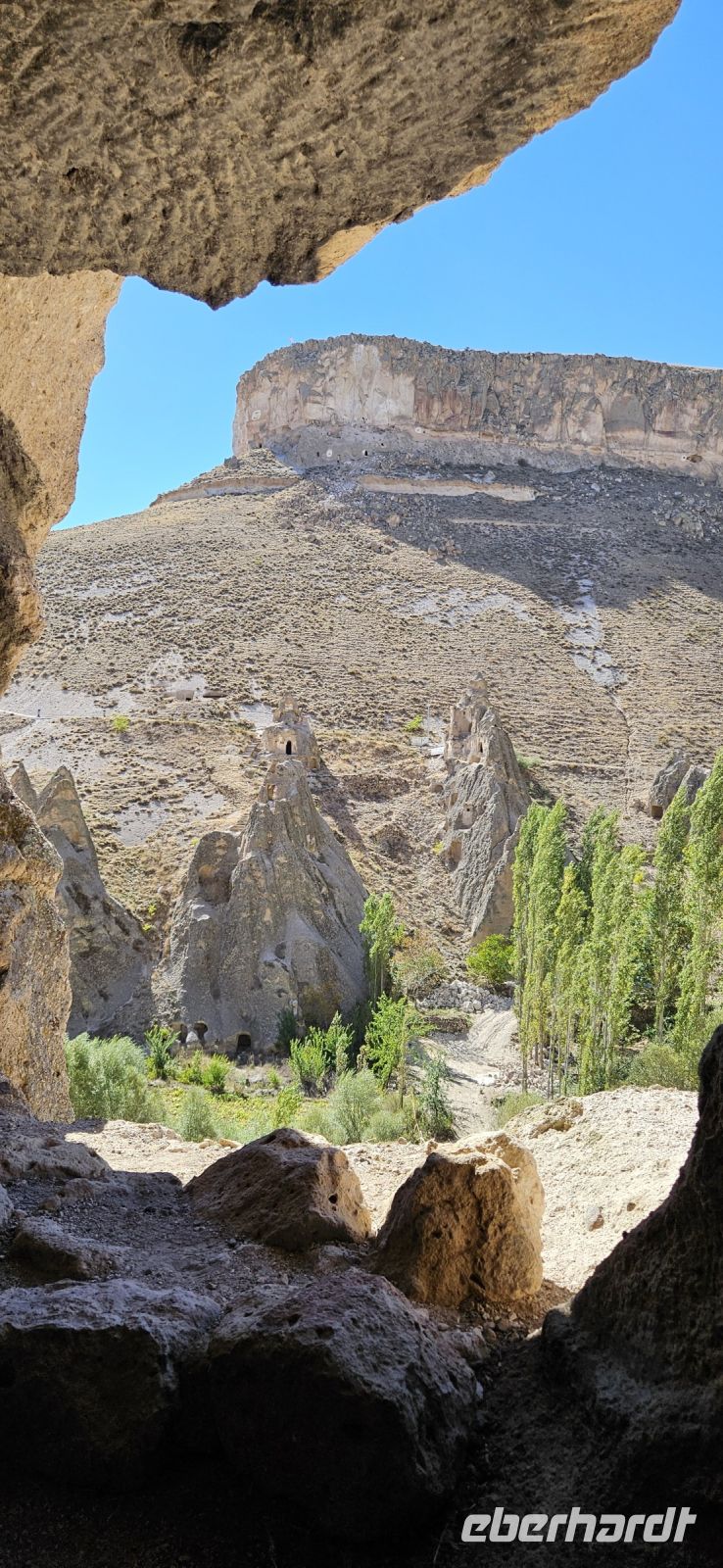 9.30 Uhr begann dann unser Ausflug ins Ihlaratal. Auf der langen Fahrt dorthin berichtete Özkan über das Wohnprojekt der TOKI Häuser, die ausserhalb der Zentren für Menschen mit geringem Einkommen und ohne Eigentum errichtet werden. Viele andere Themen wurden besprochewn und wir konnten Fragen stellen. Gegen 11 Uhr begann unsere Wanderung durch die Ihlara Schlucht, auch Grand Canyon der Türkei genannt. Auf einem breiteren Weg wanderten wir immer am Fluss entlang, besuchten unterwegs die Kokar- und die Schlangenkirche und machten unsere Mittagspause in Belisirma. Dort war es sehr touristisch, weil dieser Ort über eine Strasse sogar für Busse erreichbar ist. Nach dem Mittagessen bewanderten wir den zweiten Teil der Ihlara Schlucht und da waren deutlich weniger Personen unterwegs. Der Weg führte teil unten am Wasser und teils oben an den Felsen mit tollen Ausblicken entlang. Am Ende der Schlucht stand wieder unser Bus bereit. Wir fuhren nach Saratli und besuchten dort eine kleine unterirdische Stadt,