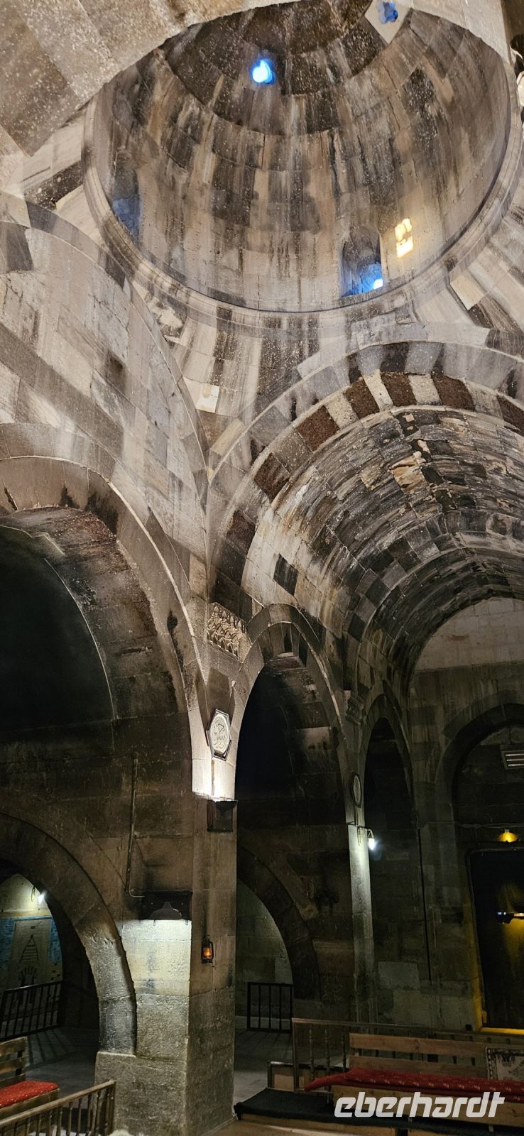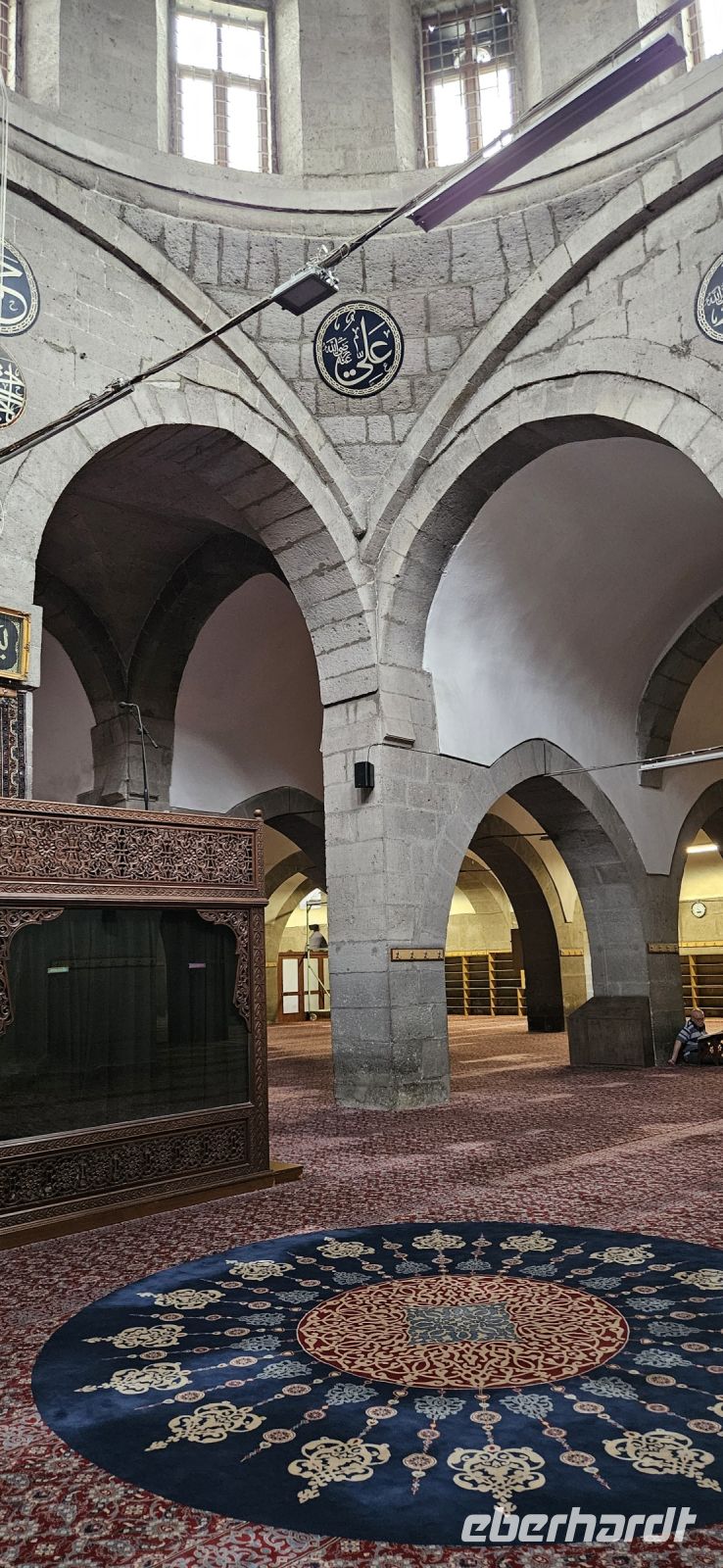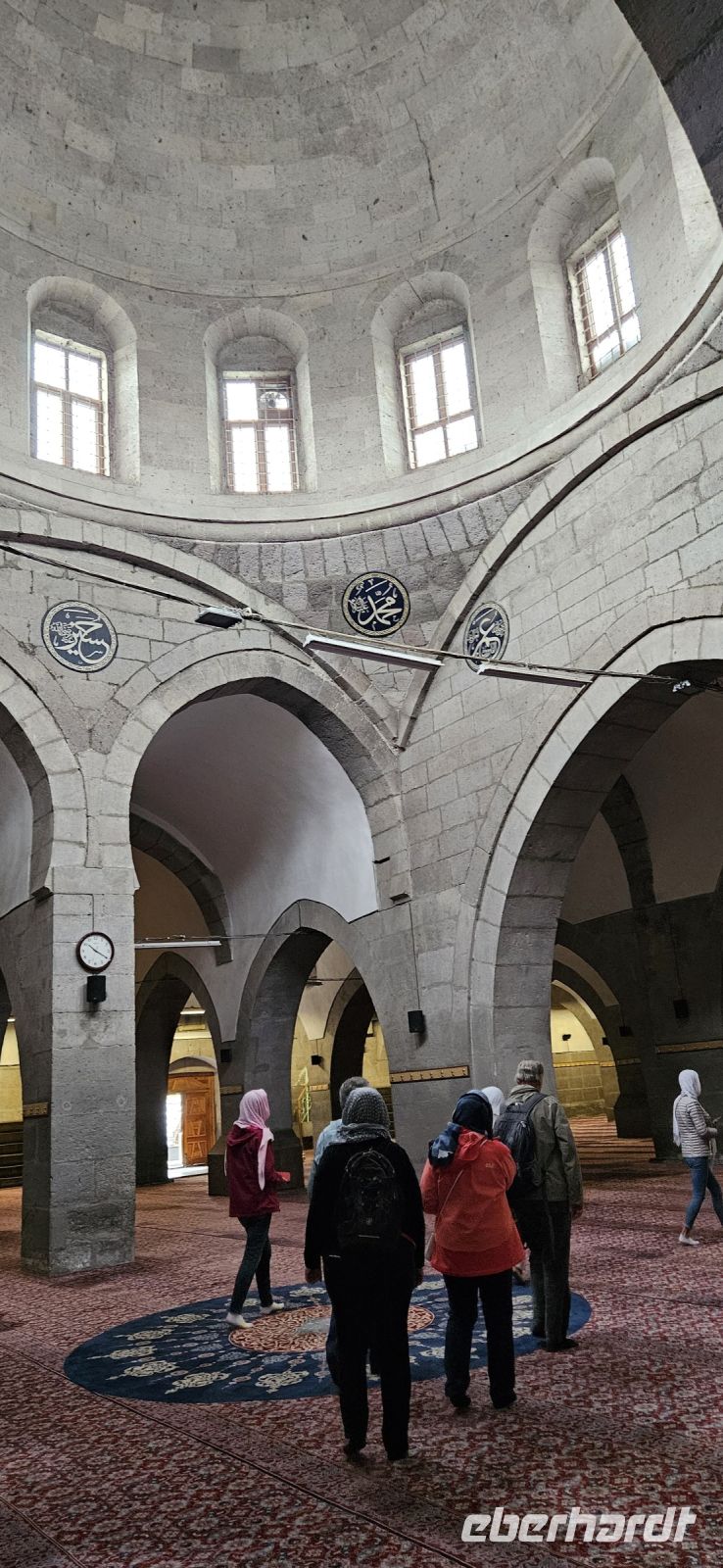 Wir genossen noch einmal das wunderbare Frühstück im Hotel, brachten unsere Koffer zum Bus und fuhren nach Kayseri. Dort besuchten wir im Stadtzentrum die Medrese und die aus dem 143. Jahrhundert stammende Moschee. Der beeindruckende Bau hatte 7 Säulenreihen und erinnerte mich an Cordoba. Danach spazierten wir durch die neu restaurierte Festung zum Basar und besuchten den offenen und geschlossenen Teil. In diesem großen Basar könnte man einen ganzen Tag verbringen, aber wir fuhren zum Flughafen. Dort verabschiedeten wir uns von Özkan und Okdan, gaben unsere Koffer ab und flogen zurück nach Istanbul. Dort musste wieder vom Inlandsteil in den Auslandsteil gewechselt werden und danach hatten die meisten sehr viel Zeit bis zum Weiterflug. Wir suchten uns ein Plätzchen und verzehrten die Reste vom Picknick des Vortages. Und dann hiess es Abschied nehmen, denn wir flogen wieder getrennt nach Berlin, Düsseldorf und München.