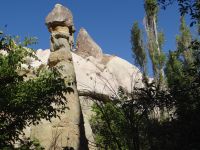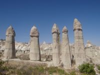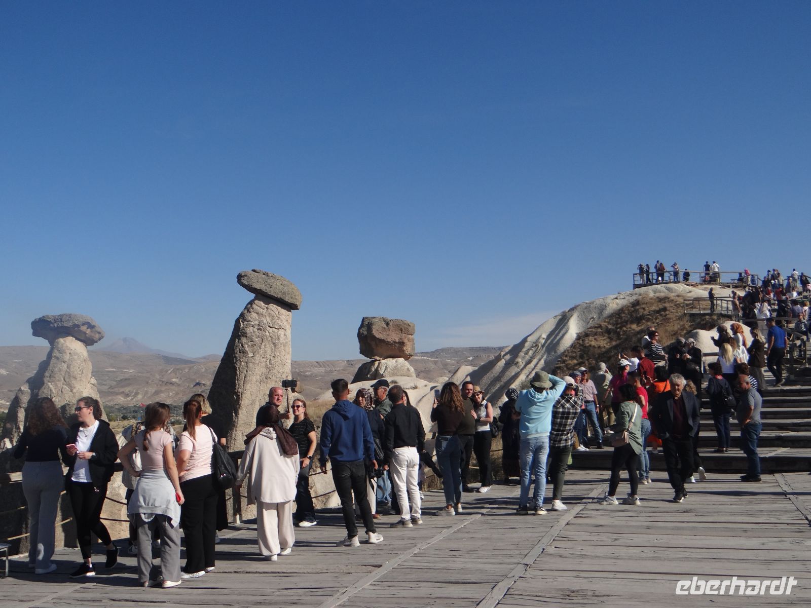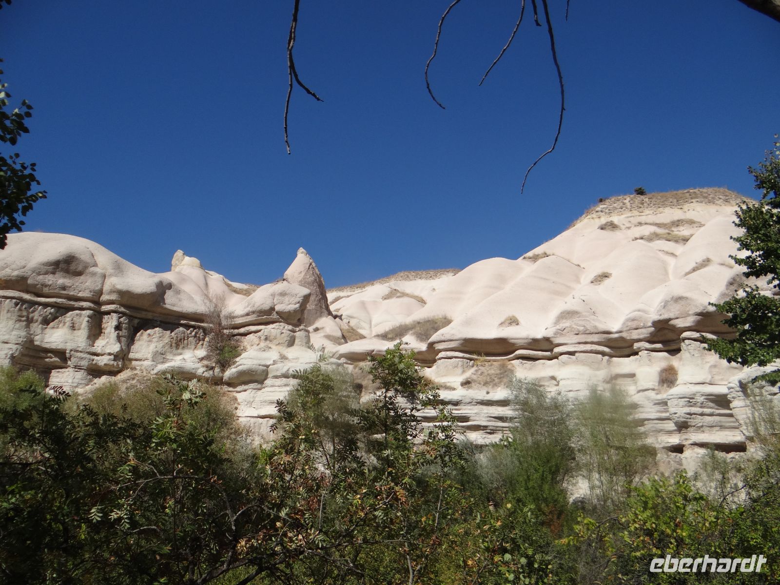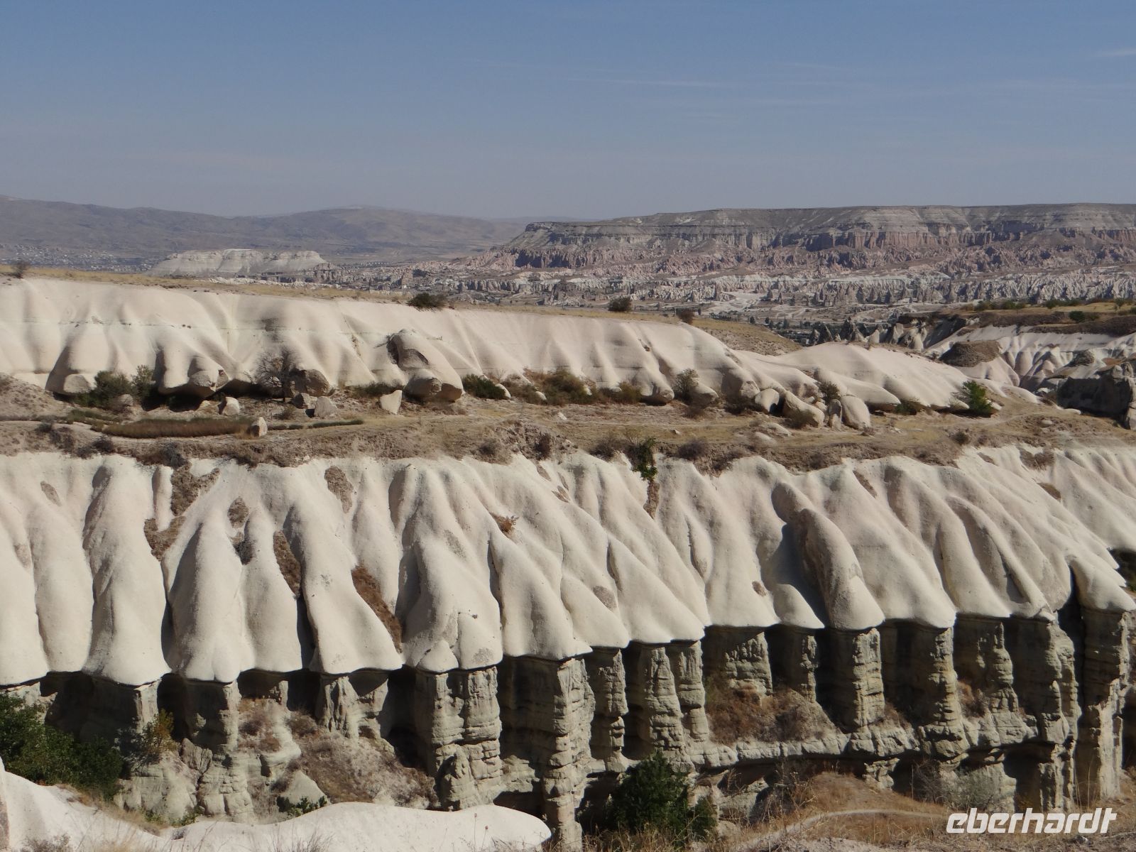 Diese Felsformationen! Und wie wenn das nicht genug wäre, die in den Stein geschlagenen Taubenverschläge. Die Felsen als Vogelverschläge! Durchzogen wird die Landschaft von abgeschliffenem Vulkangestein, die aussehen wie große Zipfelmützen und Feenkamine ge-nannt werden.