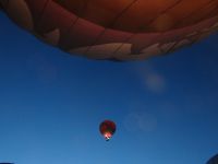 Um uns herum steigen in der nächsten Stunde um die 150 Ballons in die Höhe. Die Sonne reckt ihre Strahlen über den Bergzug.