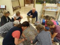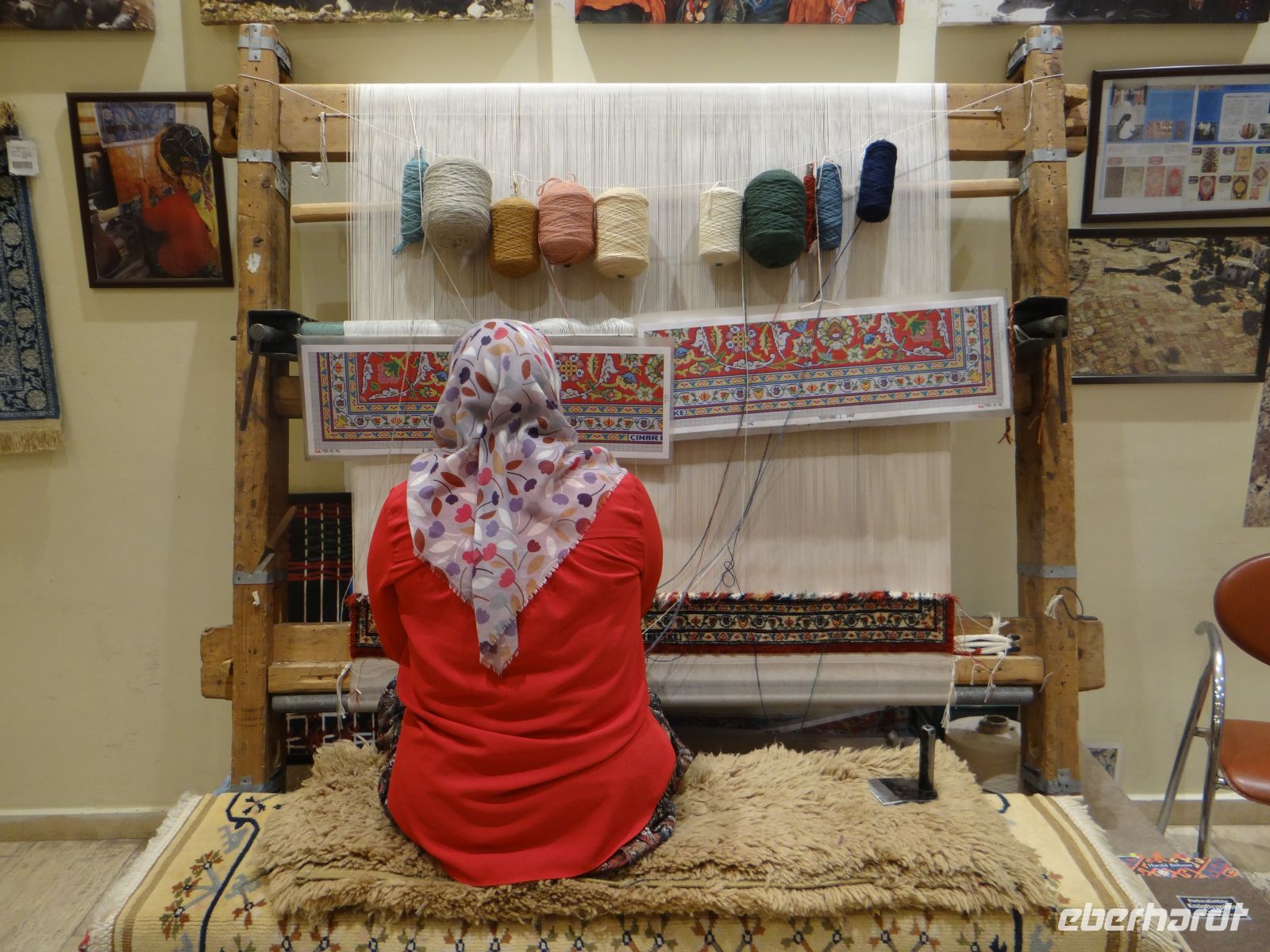 Natürlich werden wir in den Verkaufsraum geführt, natürlich wird und Tee angeboten, natürlich wird ein Teppich nach dem anderen mit Aplomb ausgerollt. Doch das geschieht mit so viel Freundlichkeit und dem Wunsch, den Gästen möglichst viel zu vermitteln über die Kunstfertigkeit des Teppichknüpfens, dass es uns allen große Freude macht.